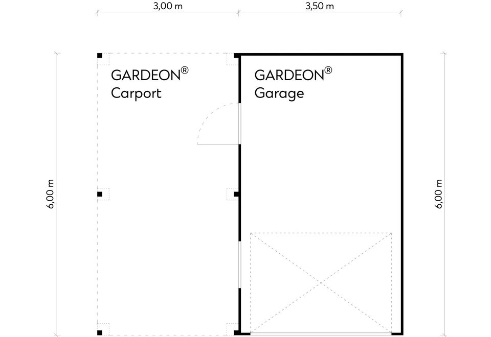 GARDEON® Garáž 3,5 x 6 m s vraty Hörmann, oknem a levým přístřeškem | Gardeon