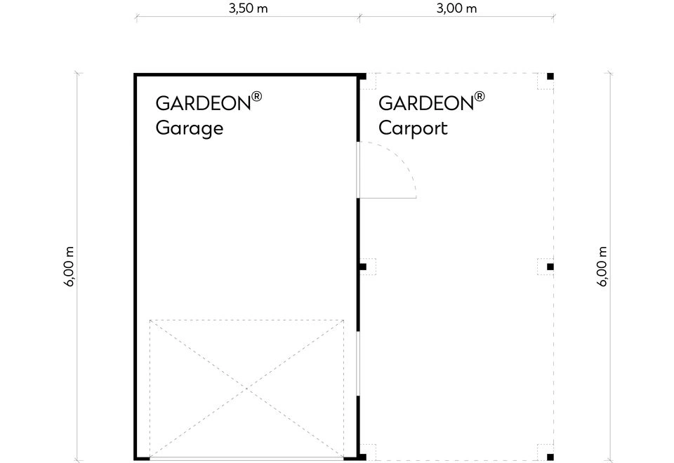 GARDEON® Garáž 3,5 x 6 m s vraty Hörmann, oknem a pravým přístřeškem | Gardeon