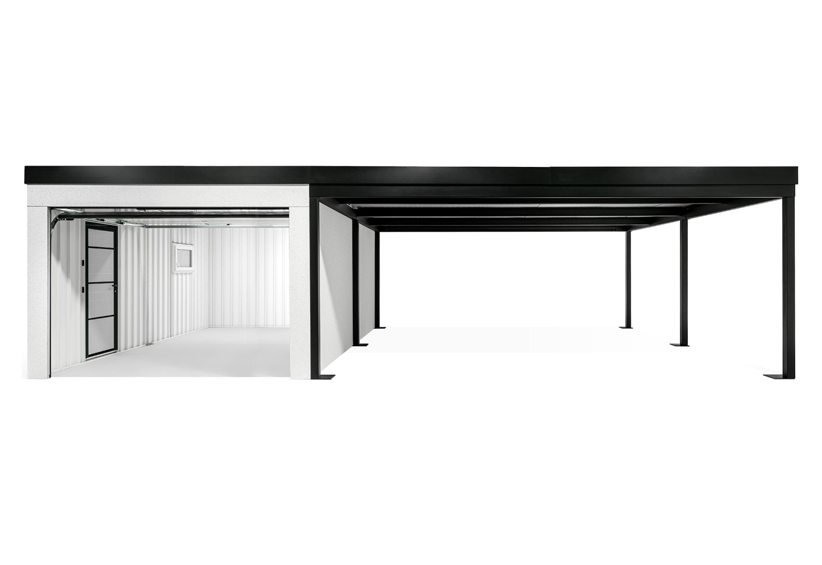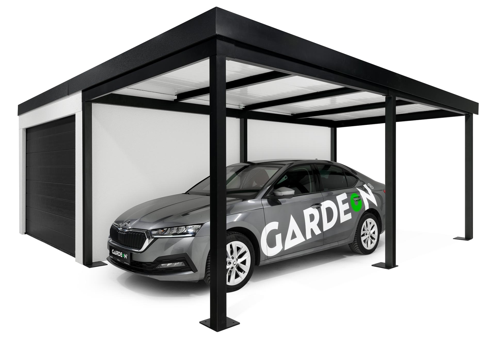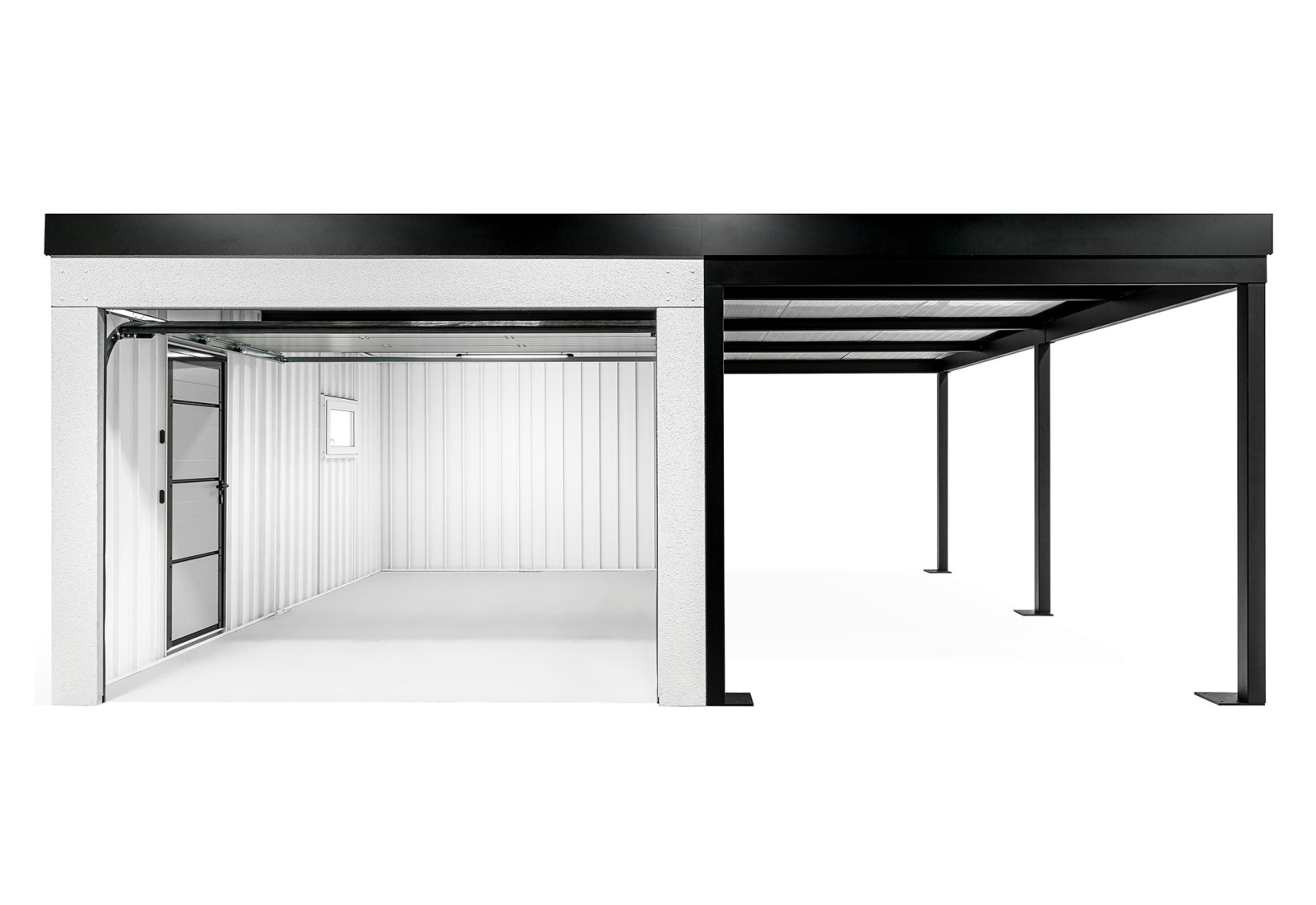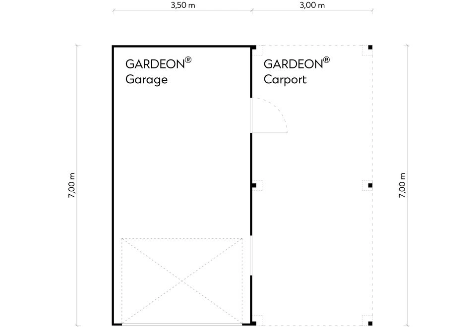 GARDEON® Garáž 3,5 x 7 m s vraty Hörmann, oknem a pravým přístřeškem | Gardeon