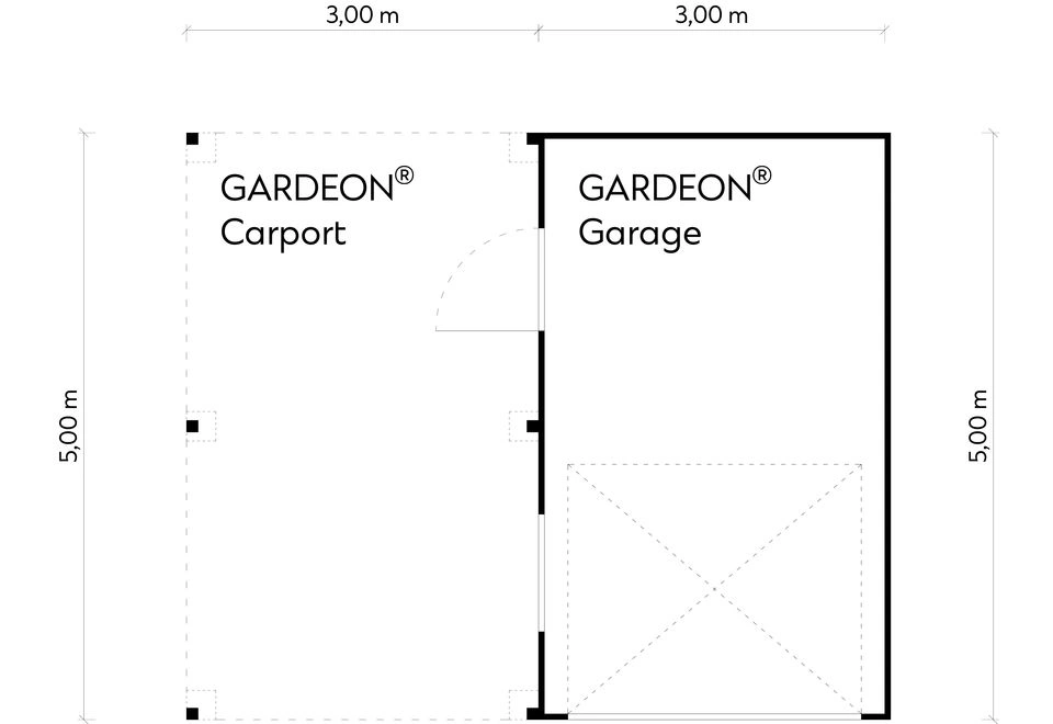 GARDEON® Garáž 3 x 5 m s vraty Hörmann, oknem a levým přístřeškem | Gardeon