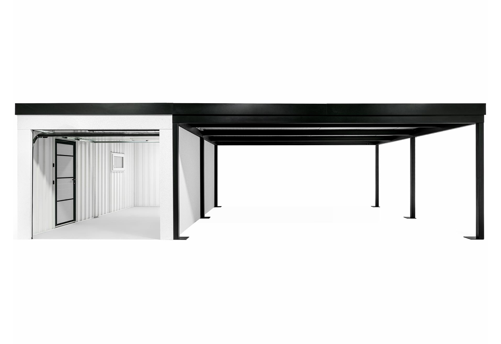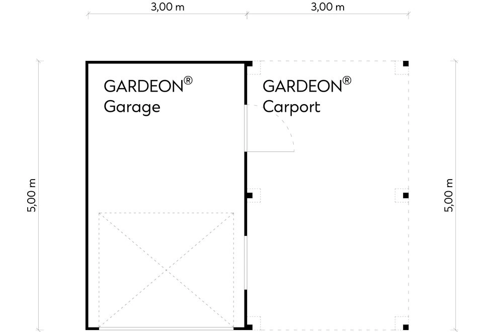 GARDEON® Garáž 3 x 5 m s vraty Hörmann, oknem a pravým přístřeškem | Gardeon