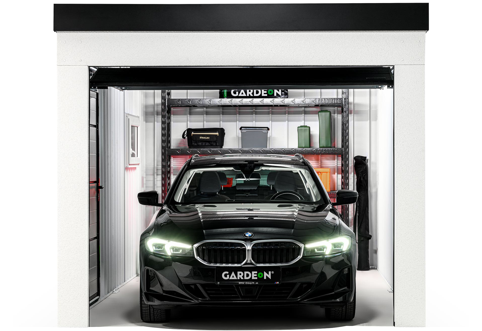Objevte inovaci ve stavebnictví – montované garáže GARDEON® s hotovou designovou omítkou od švýcarské značky KABE. Celoroční fasáda je samočistící a s lehkostí odolá vodě, vysokým teplotám i všem rozmarům počasí. Díky naší unikátní technologii má ocelová stěna tloušťku pouhých 5 cm a oproti 20centimetrové klasické zděné stěně tak významně ušetříte prostor na svém pozemku i uvnitř garáže.