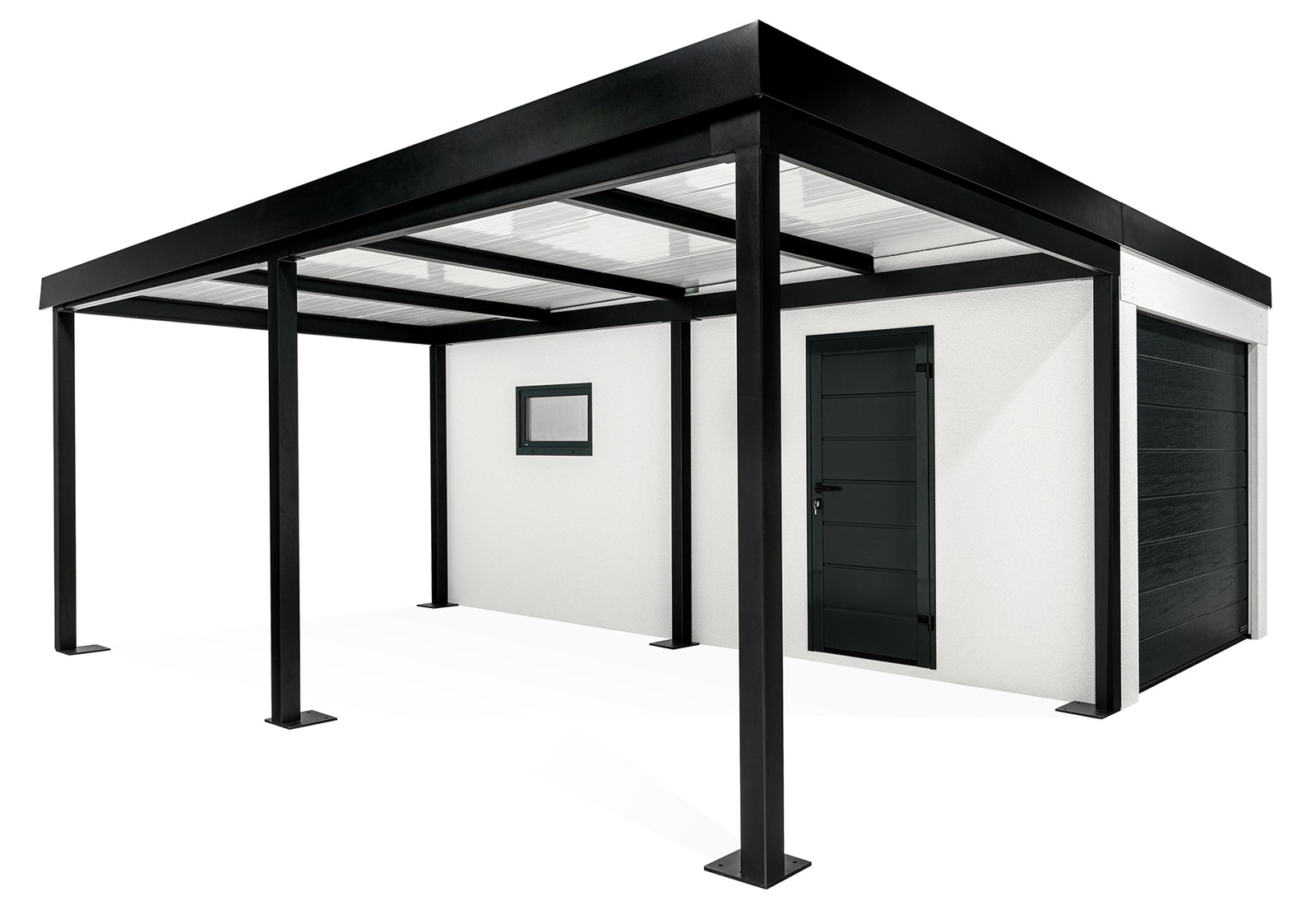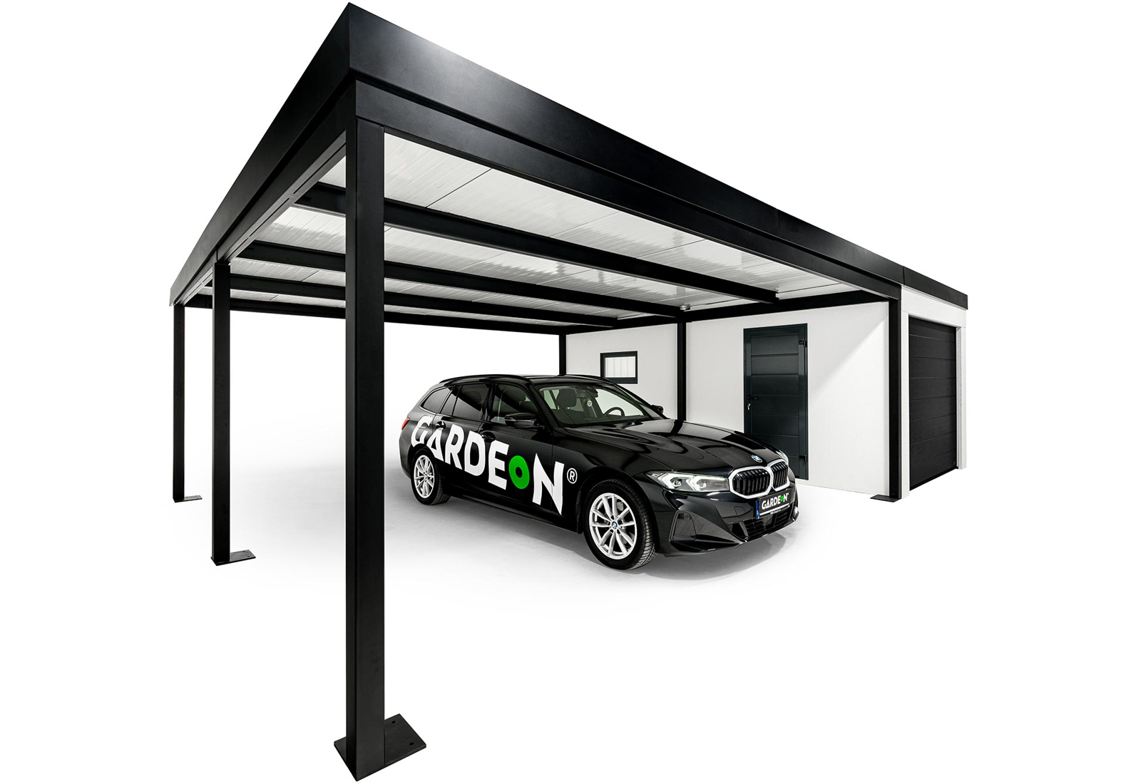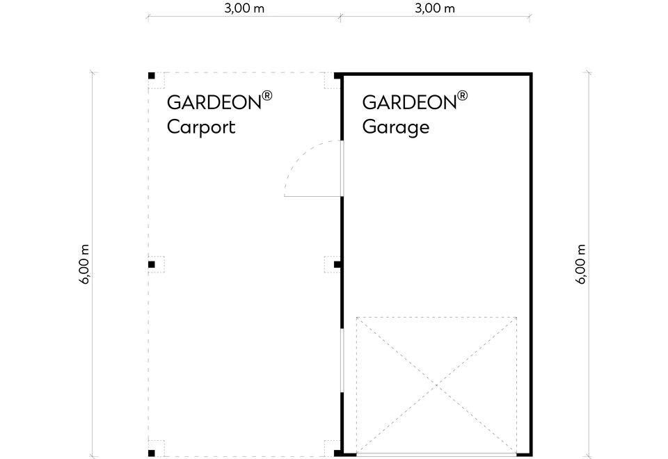 GARDEON® Garáž 3 x 6 m s vraty Hörmann, oknem a levým přístřeškem | Gardeon