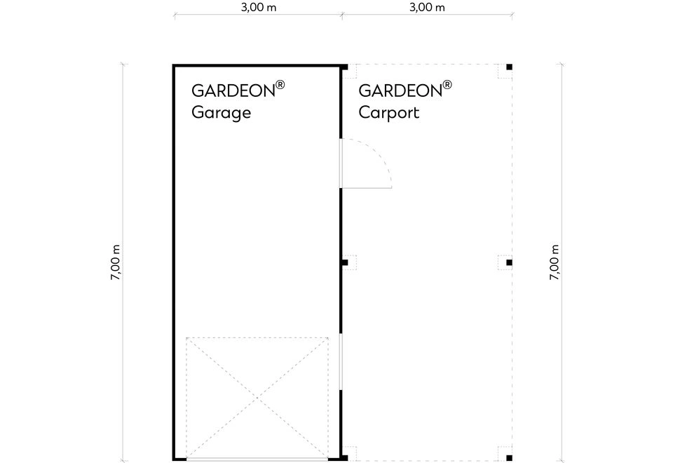 GARDEON® Garáž 3 x 7 m s vraty Hörmann, oknem a pravým přístřeškem | Gardeon