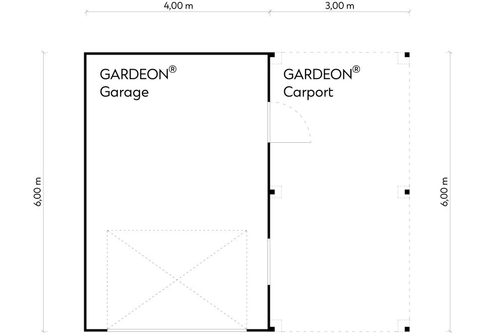GARDEON® Garáž 4 x 6 m s vraty Hörmann, oknem a pravým přístřeškem | Gardeon