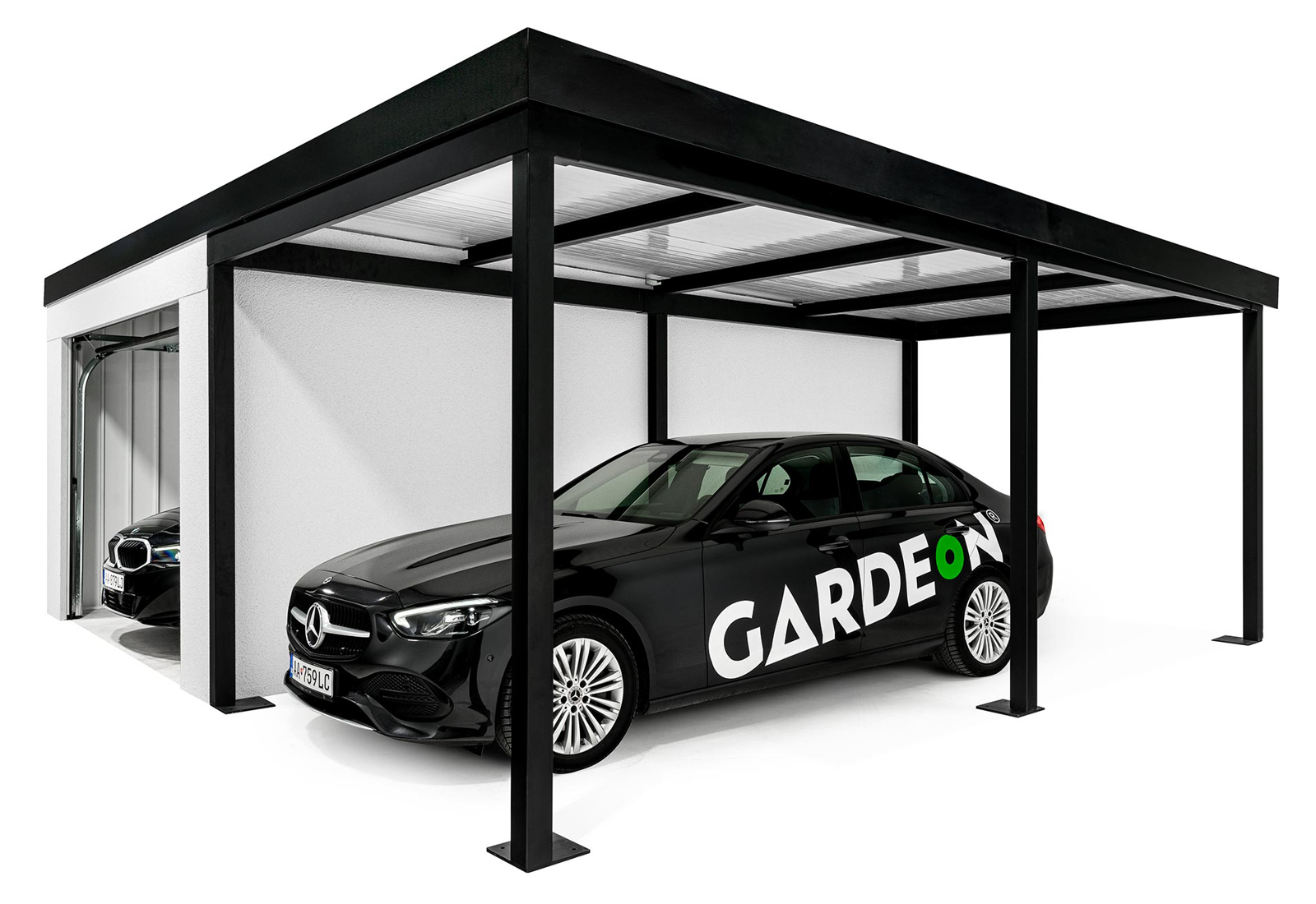 Objevte inovaci ve stavebnictví – montované garáže GARDEON® s hotovou designovou omítkou od švýcarské značky KABE. Celoroční fasáda je samočistící a s lehkostí odolá vodě, vysokým teplotám i všem rozmarům počasí. Díky naší unikátní technologii má ocelová stěna tloušťku pouhých 5 cm a oproti 20centimetrové klasické zděné stěně tak významně ušetříte prostor na svém pozemku i uvnitř garáže.