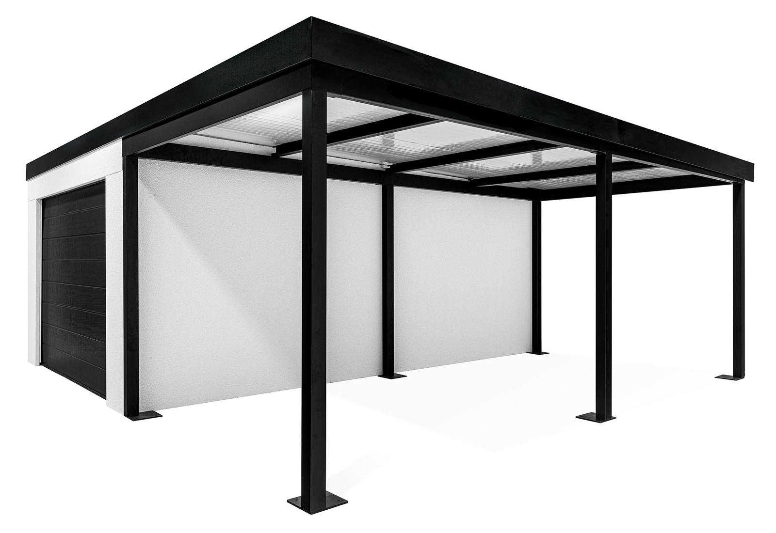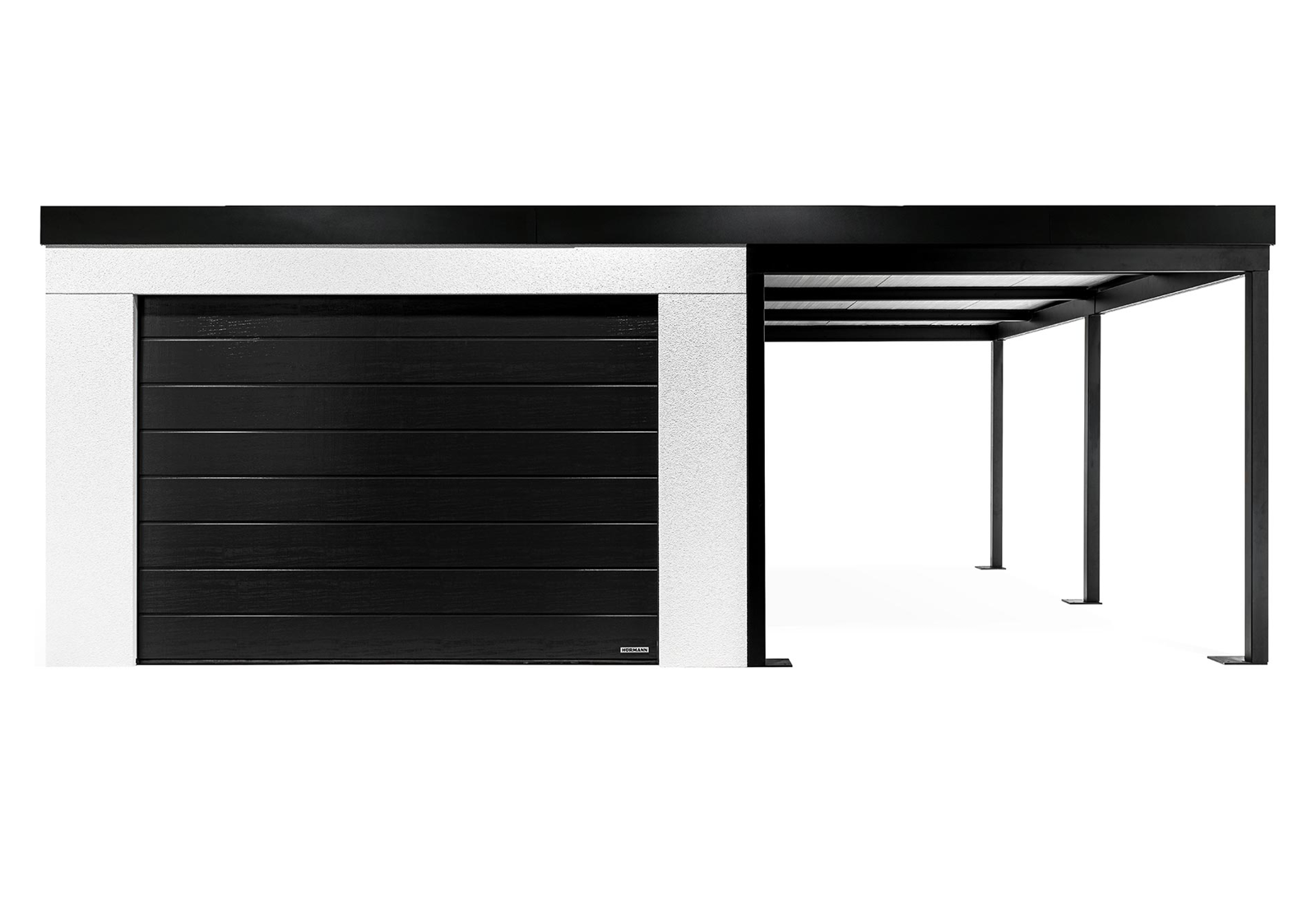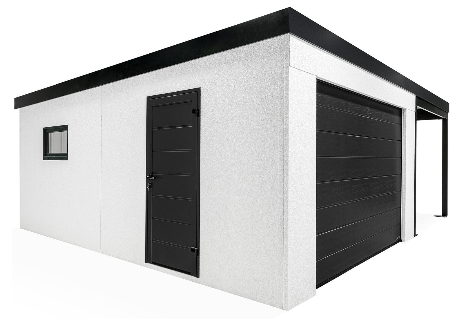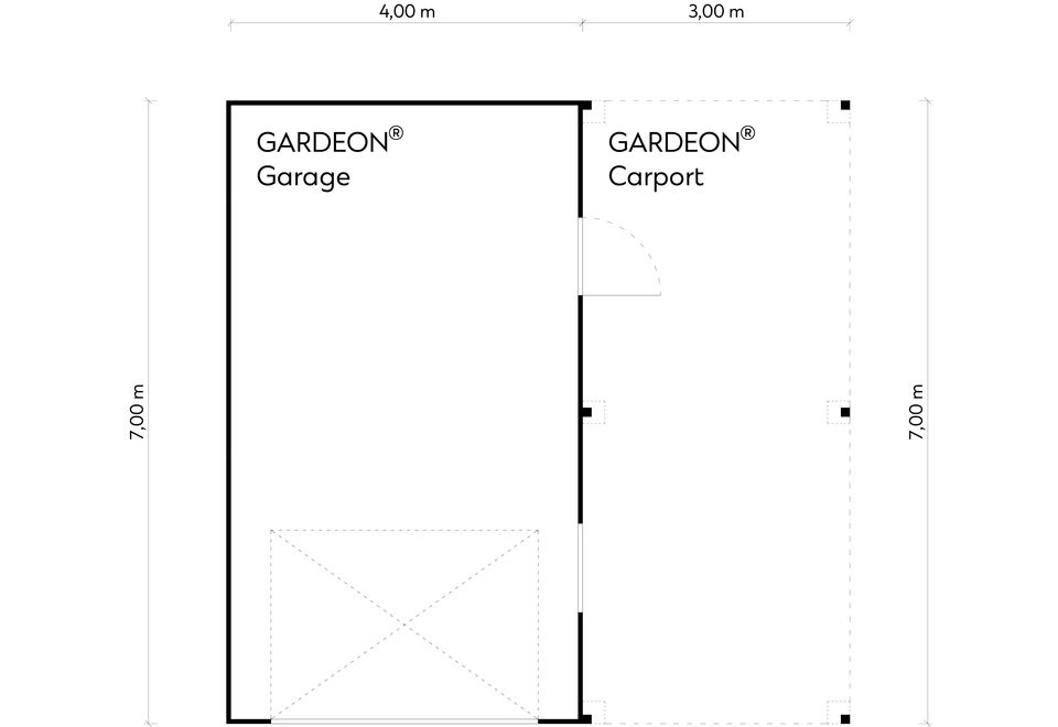 GARDEON® Garáž 4 x 7 m s vraty Hörmann, oknem a pravým přístřeškem | Gardeon