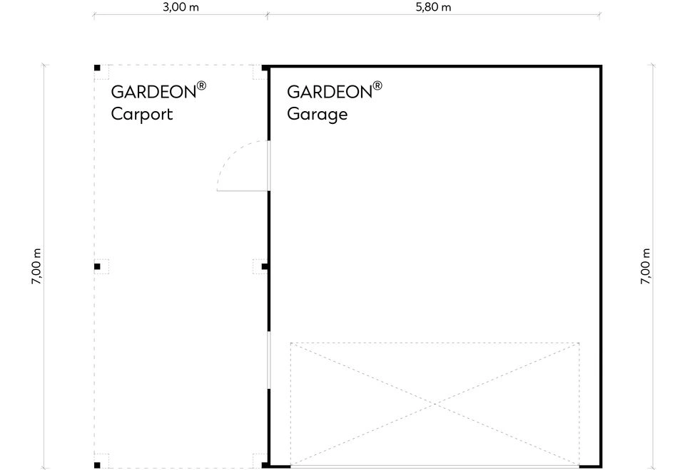GARDEON® Garáž 5,8 x 7 m s vraty Hörmann, oknem a levým přístřeškem | Gardeon