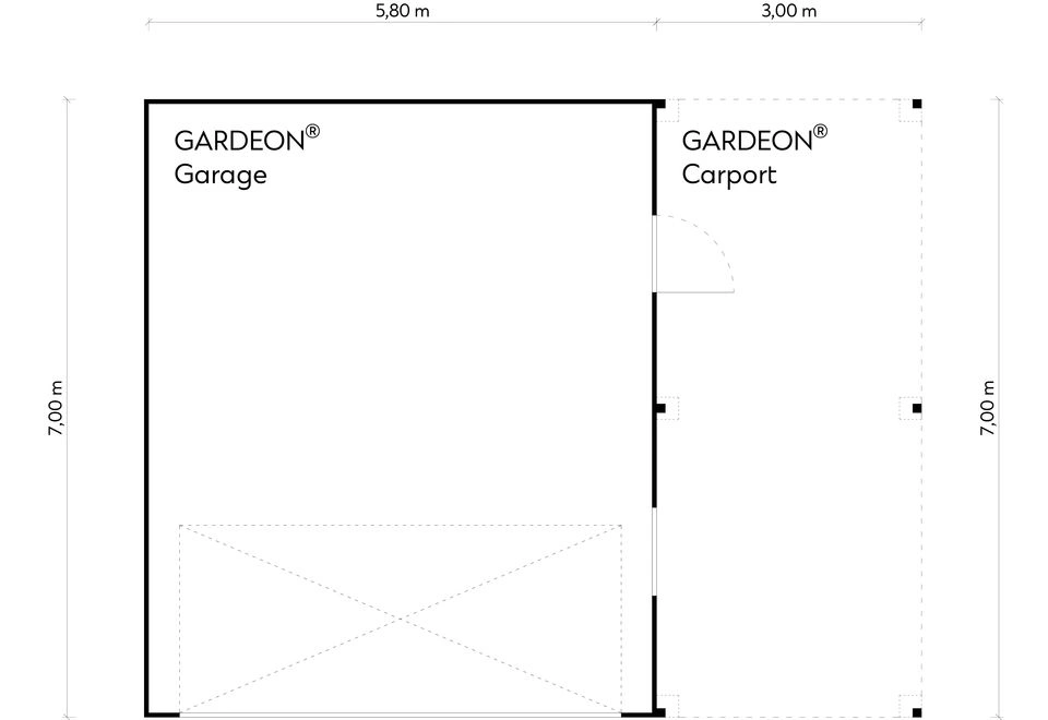 GARDEON® Garáž 5,8 x 7 m s vraty Hörmann, oknem a pravým přístřeškem | Gardeon