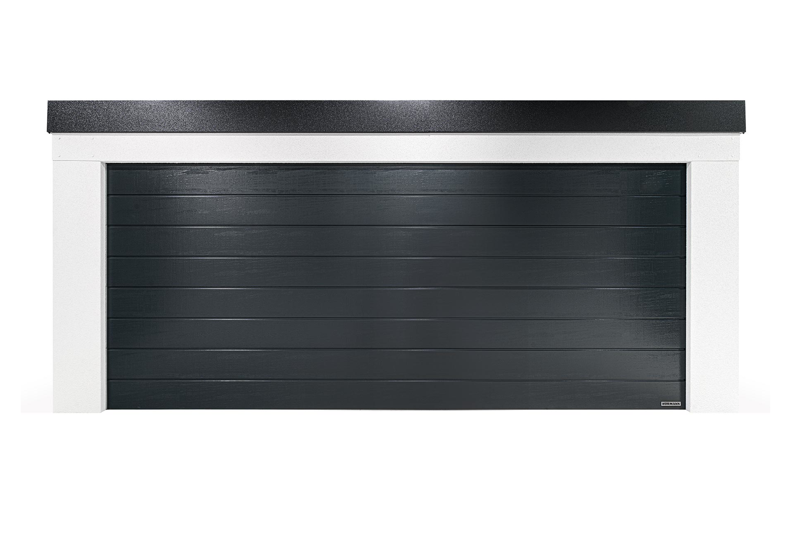 Garáž snů existuje! Prostorná montovaná garáž se špičkovými garážovými vraty Hörmann má zabudované osvětlení a lze ji napájet solárními panely. Bezpečnostní vrata se šikovně zavírají ke stropu, čímž šetří místo. Ultratiché otevírání a zavírání vrat je skvělým bonusem.