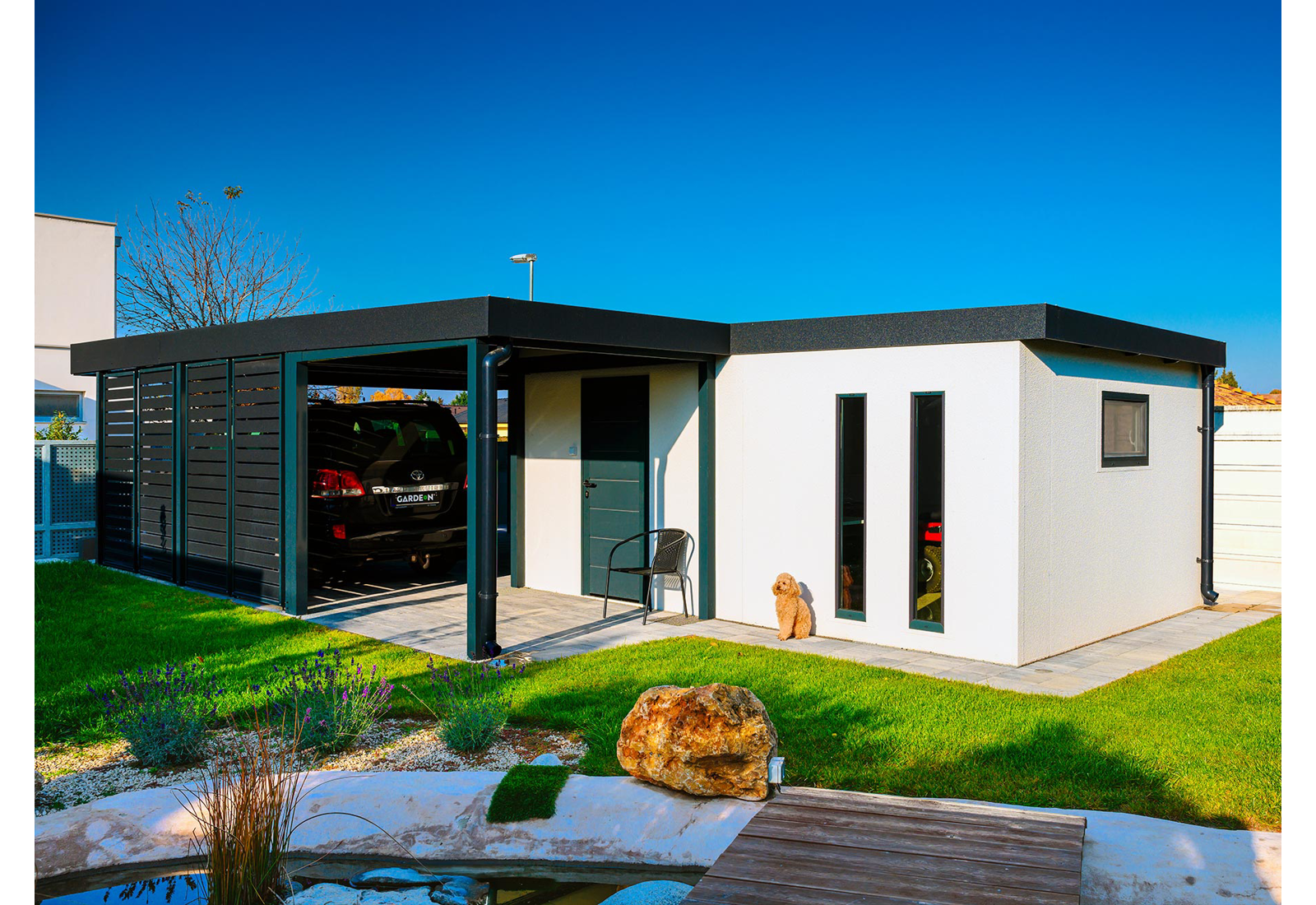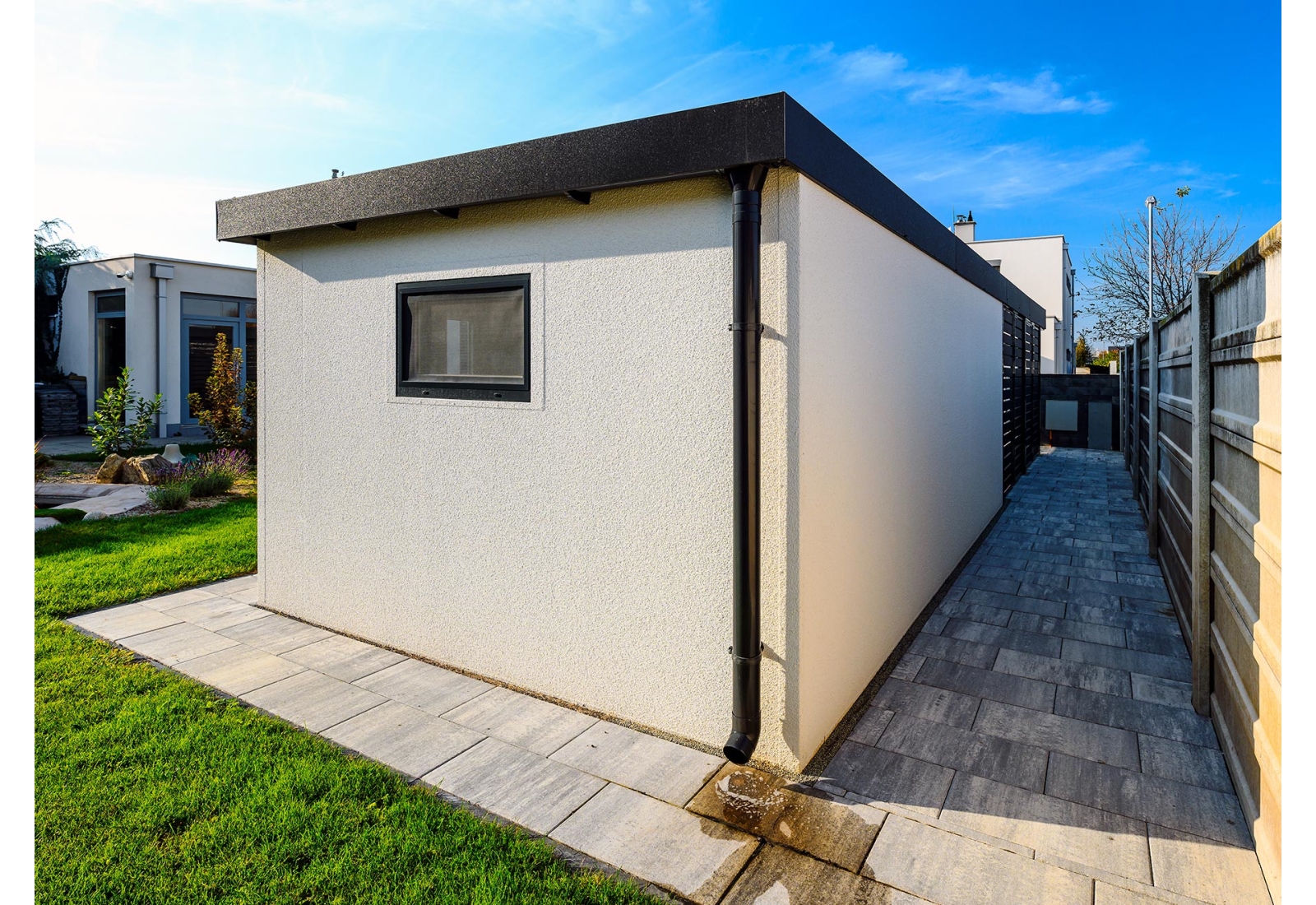 Objevte inovaci ve stavebnictví – montované garáže GARDEON® s hotovou designovou omítkou od švýcarské značky KABE. Celoroční fasáda je samočistící a s lehkostí odolá vodě, vysokým teplotám i všem rozmarům počasí. Díky naší unikátní technologii má ocelová stěna tloušťku pouhých 5 cm a oproti 20centimetrové klasické zděné stěně tak významně ušetříte prostor na svém pozemku i uvnitř garáže.
