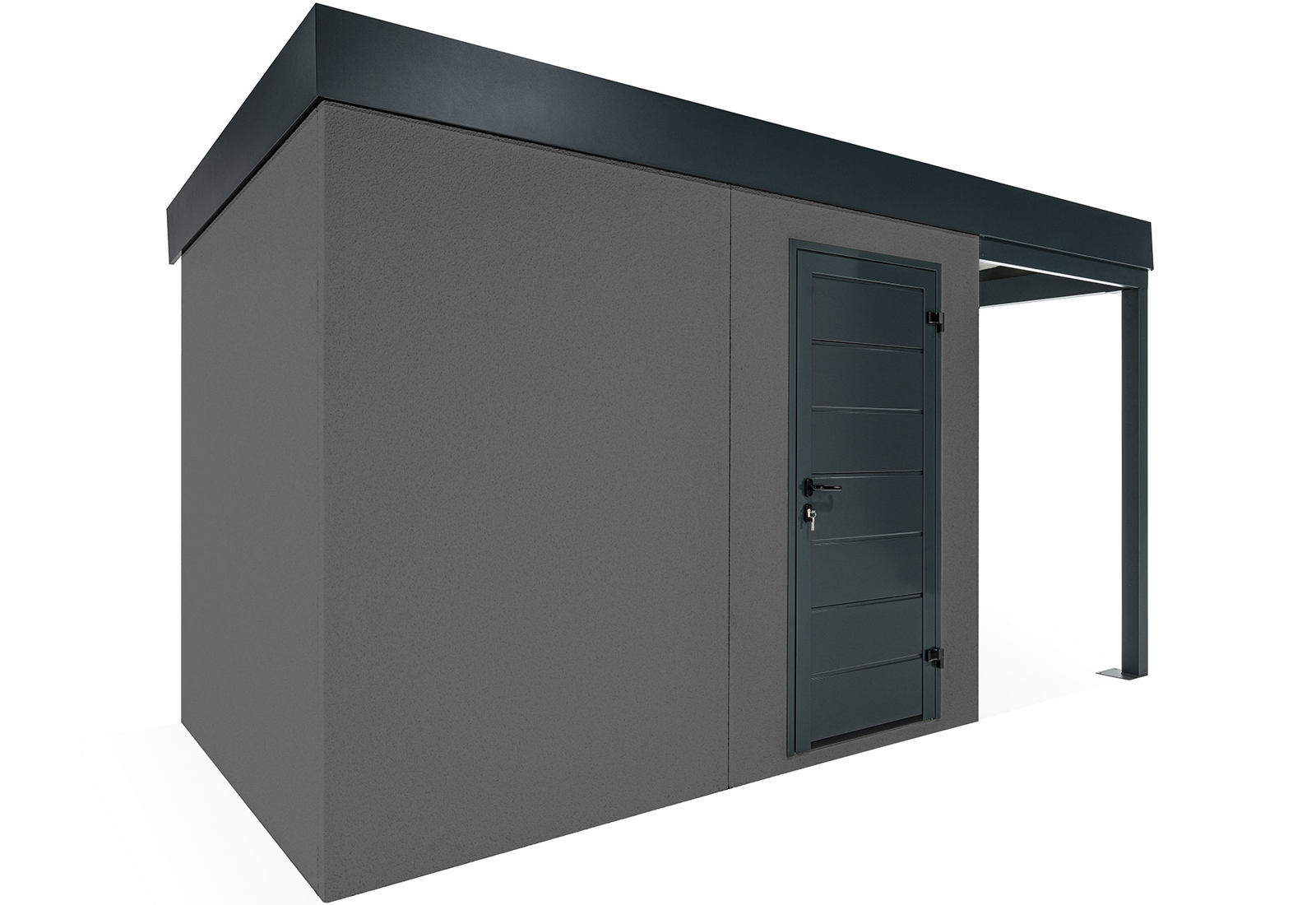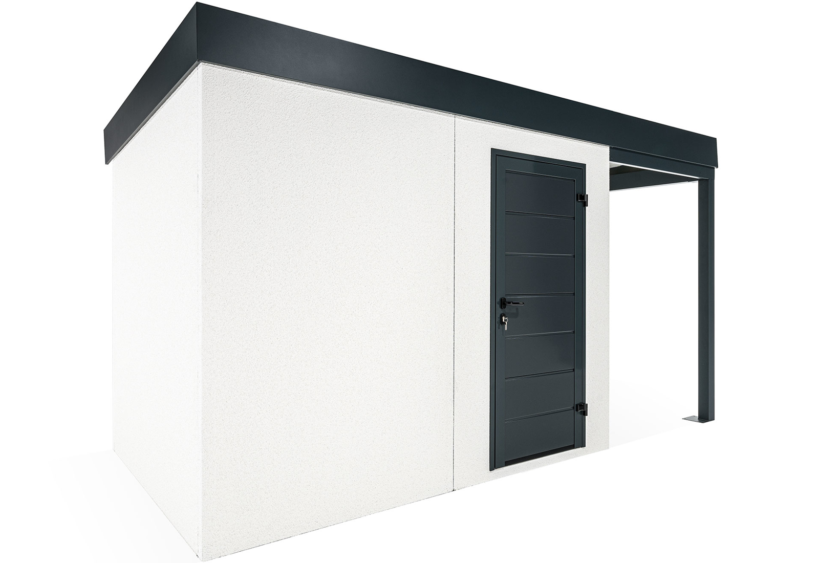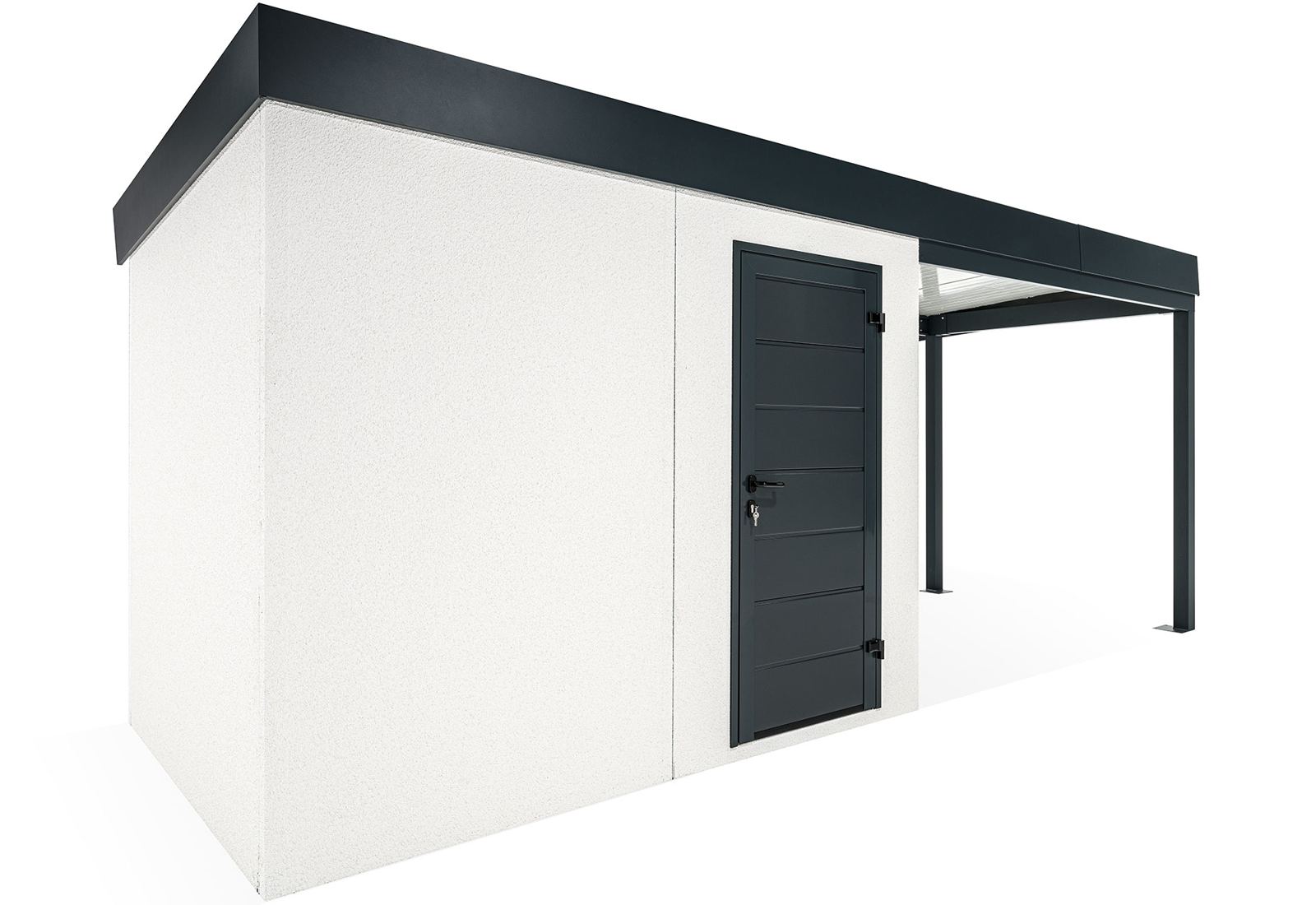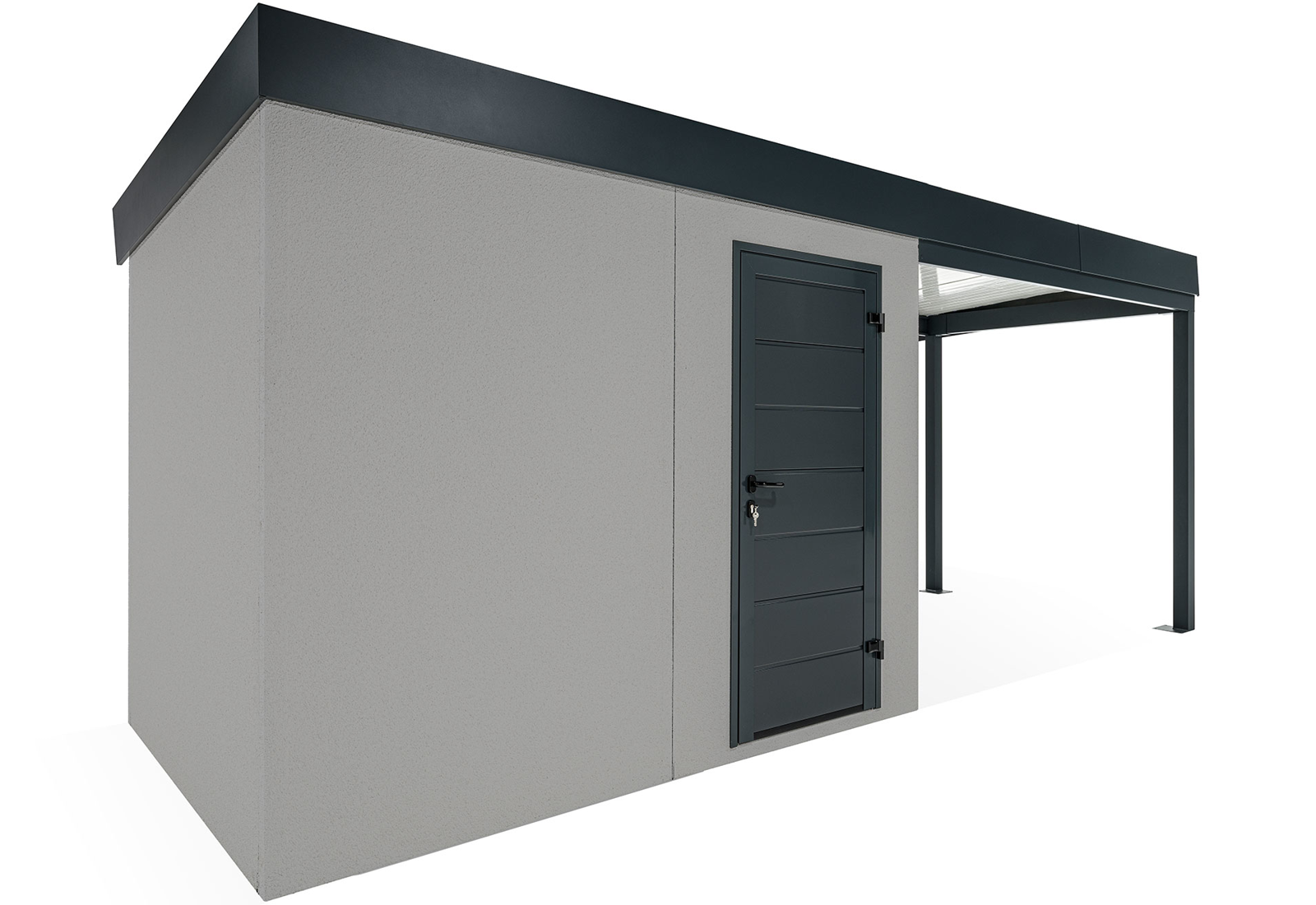Objevte inovaci ve stavebnictví – montované zahradní domky GARDEON® s hotovou designovou omítkou od švýcarské značky KABE. Celoroční fasáda je samočistící a s lehkostí odolá vodě, vysokým teplotám i všem rozmarům počasí. Díky naší unikátní technologii má ocelová stěna tloušťku pouhých 5 cm a oproti 20centimetrové klasické zděné stěně tak významně ušetříte prostor na své zahradě i uvnitř zahradního domku.
