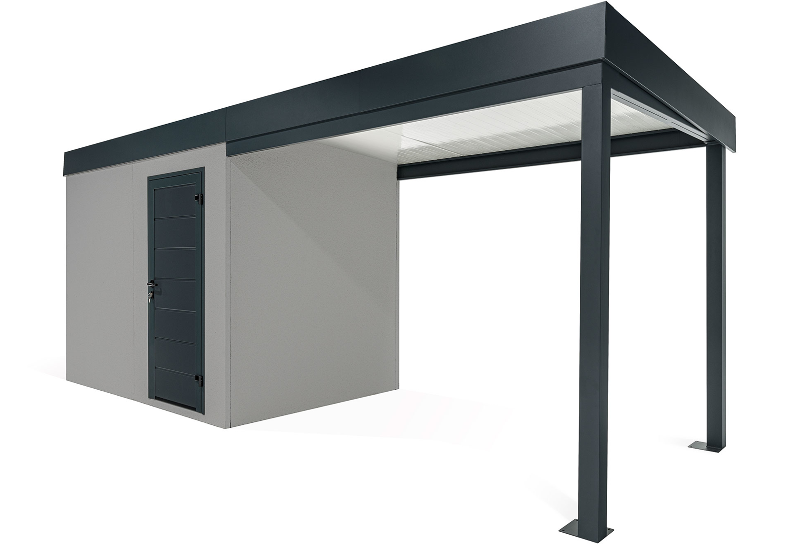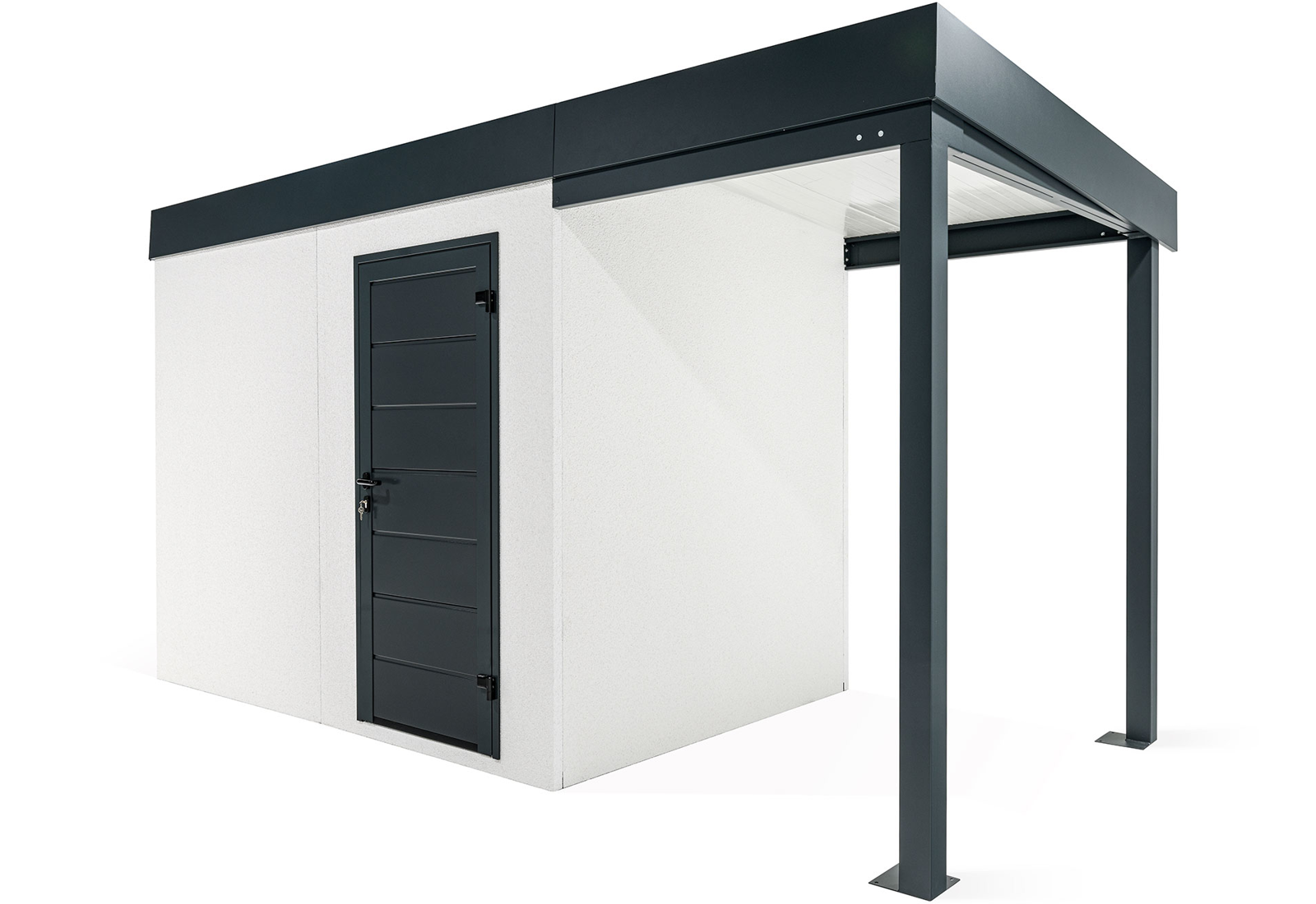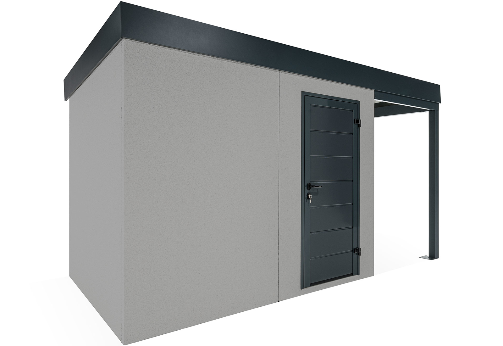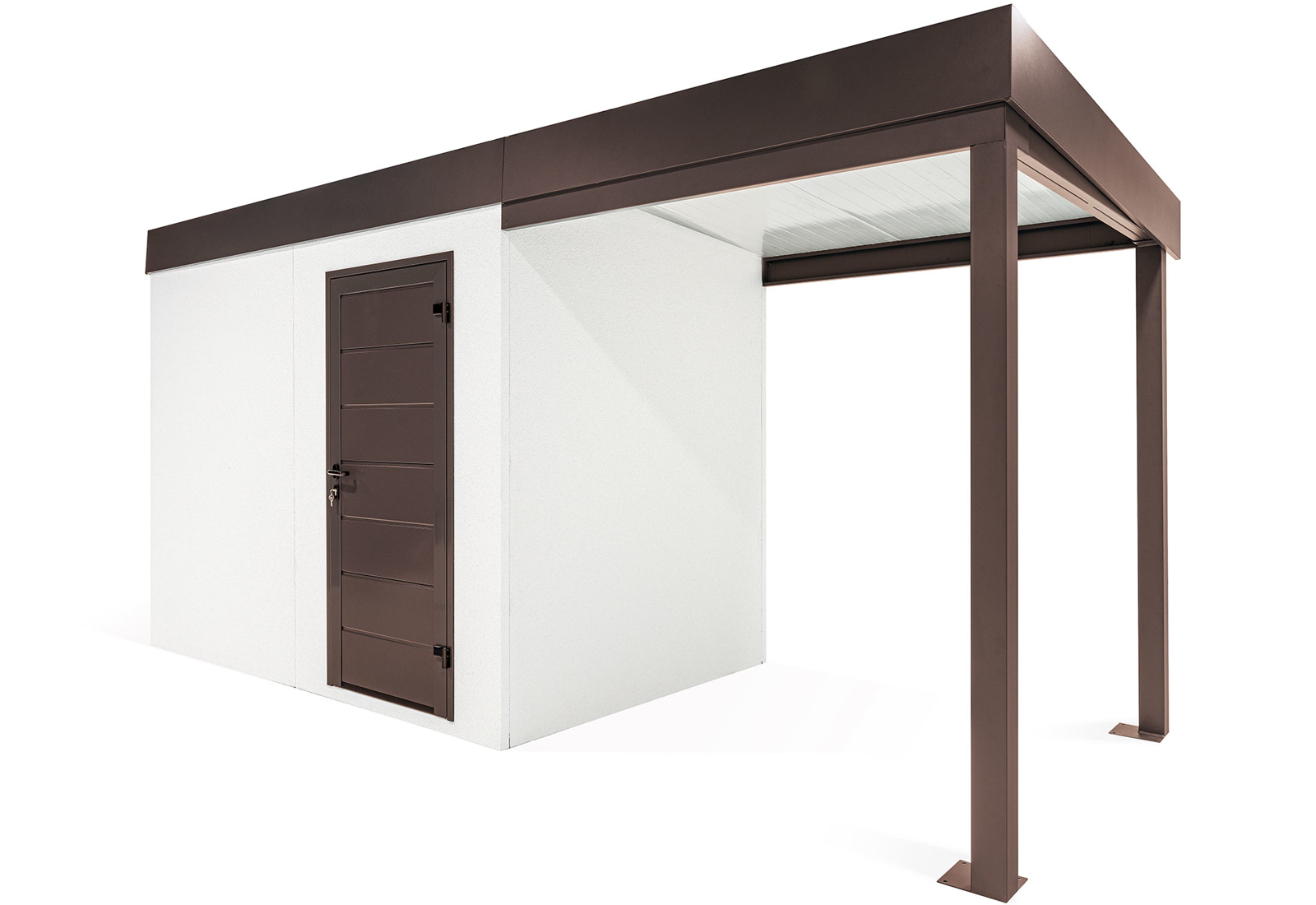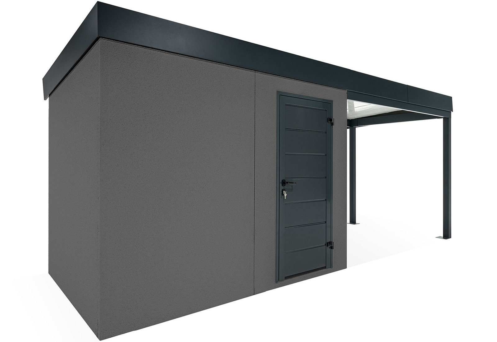 Objevte inovaci ve stavebnictví – montované zahradní domky GARDEON® s hotovou designovou omítkou od švýcarské značky KABE. Celoroční fasáda je samočistící a s lehkostí odolá vodě, vysokým teplotám i všem rozmarům počasí. Díky naší unikátní technologii má ocelová stěna tloušťku pouhých 5 cm a oproti 20centimetrové klasické zděné stěně tak významně ušetříte prostor na své zahradě i uvnitř zahradního domku.