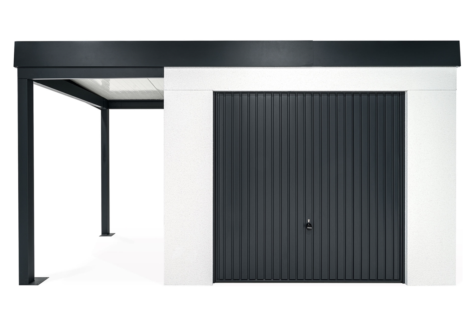 GARDEON® Zahradní domek s garážovými vraty Hörmann a levým přístřeškem