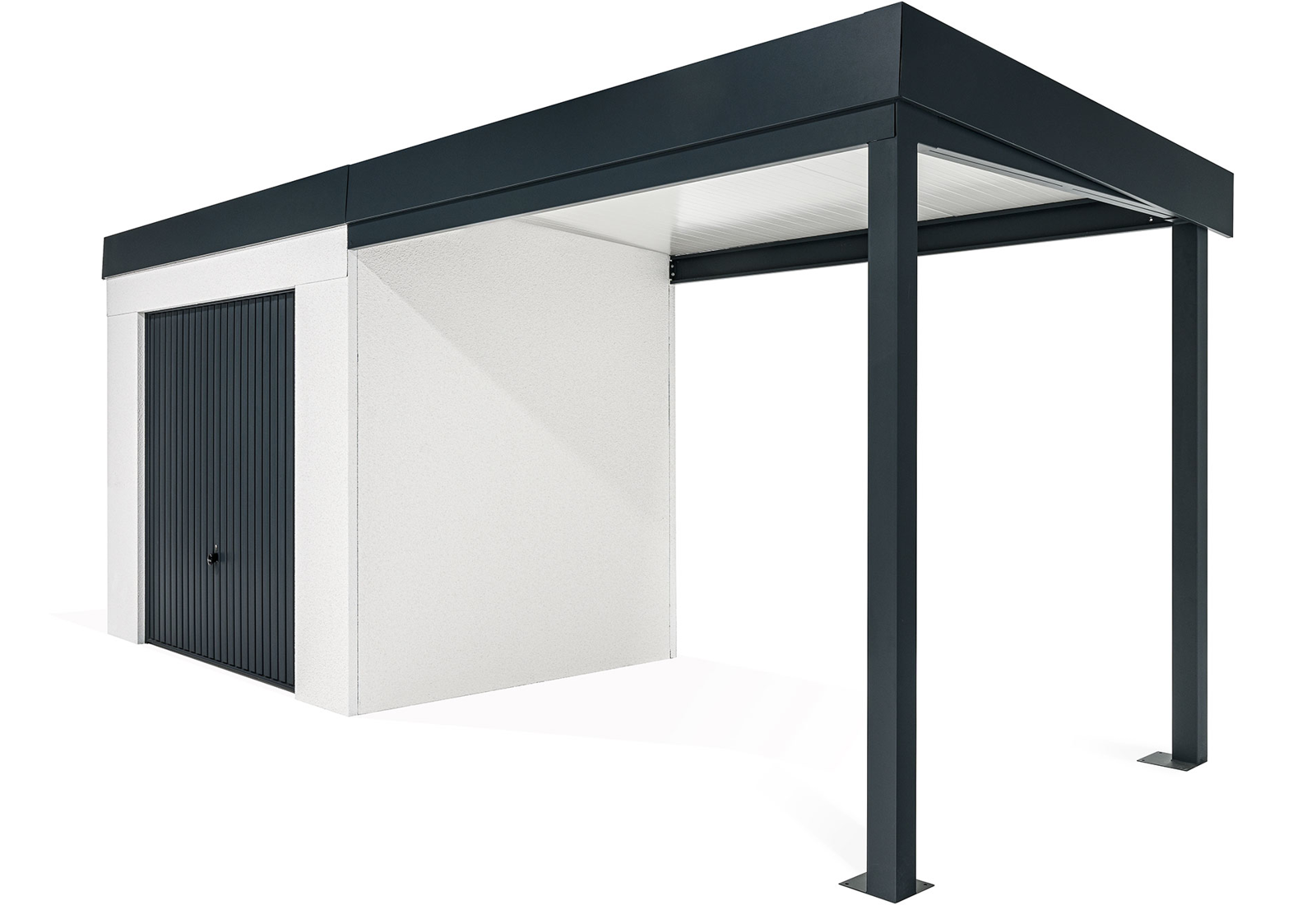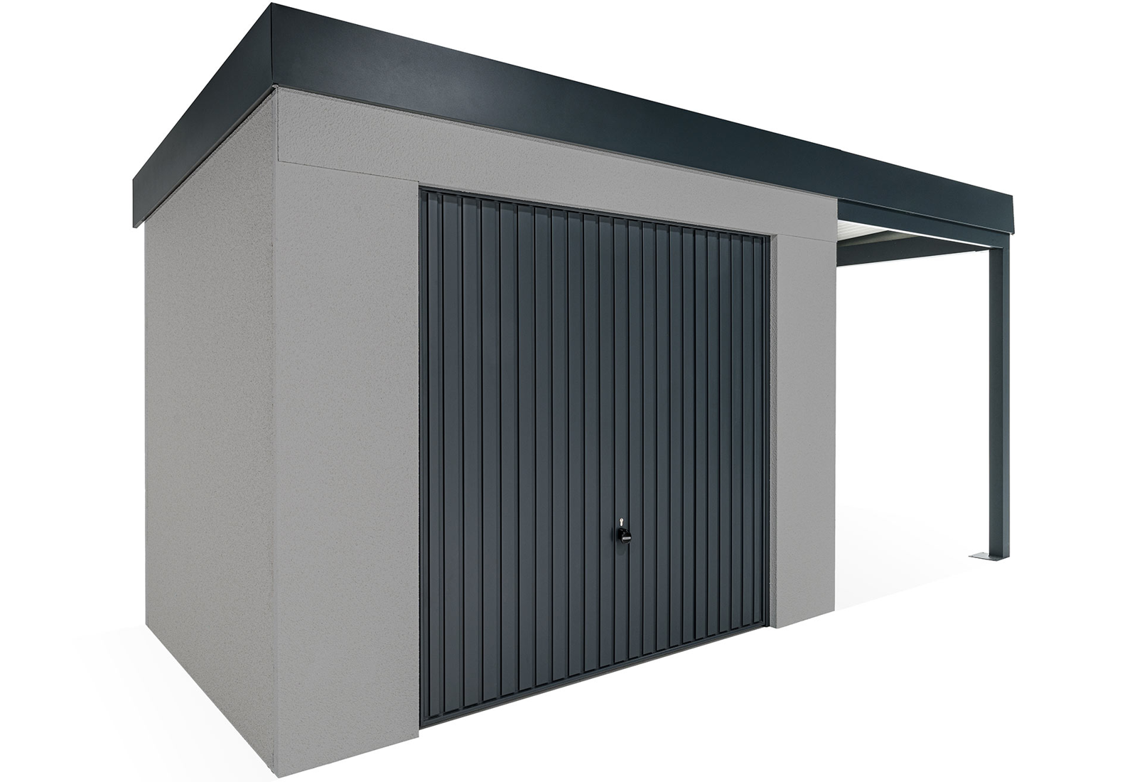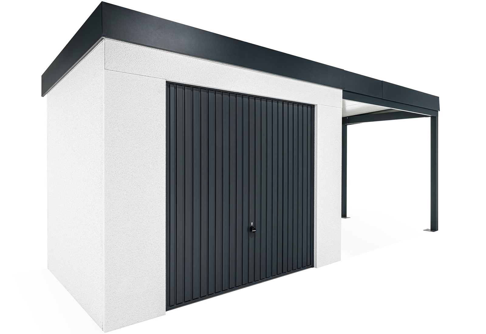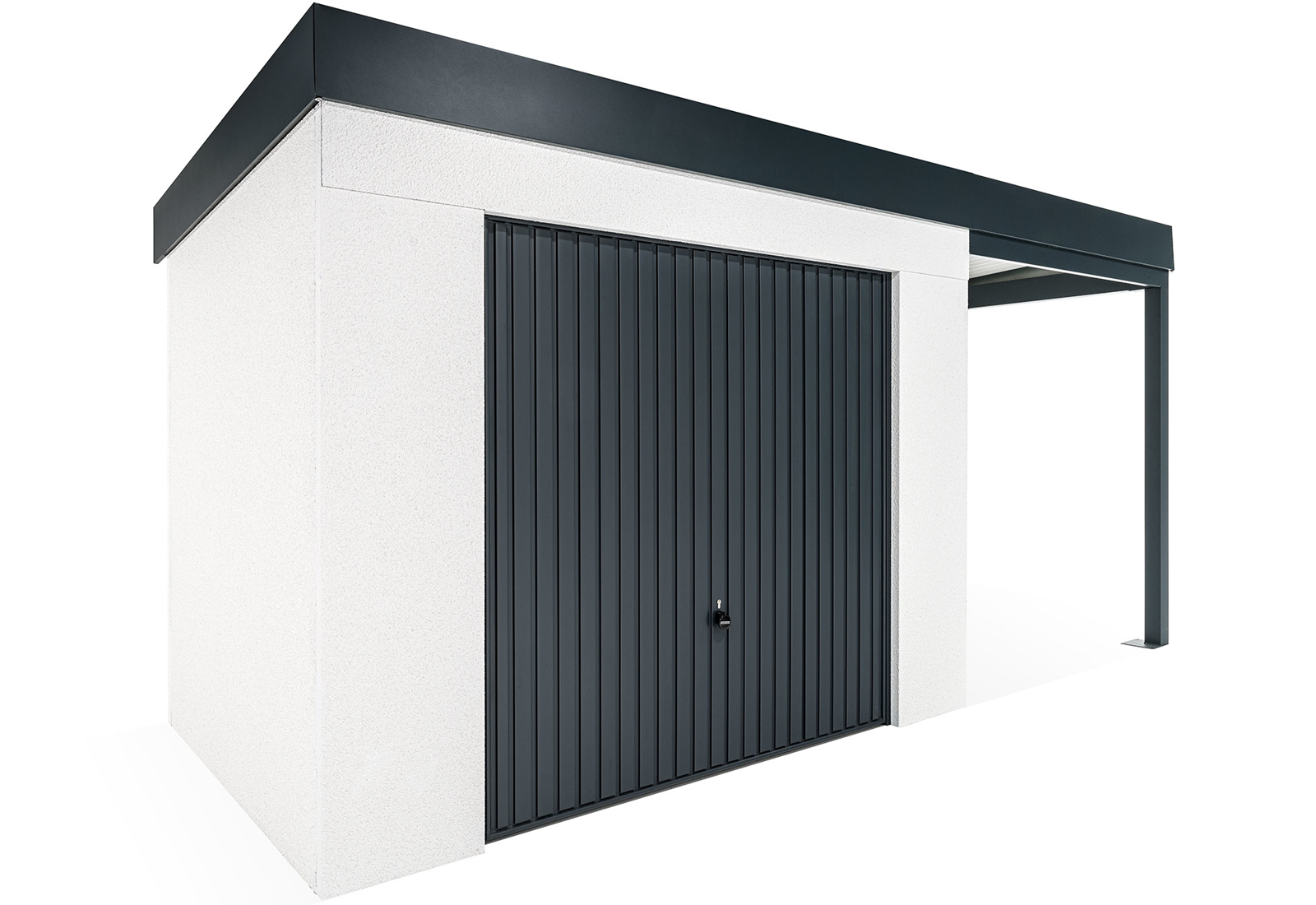 GARDEON® Zahradní domek s garážovými vraty Hörmann a pravým přístřeškem