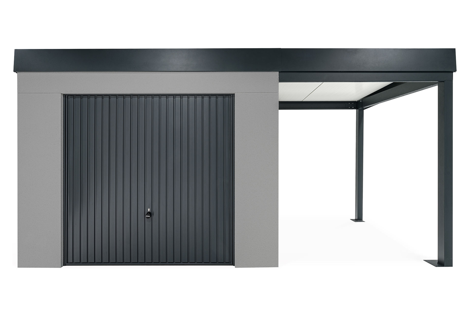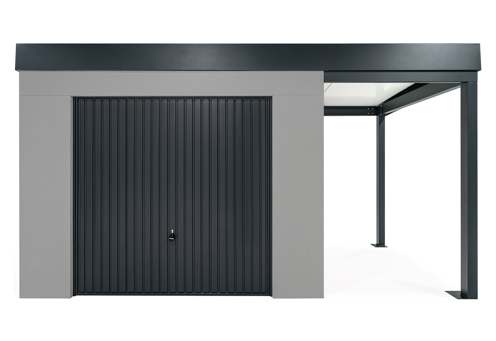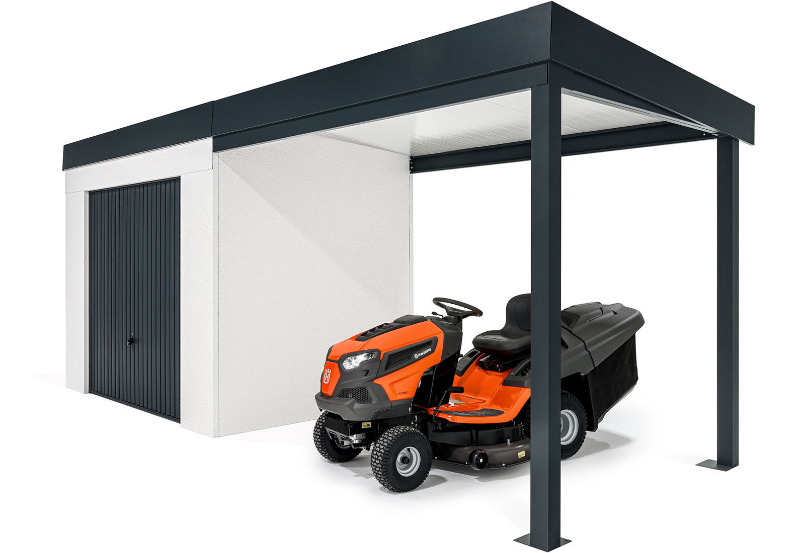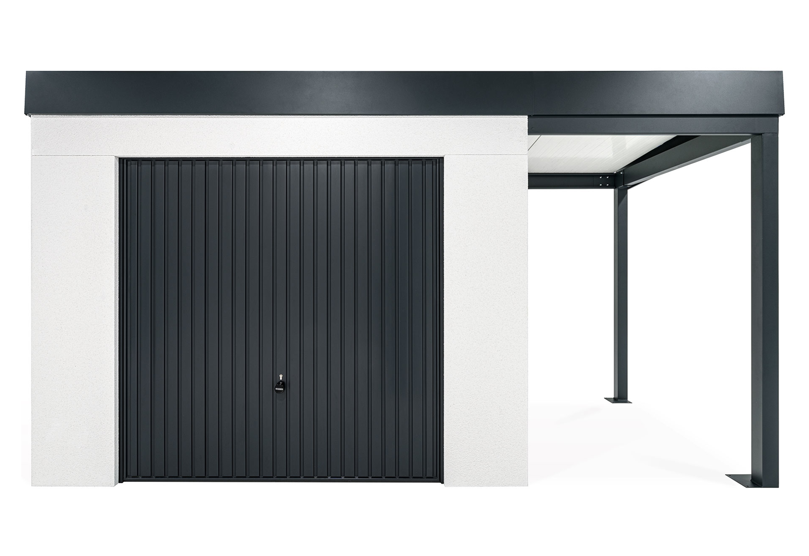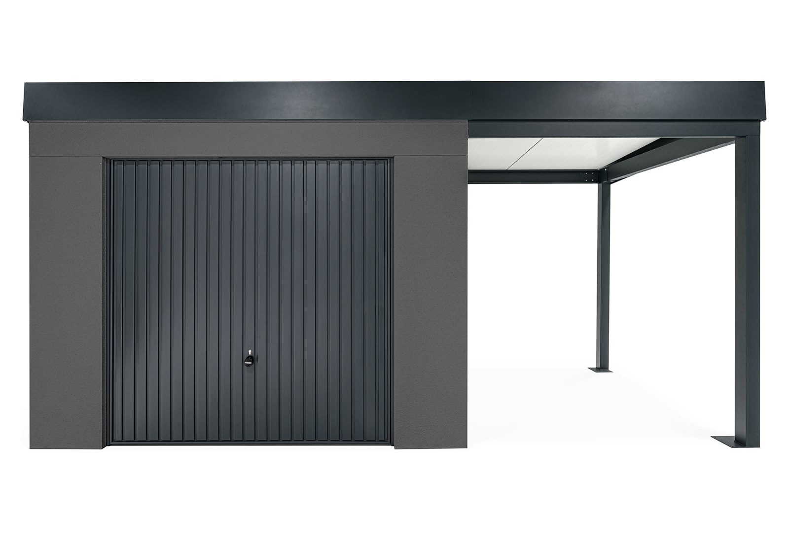 GARDEON® Zahradní domek s garážovými vraty Hörmann a pravým přístřeškem