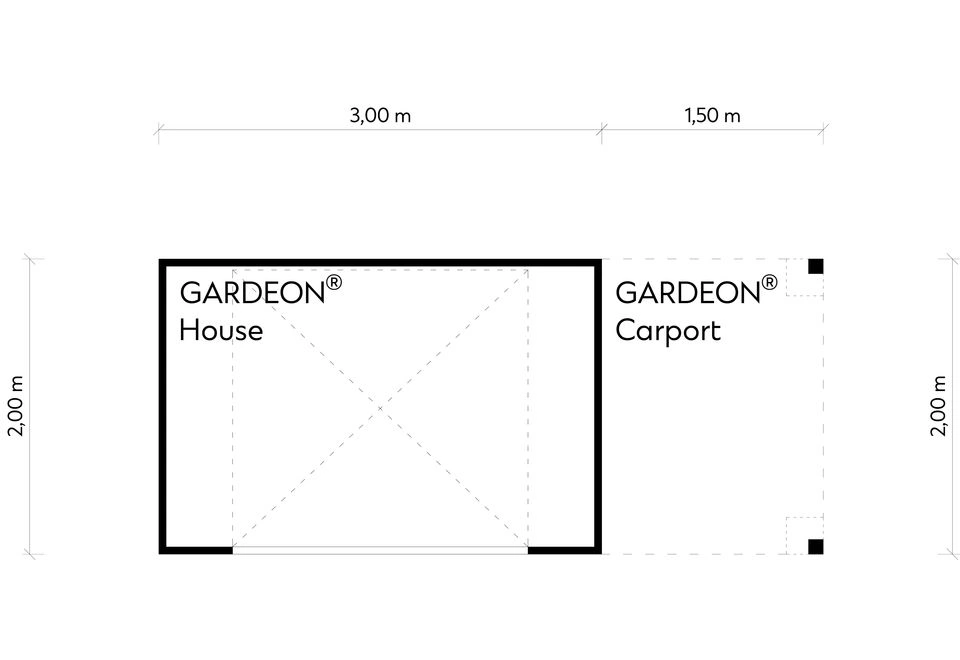 GARDEON® Zahradní domek 3 x 2 m s garážovými vraty Hörmann a pravým přístřeškem | Gardeon