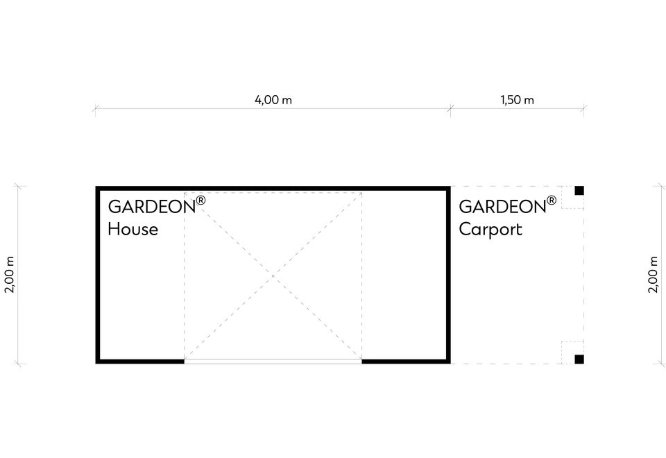 GARDEON® Zahradní domek 4 x 2 m s garážovými vraty Hörmann a přístřeškem | Gardeon