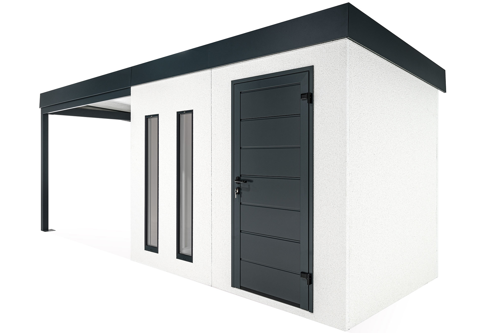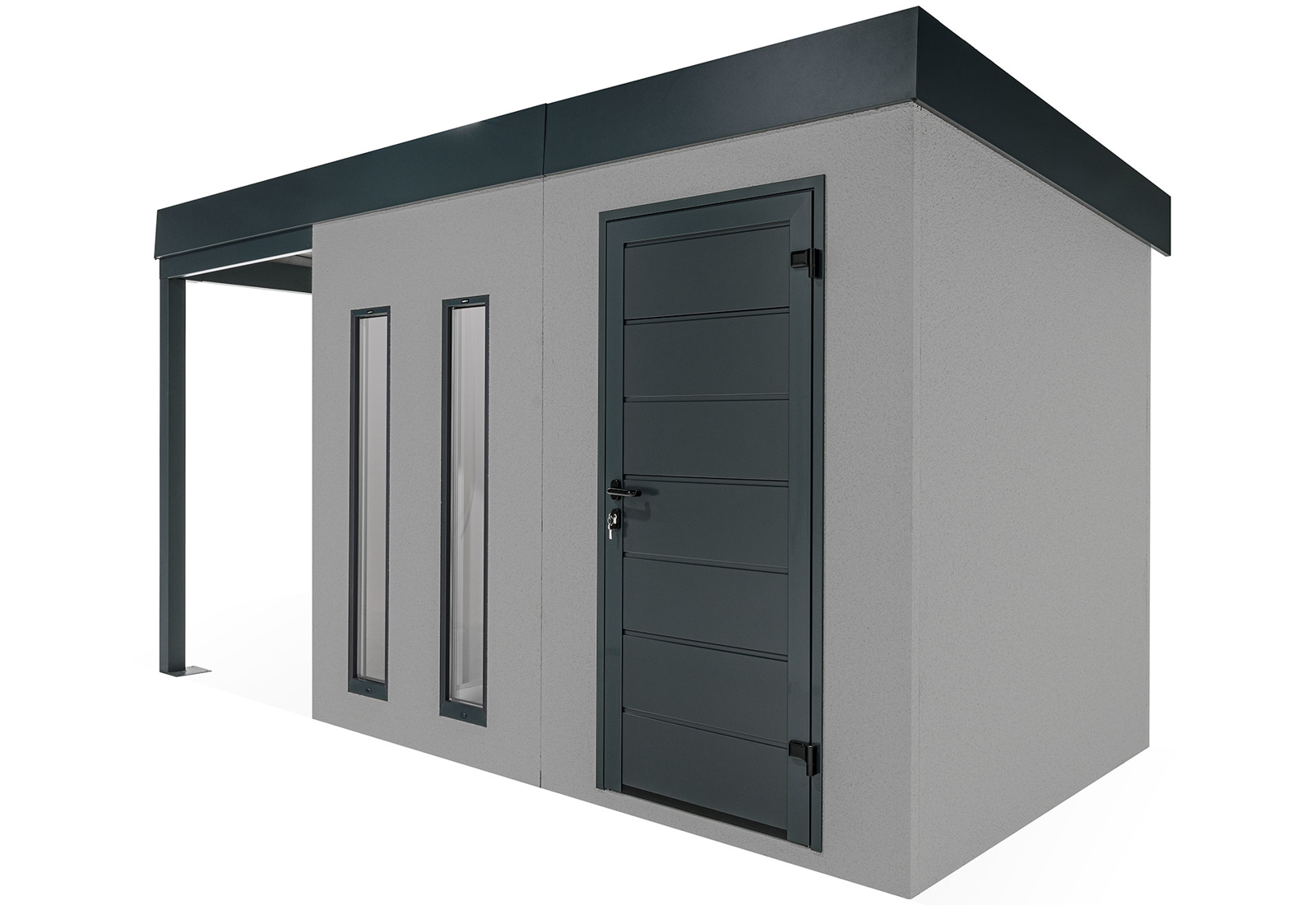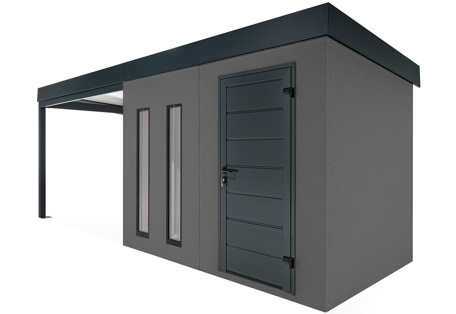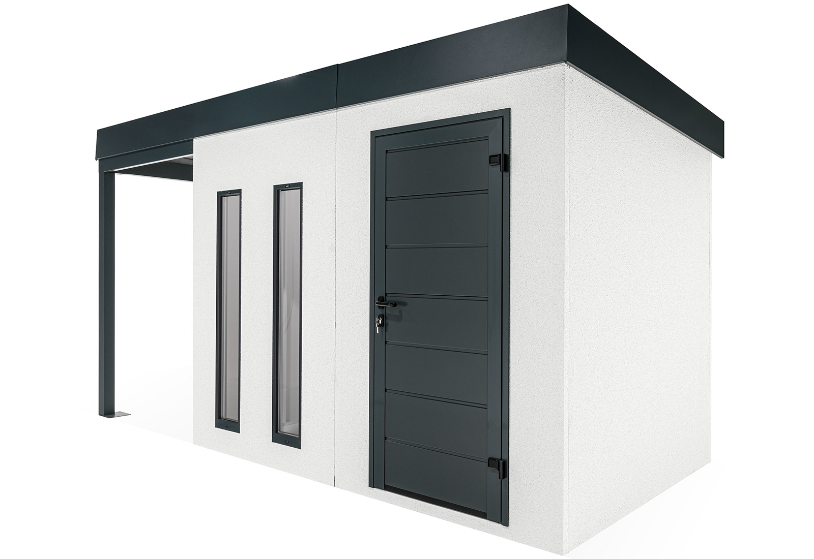 Objevte inovaci ve stavebnictví – montované zahradní domky GARDEON® s hotovou designovou omítkou od švýcarské značky KABE. Celoroční fasáda je samočistící a s lehkostí odolá vodě, vysokým teplotám i všem rozmarům počasí. Díky naší unikátní technologii má ocelová stěna tloušťku pouhých 5 cm a oproti 20centimetrové klasické zděné stěně tak významně ušetříte prostor na své zahradě i uvnitř zahradního domku.