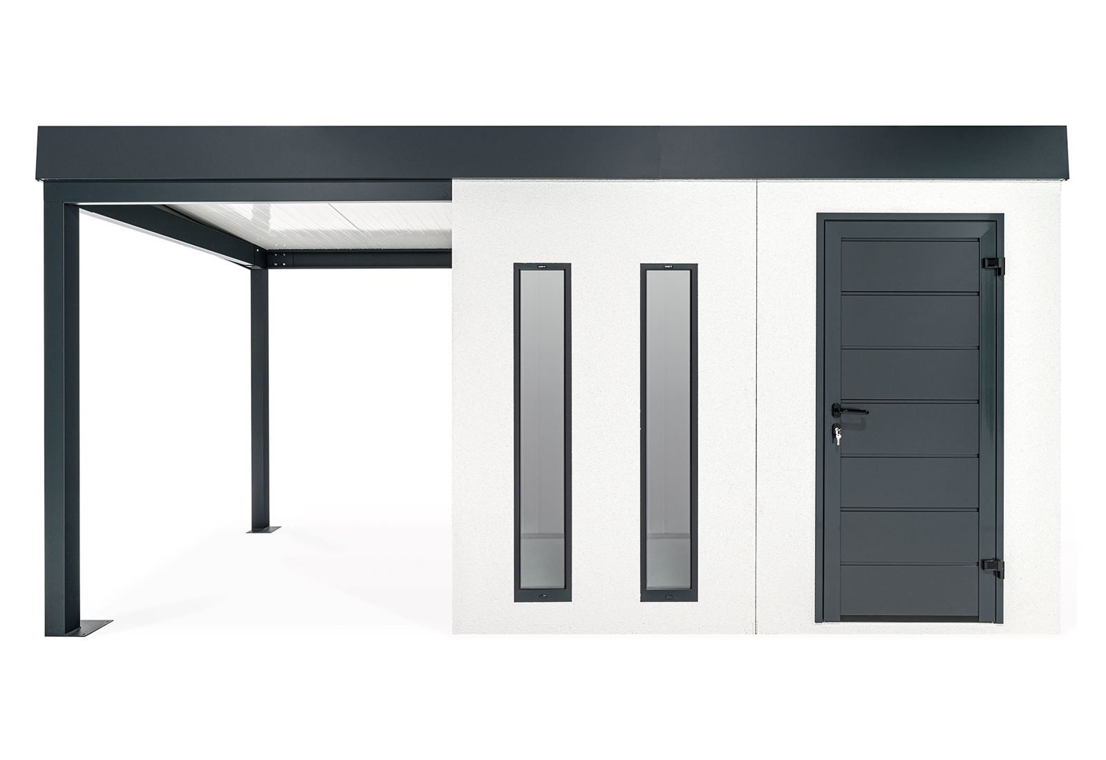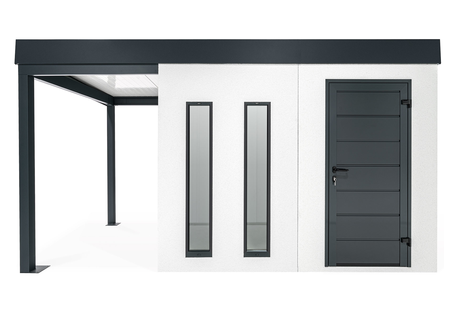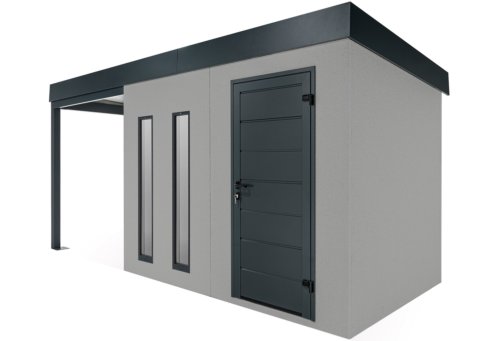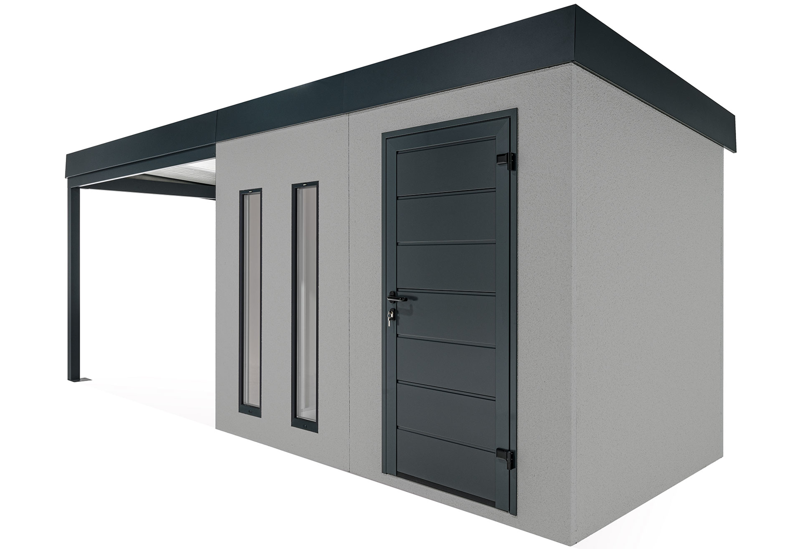 Objevte inovaci ve stavebnictví – montované zahradní domky GARDEON® s hotovou designovou omítkou od švýcarské značky KABE. Celoroční fasáda je samočistící a s lehkostí odolá vodě, vysokým teplotám i všem rozmarům počasí. Díky naší unikátní technologii má ocelová stěna tloušťku pouhých 5 cm a oproti 20centimetrové klasické zděné stěně tak významně ušetříte prostor na své zahradě i uvnitř zahradního domku.