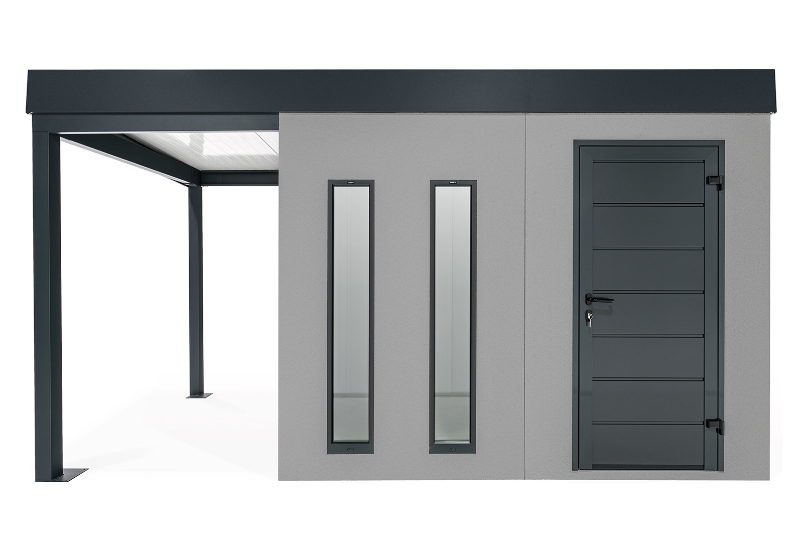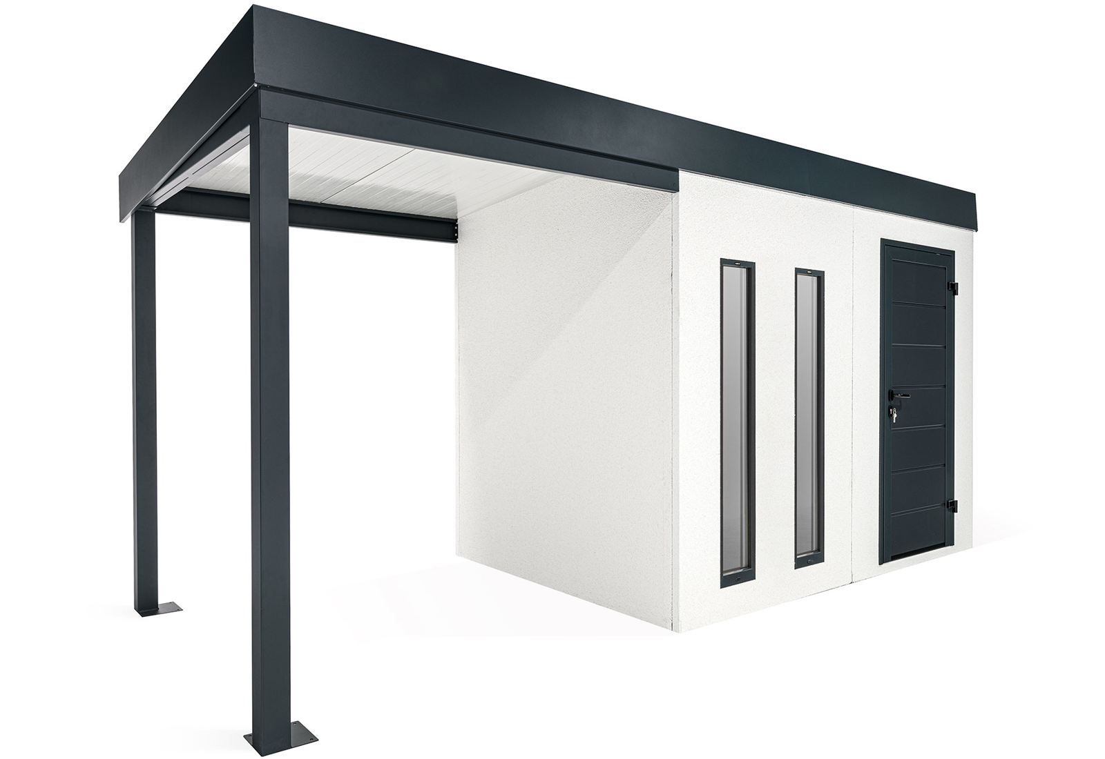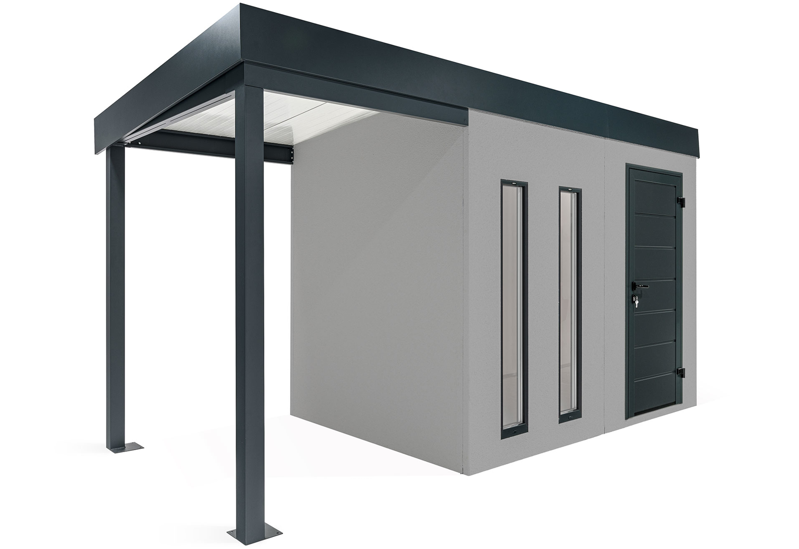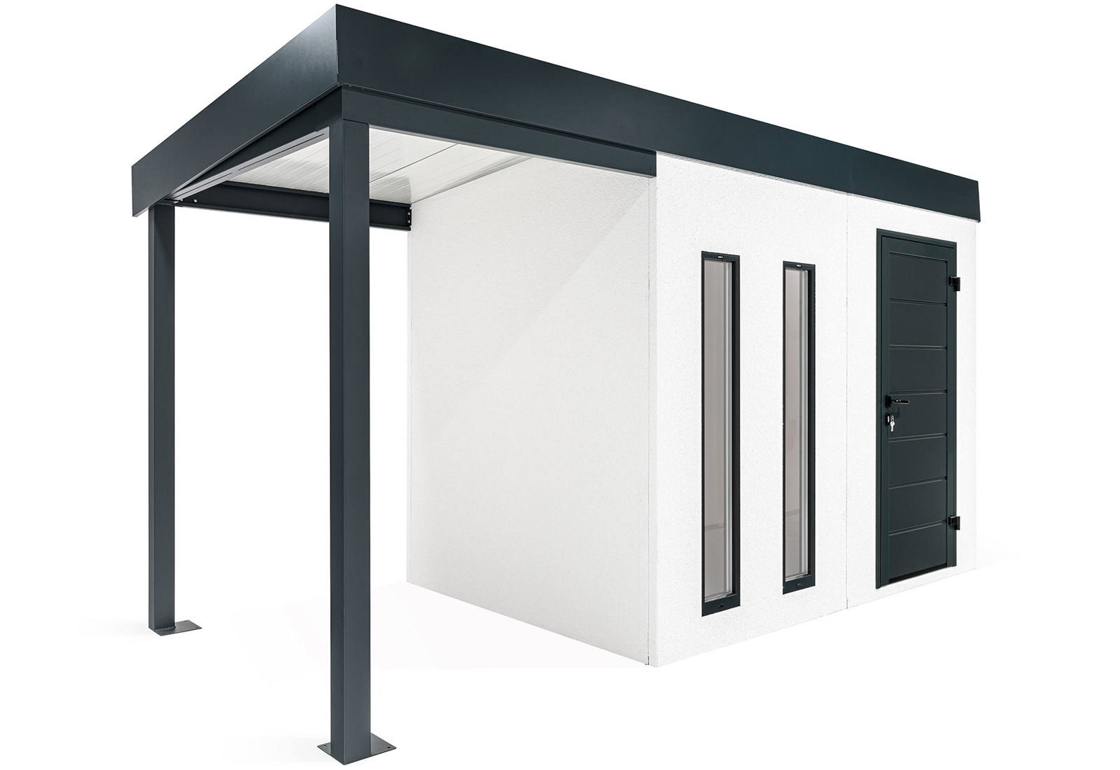 Objevte inovaci ve stavebnictví – montované zahradní domky GARDEON® s hotovou designovou omítkou od švýcarské značky KABE. Celoroční fasáda je samočistící a s lehkostí odolá vodě, vysokým teplotám i všem rozmarům počasí. Díky naší unikátní technologii má ocelová stěna tloušťku pouhých 5 cm a oproti 20centimetrové klasické zděné stěně tak významně ušetříte prostor na své zahradě i uvnitř zahradního domku.