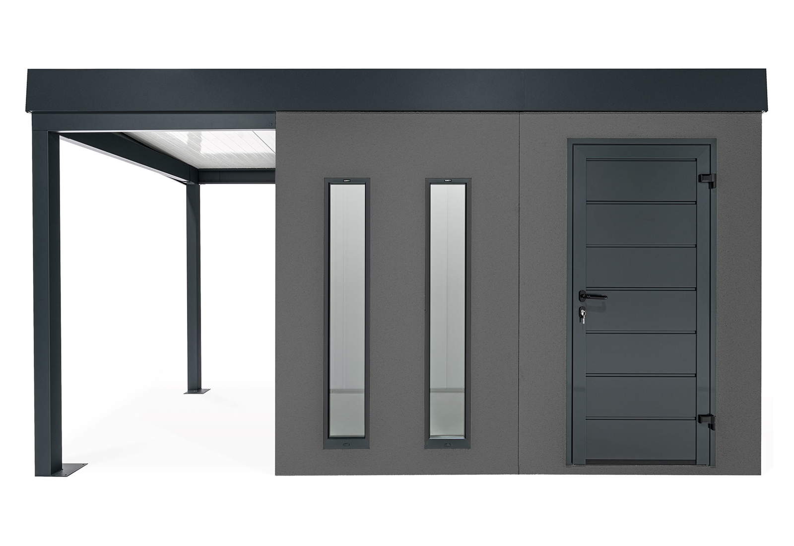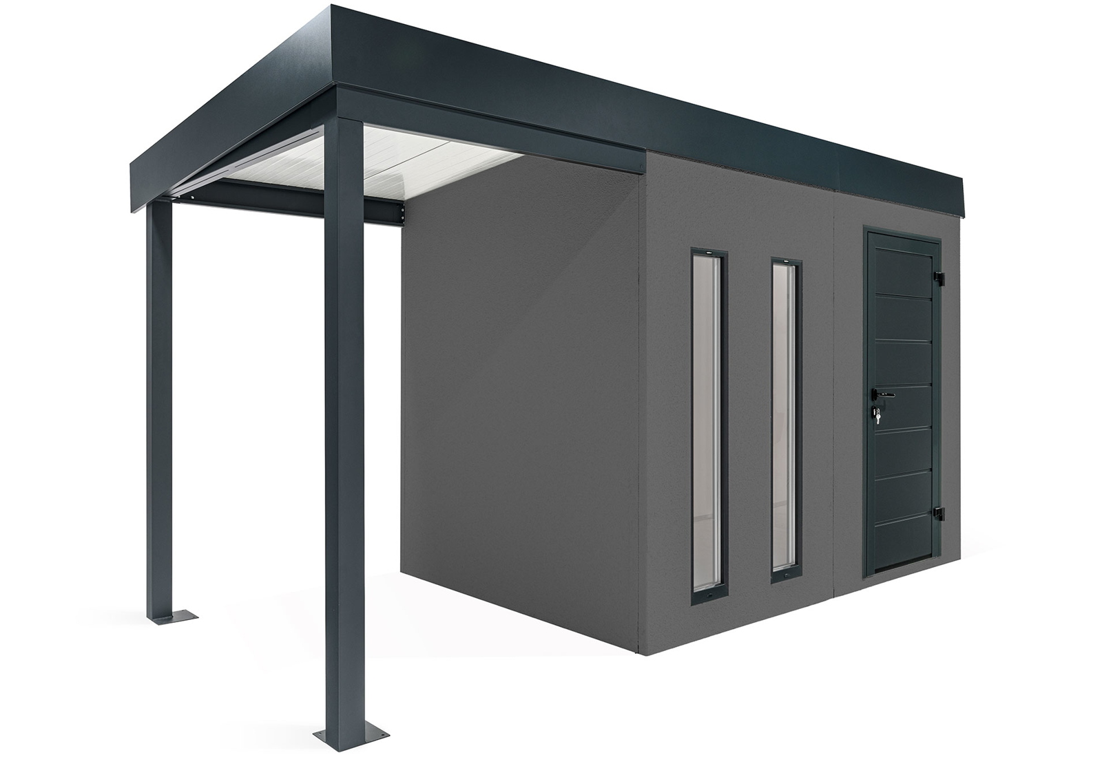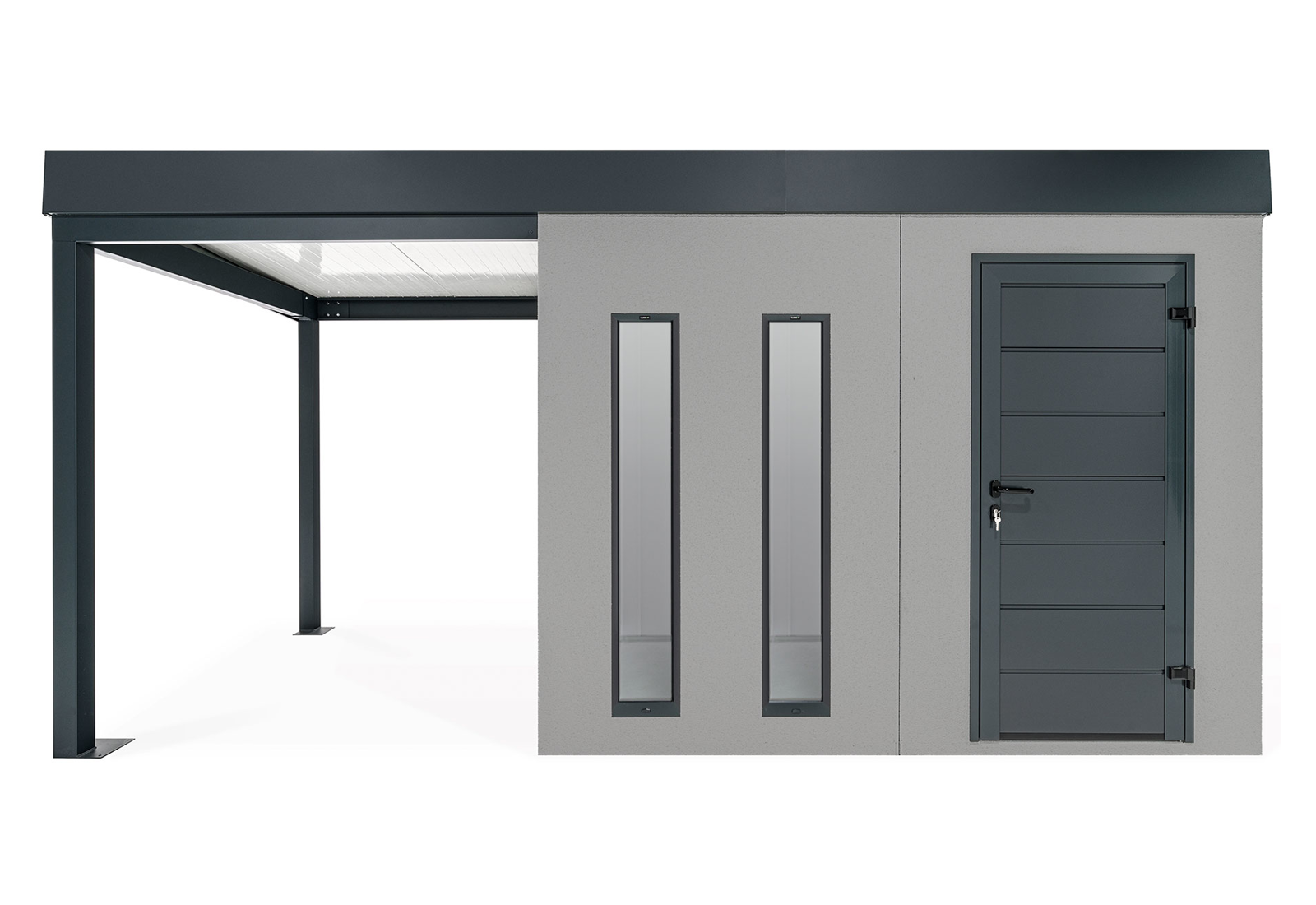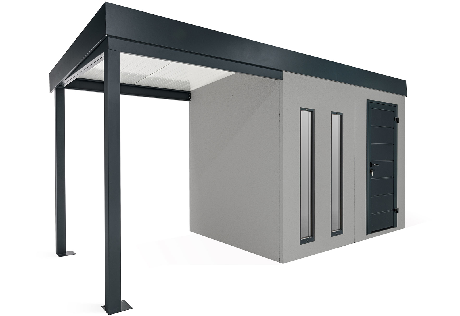 Objevte inovaci ve stavebnictví – montované zahradní domky GARDEON® s hotovou designovou omítkou od švýcarské značky KABE. Celoroční fasáda je samočistící a s lehkostí odolá vodě, vysokým teplotám i všem rozmarům počasí. Díky naší unikátní technologii má ocelová stěna tloušťku pouhých 5 cm a oproti 20centimetrové klasické zděné stěně tak významně ušetříte prostor na své zahradě i uvnitř zahradního domku.
