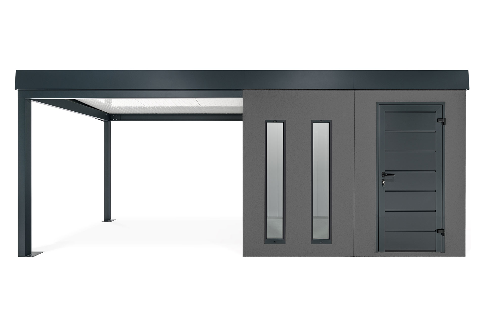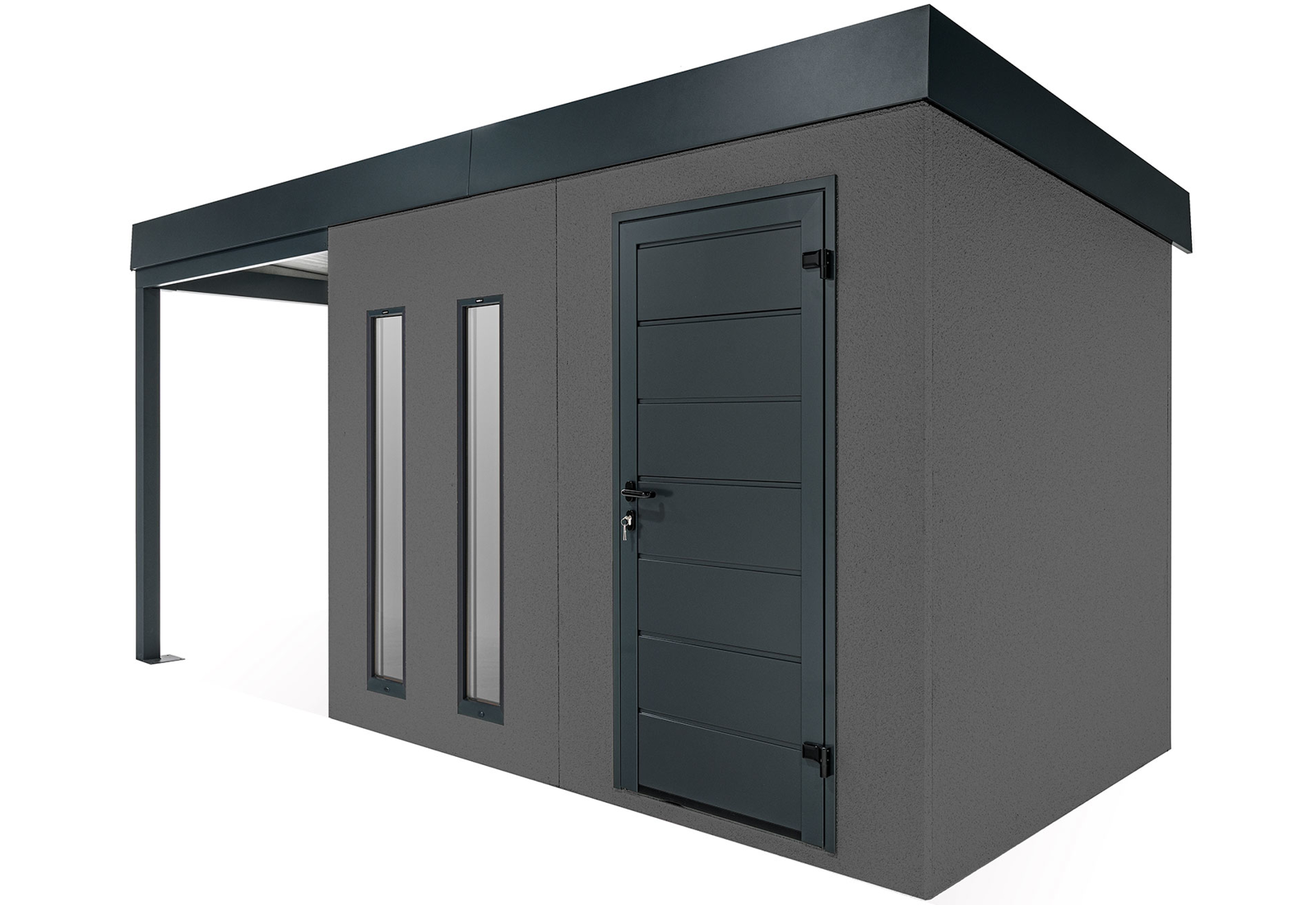 GARDEON® Zahradní domek s dveřmi Hörmann, dvěma světlíky a přístřeškem