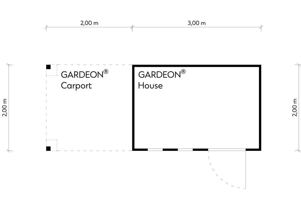 GARDEON® Zahradní domek 3 x 2 m s dveřmi Hörmann, dvěma světlíky a přístřeškem na levé straně | Gardeon