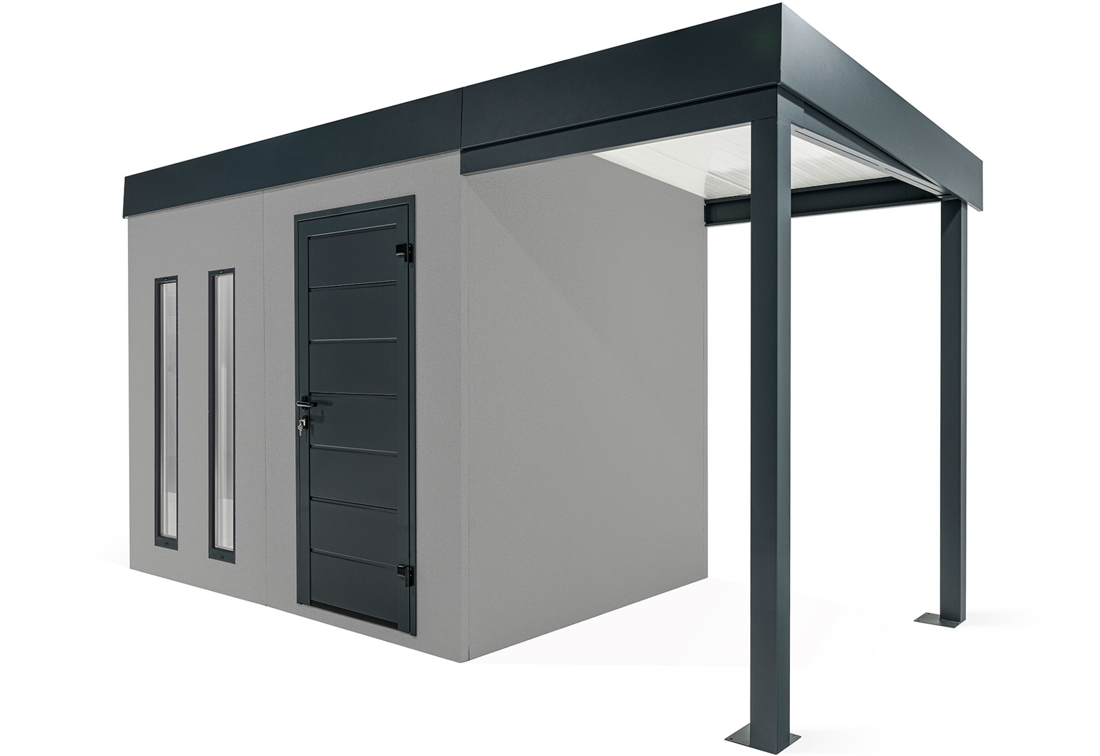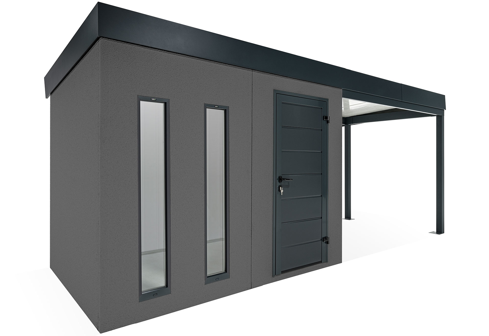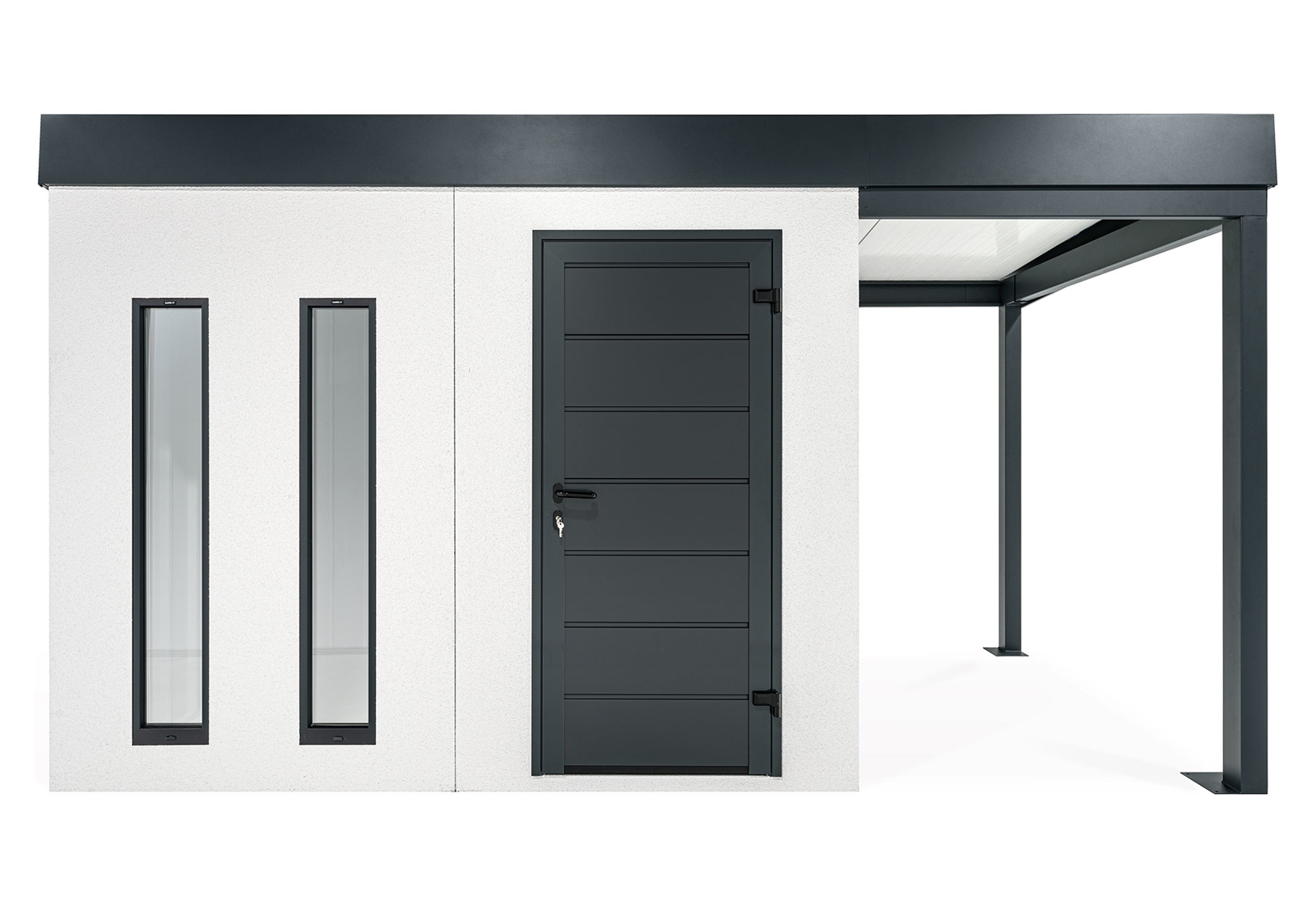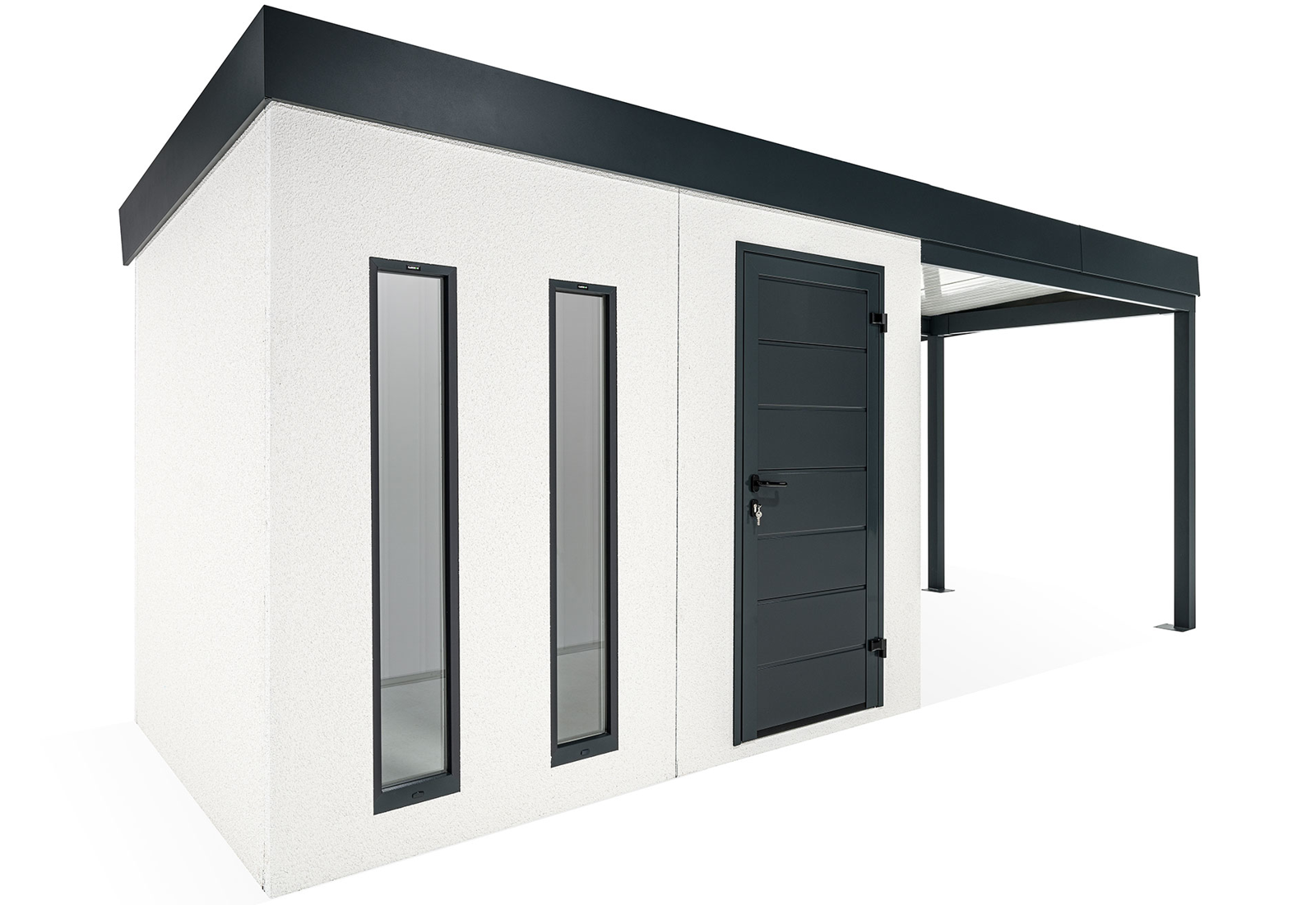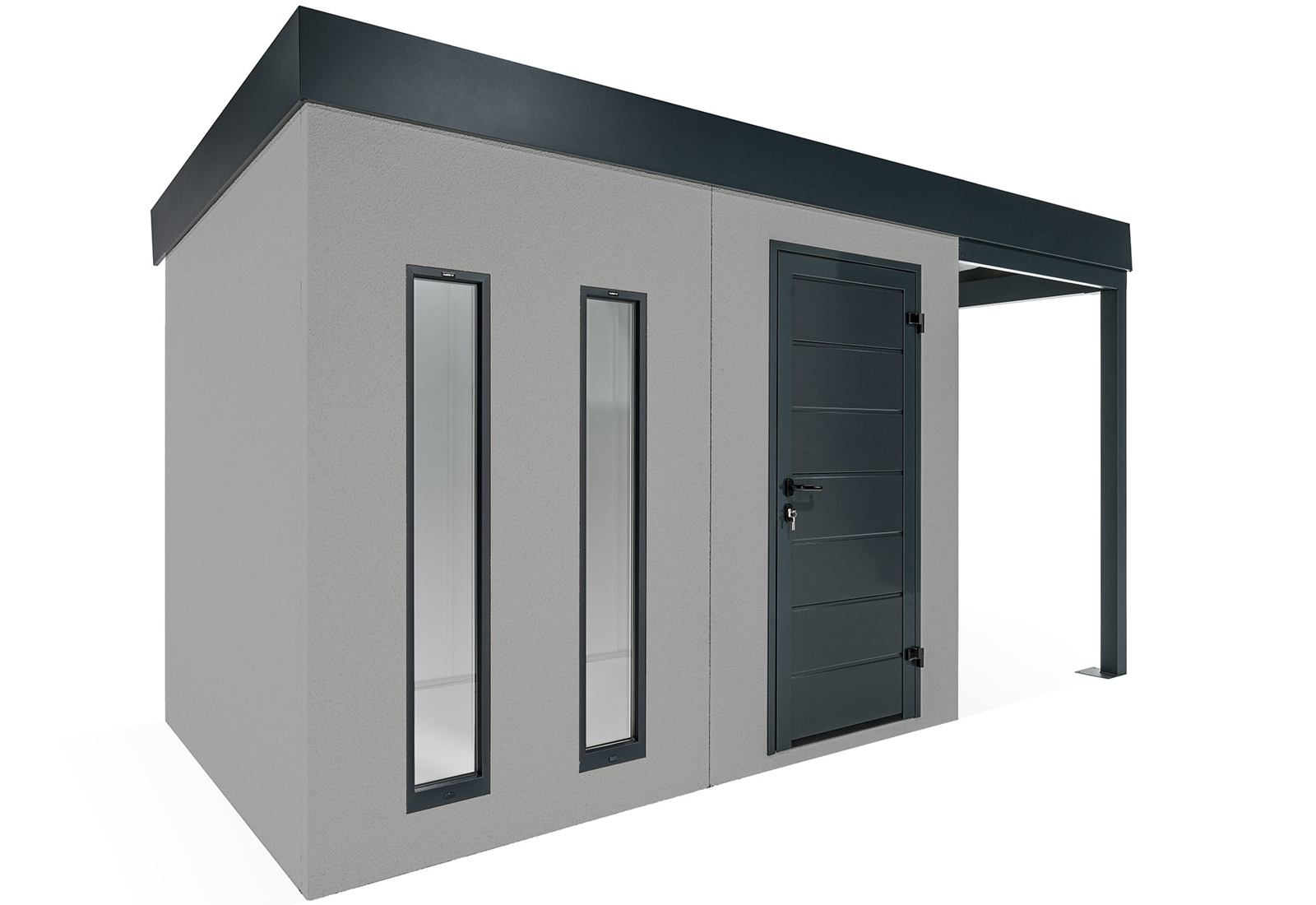 Objevte inovaci ve stavebnictví – montované zahradní domky GARDEON® s hotovou designovou omítkou od švýcarské značky KABE. Celoroční fasáda je samočistící a s lehkostí odolá vodě, vysokým teplotám i všem rozmarům počasí. Díky naší unikátní technologii má ocelová stěna tloušťku pouhých 5 cm a oproti 20centimetrové klasické zděné stěně tak významně ušetříte prostor na své zahradě i uvnitř zahradního domku.