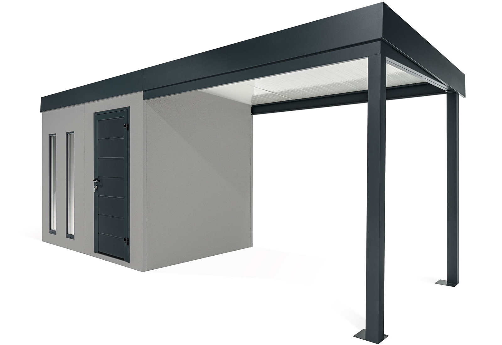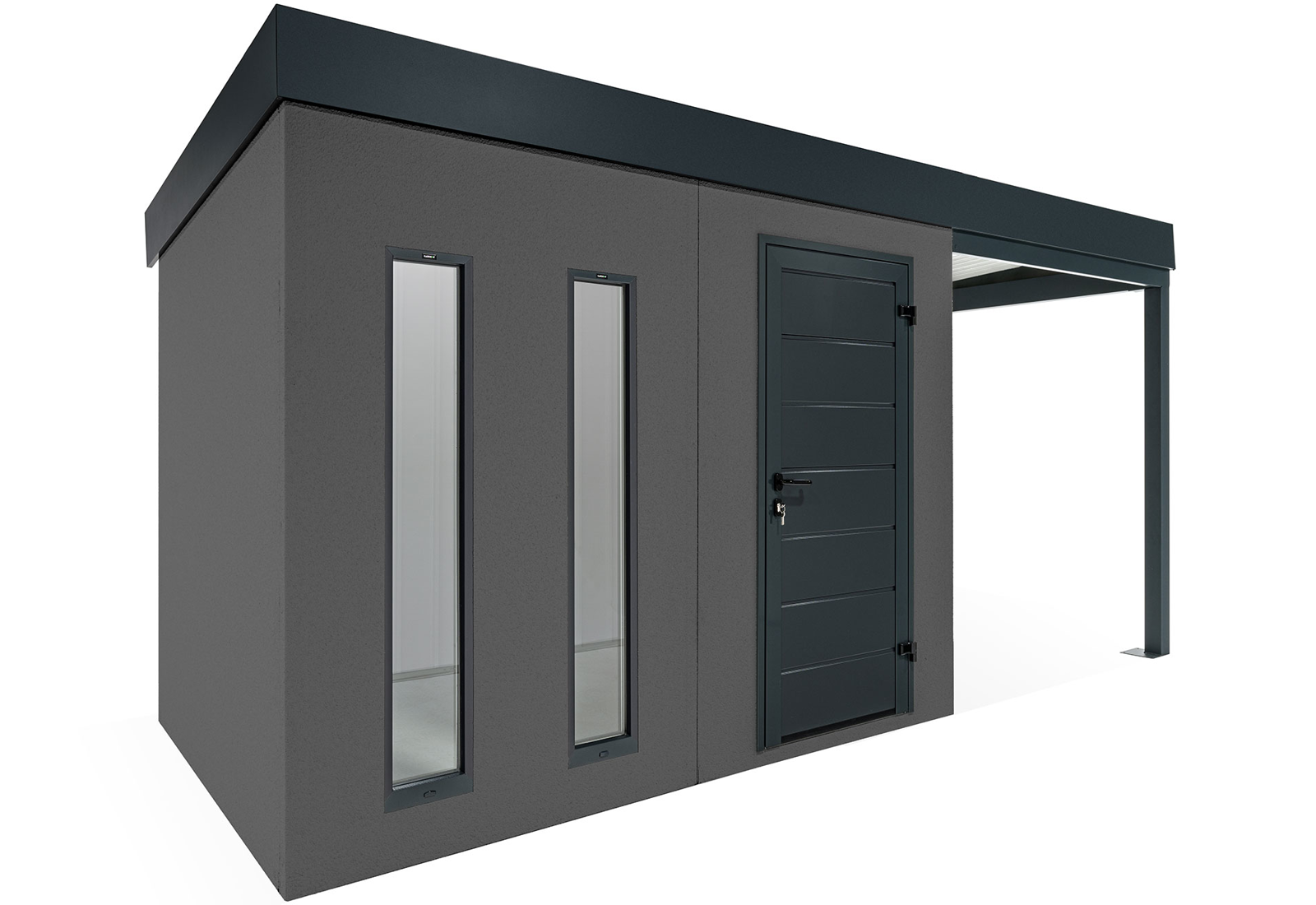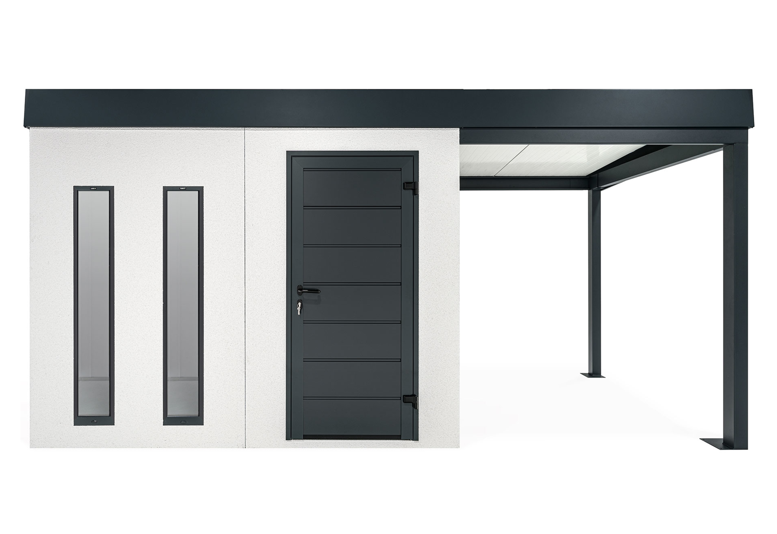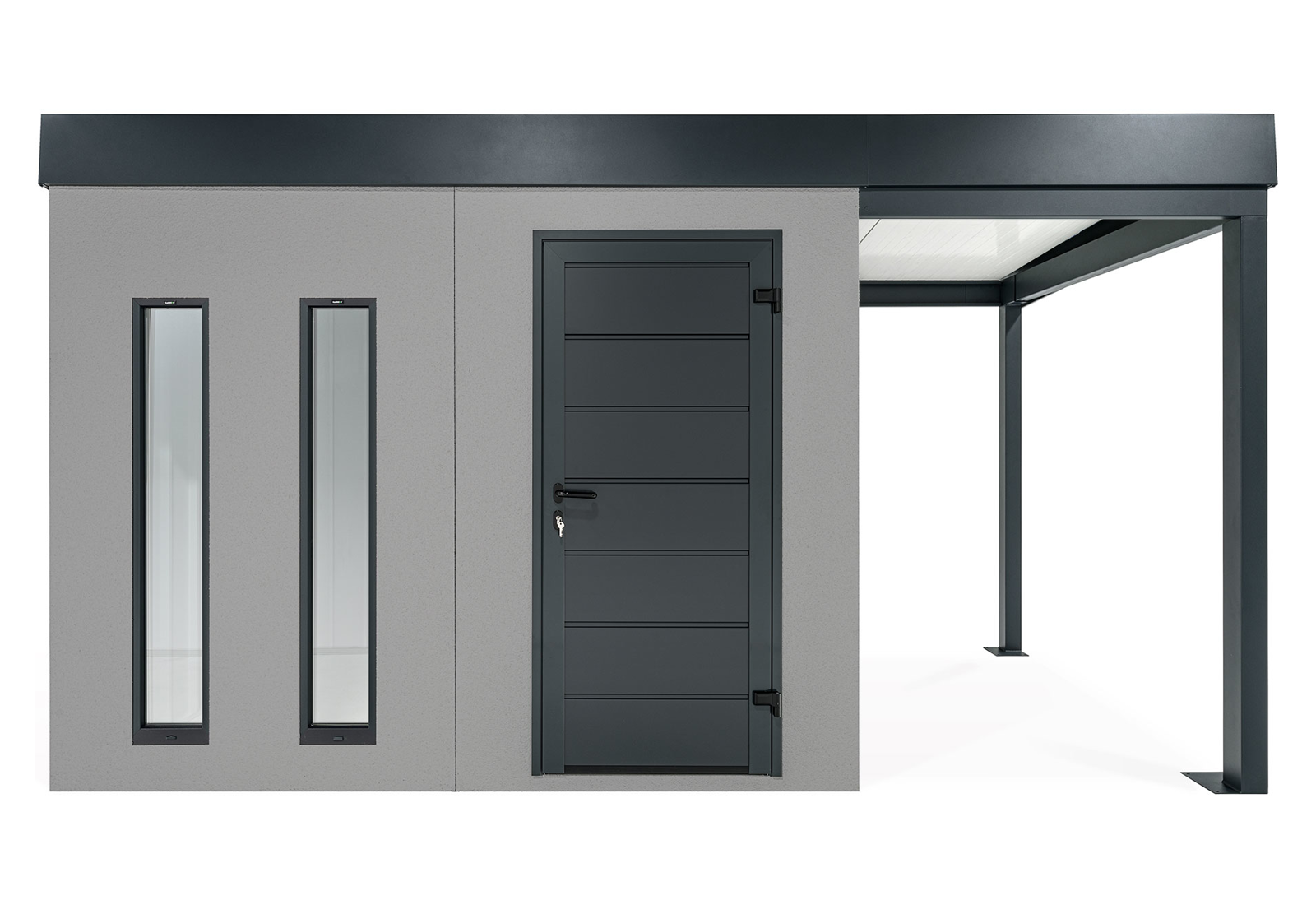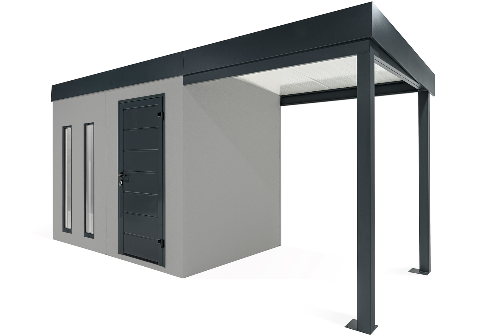 Objevte inovaci ve stavebnictví – montované zahradní domky GARDEON® s hotovou designovou omítkou od švýcarské značky KABE. Celoroční fasáda je samočistící a s lehkostí odolá vodě, vysokým teplotám i všem rozmarům počasí. Díky naší unikátní technologii má ocelová stěna tloušťku pouhých 5 cm a oproti 20centimetrové klasické zděné stěně tak významně ušetříte prostor na své zahradě i uvnitř zahradního domku.