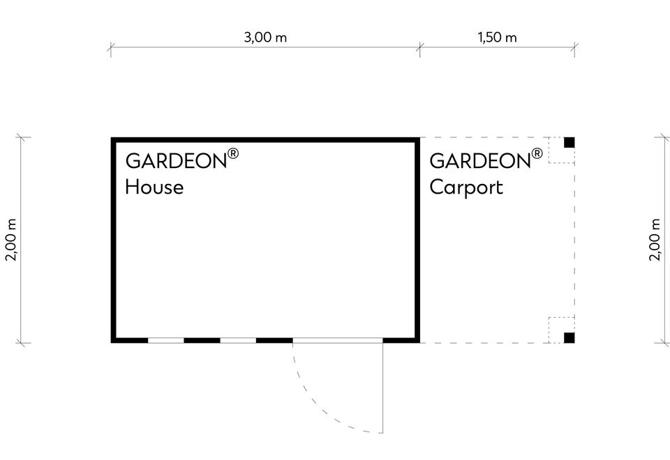 GARDEON® Zahradní domek 3 x 2 m s dveřmi Hörmann, dvěma světlíky a přístřeškem na pravé straně | Gardeon