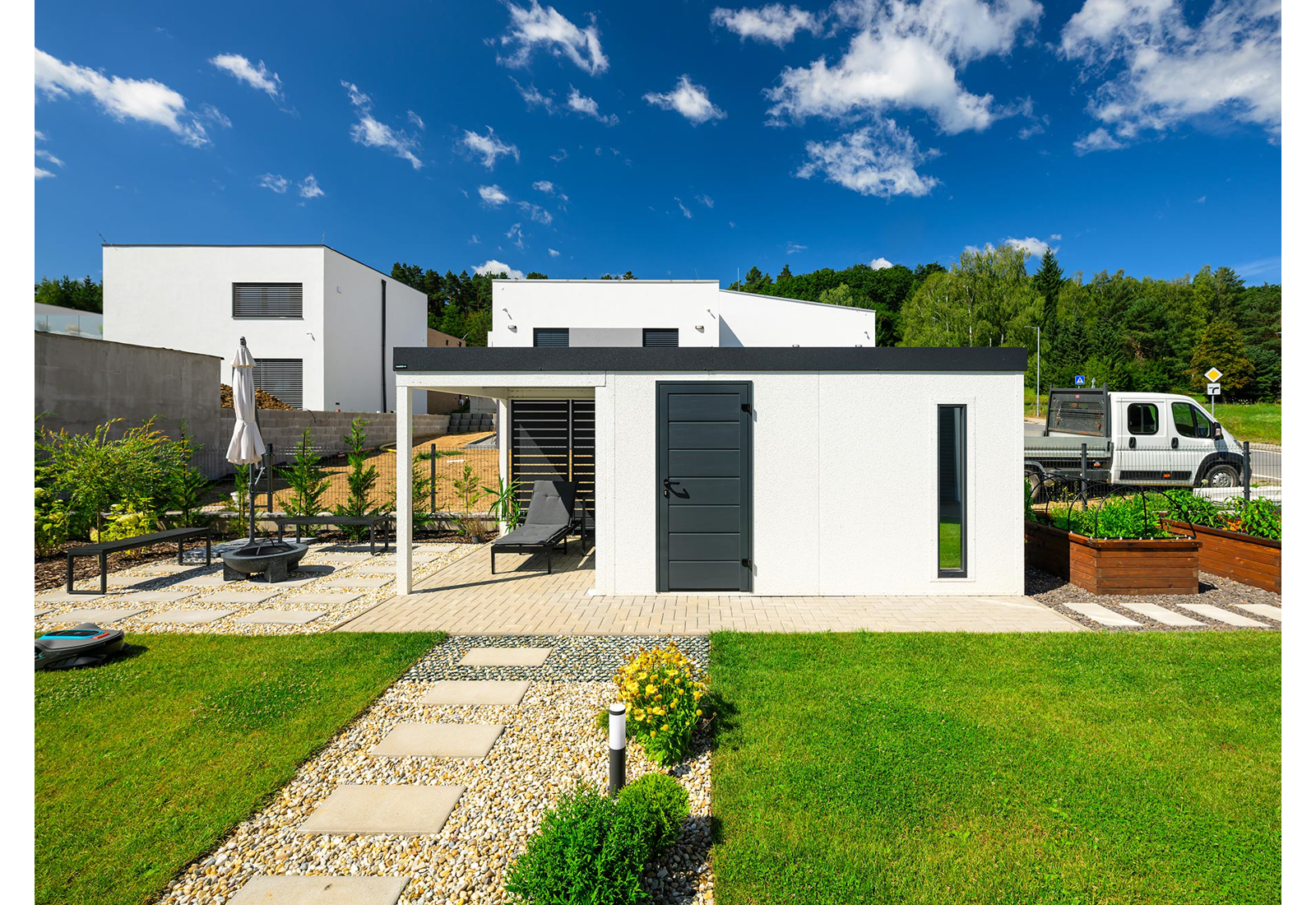 Objevte inovaci ve stavebnictví – montované zahradní domky GARDEON® s hotovou designovou omítkou od švýcarské značky KABE. Celoroční fasáda je samočistící a s lehkostí odolá vodě, vysokým teplotám i všem rozmarům počasí. Díky naší unikátní technologii má ocelová stěna tloušťku pouhých 5 cm a oproti 20centimetrové klasické zděné stěně tak významně ušetříte prostor na své zahradě i uvnitř zahradního domku.