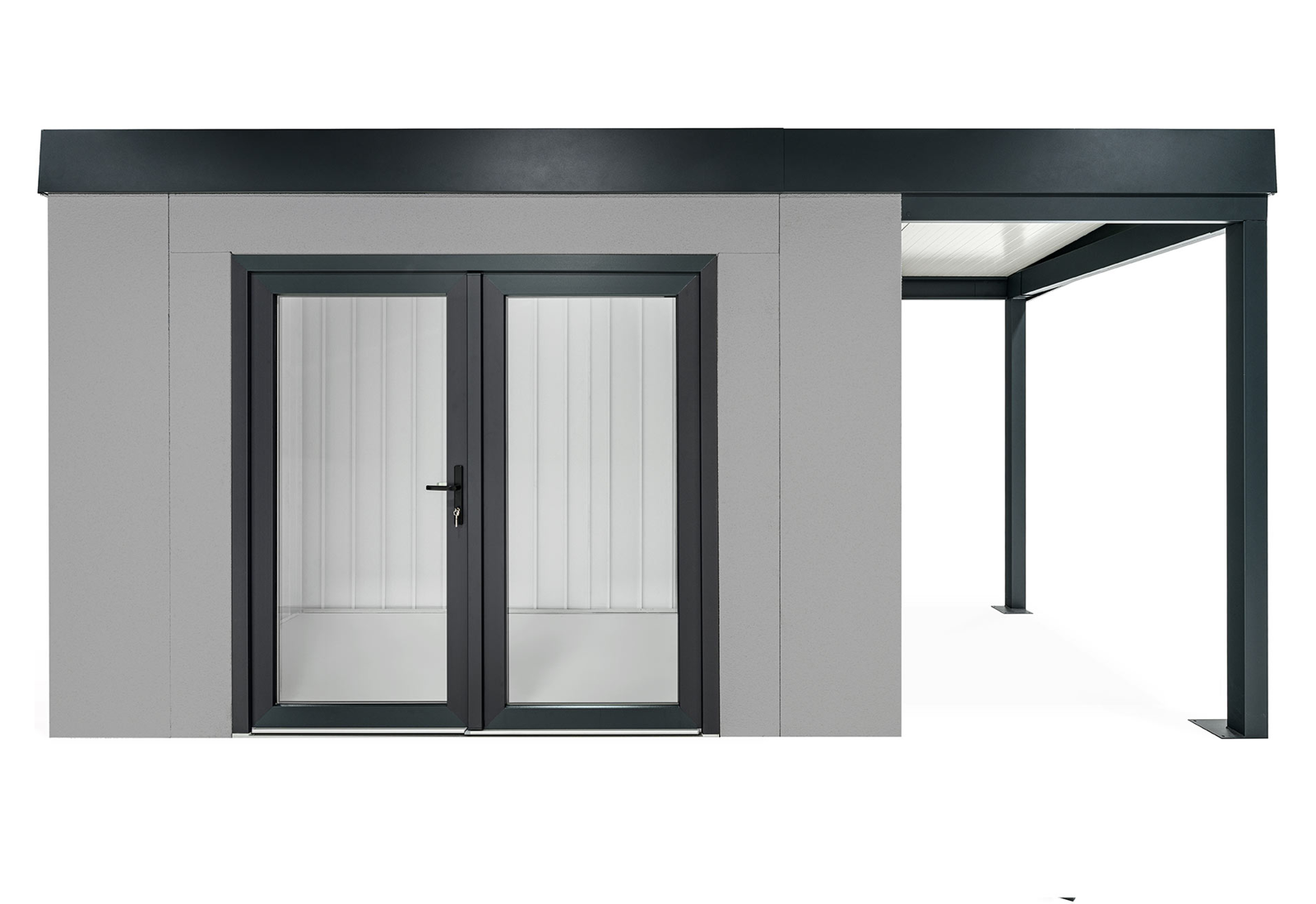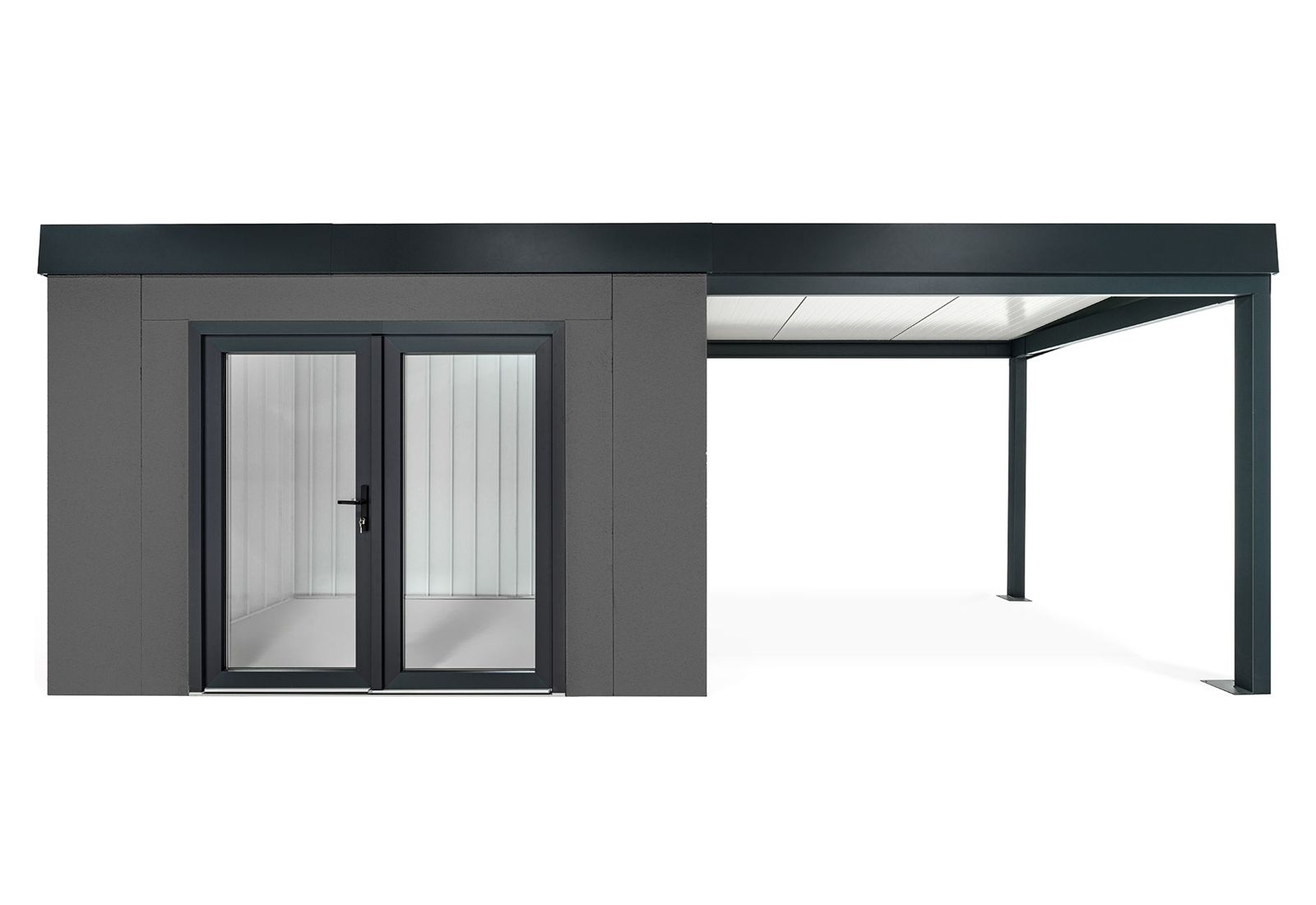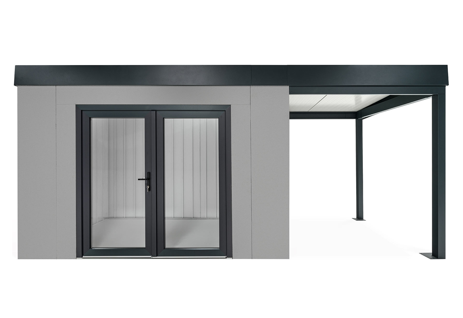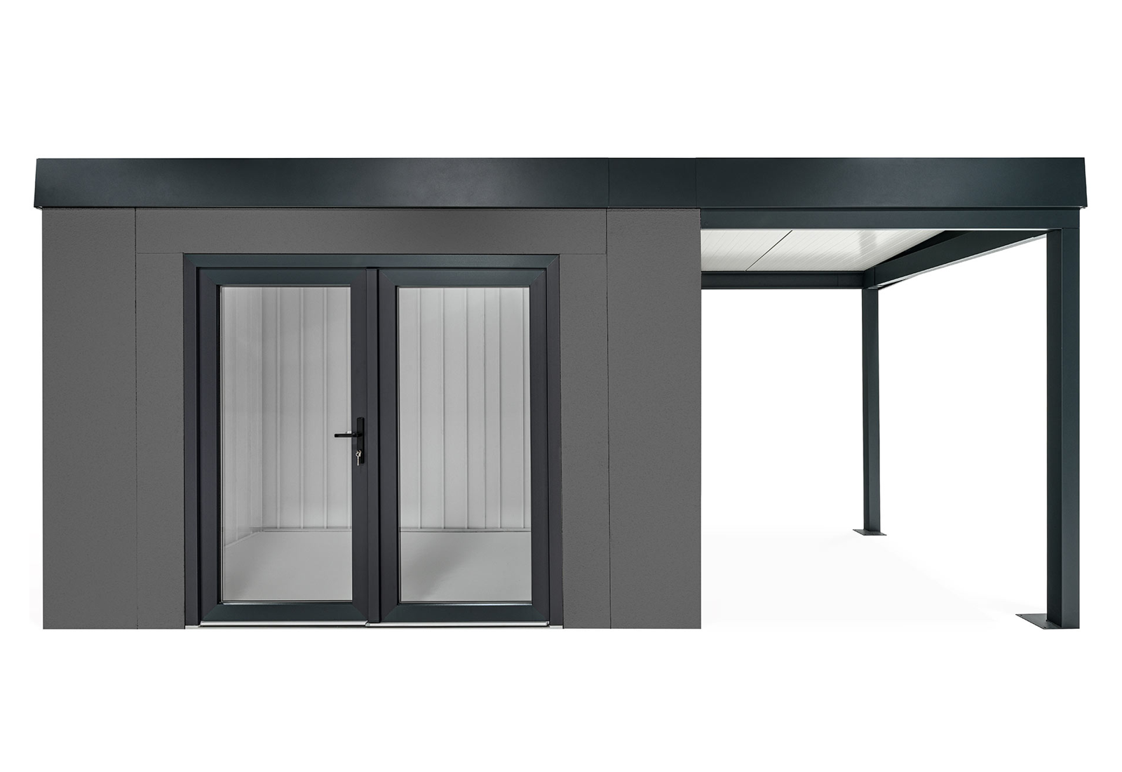 GARDEON® Zahradní domek s dvojitými panoramatickými dveřmi a přístřeškem