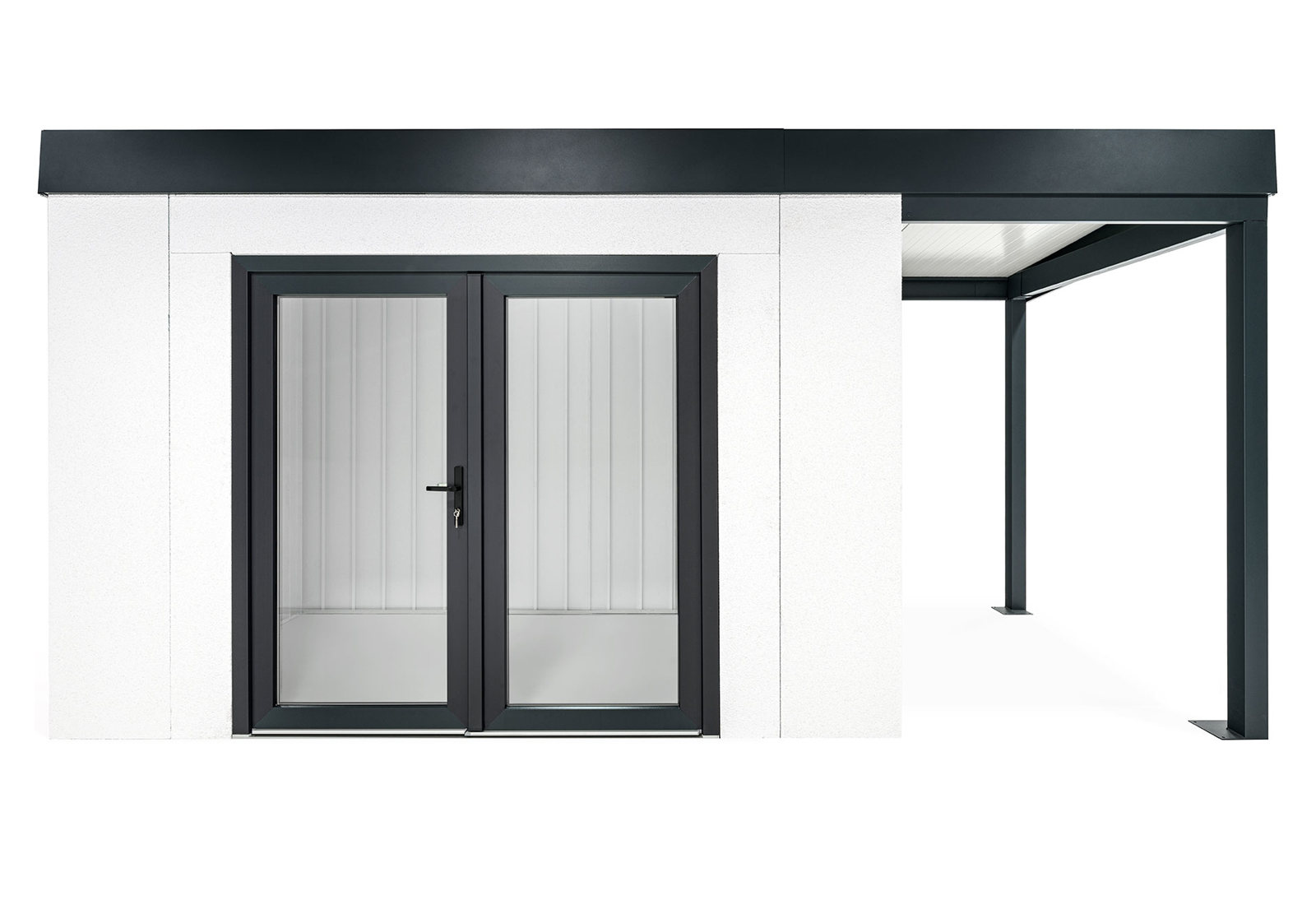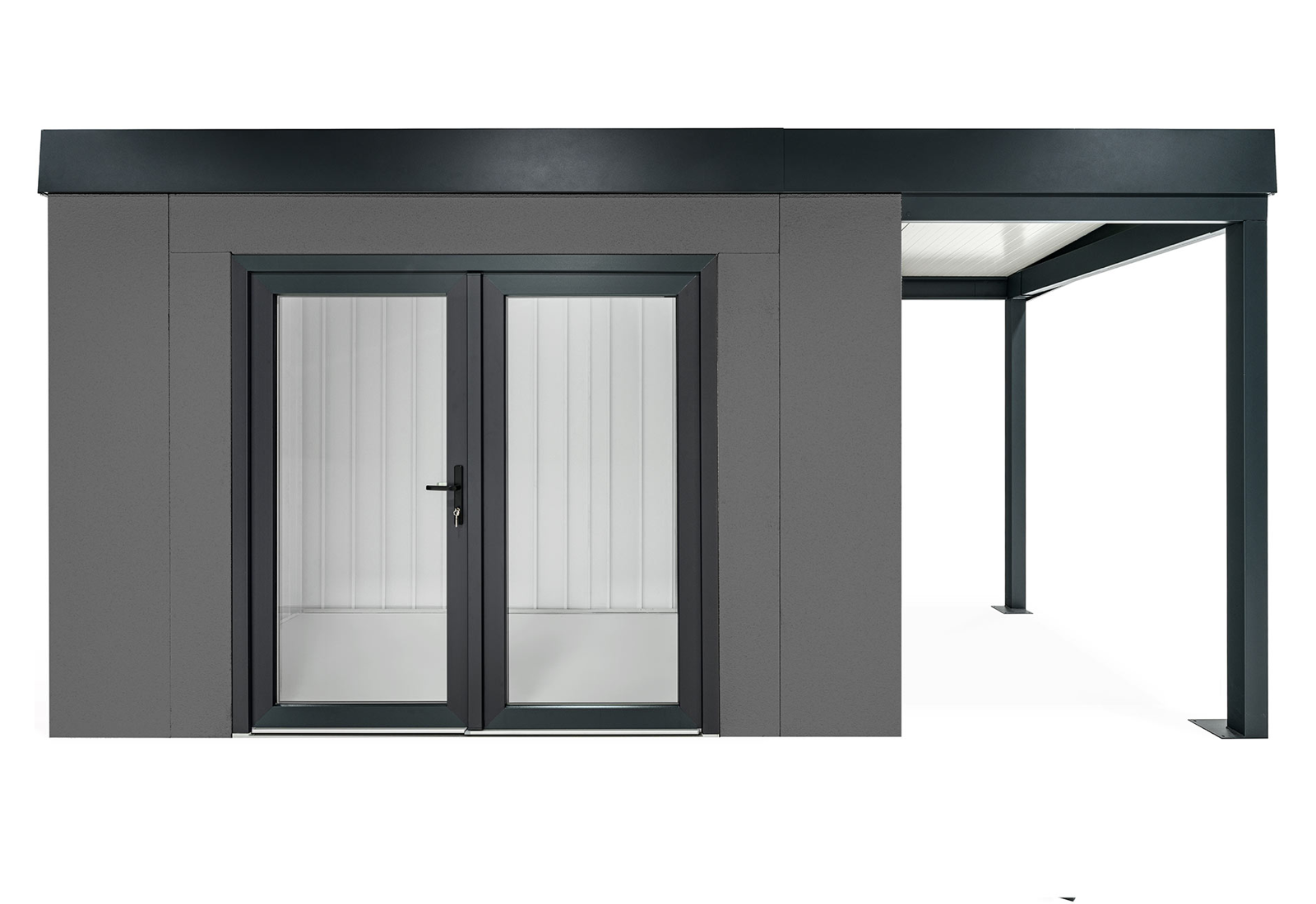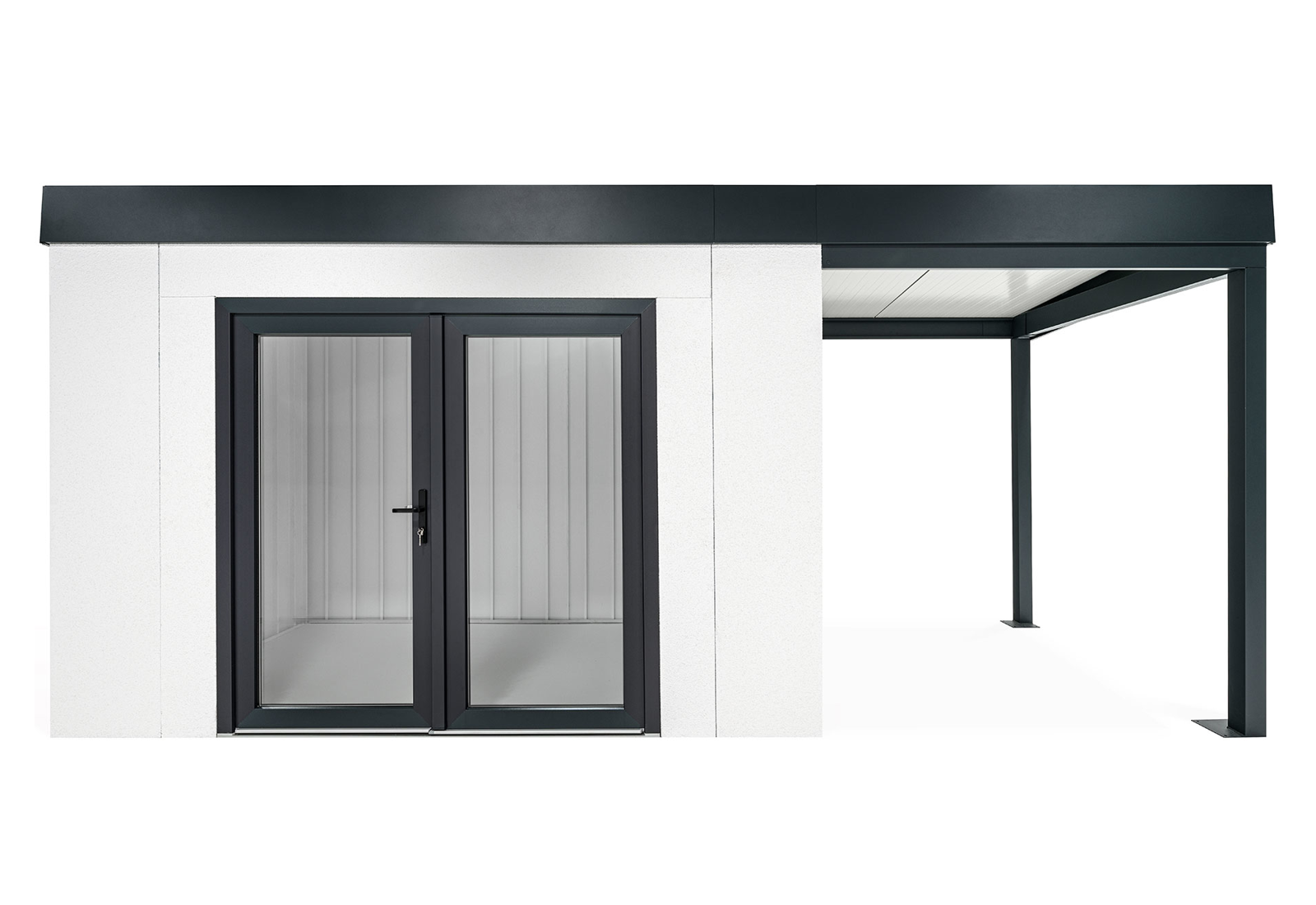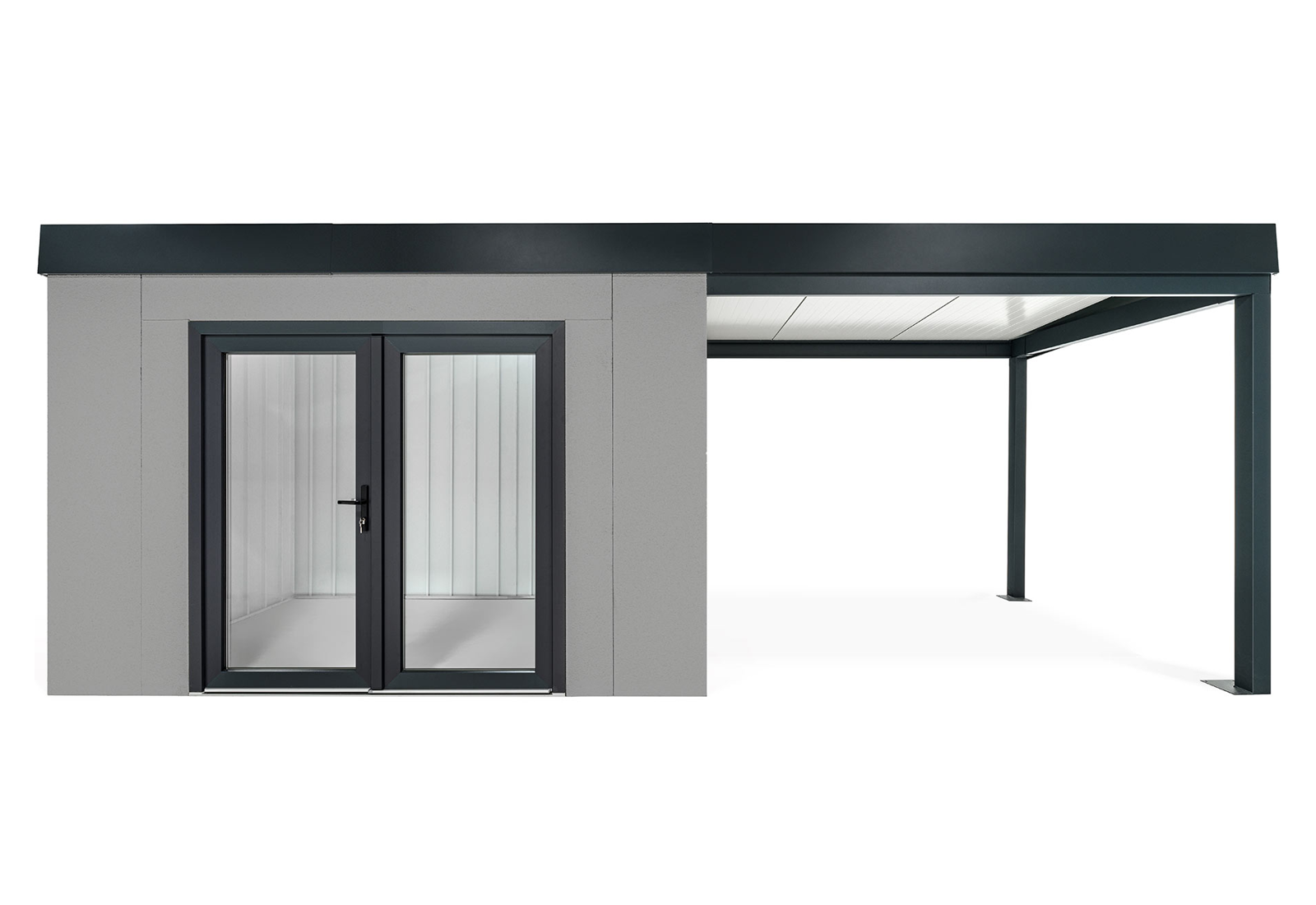 GARDEON® Zahradní domek s dvojitými panoramatickými dveřmi a přístřeškem