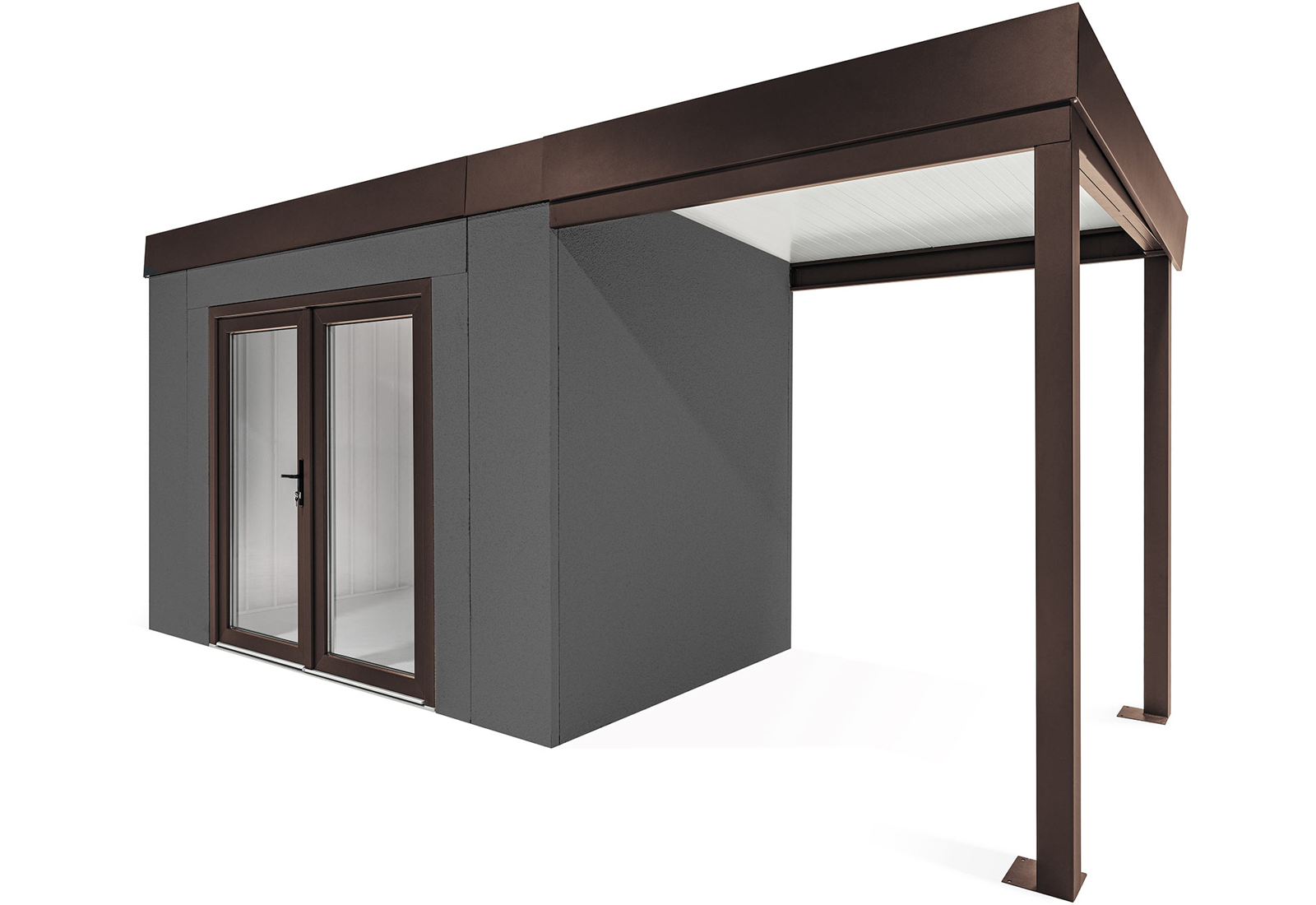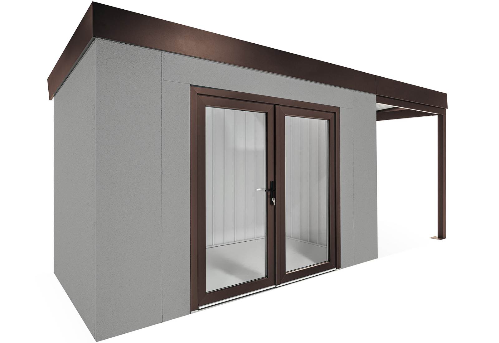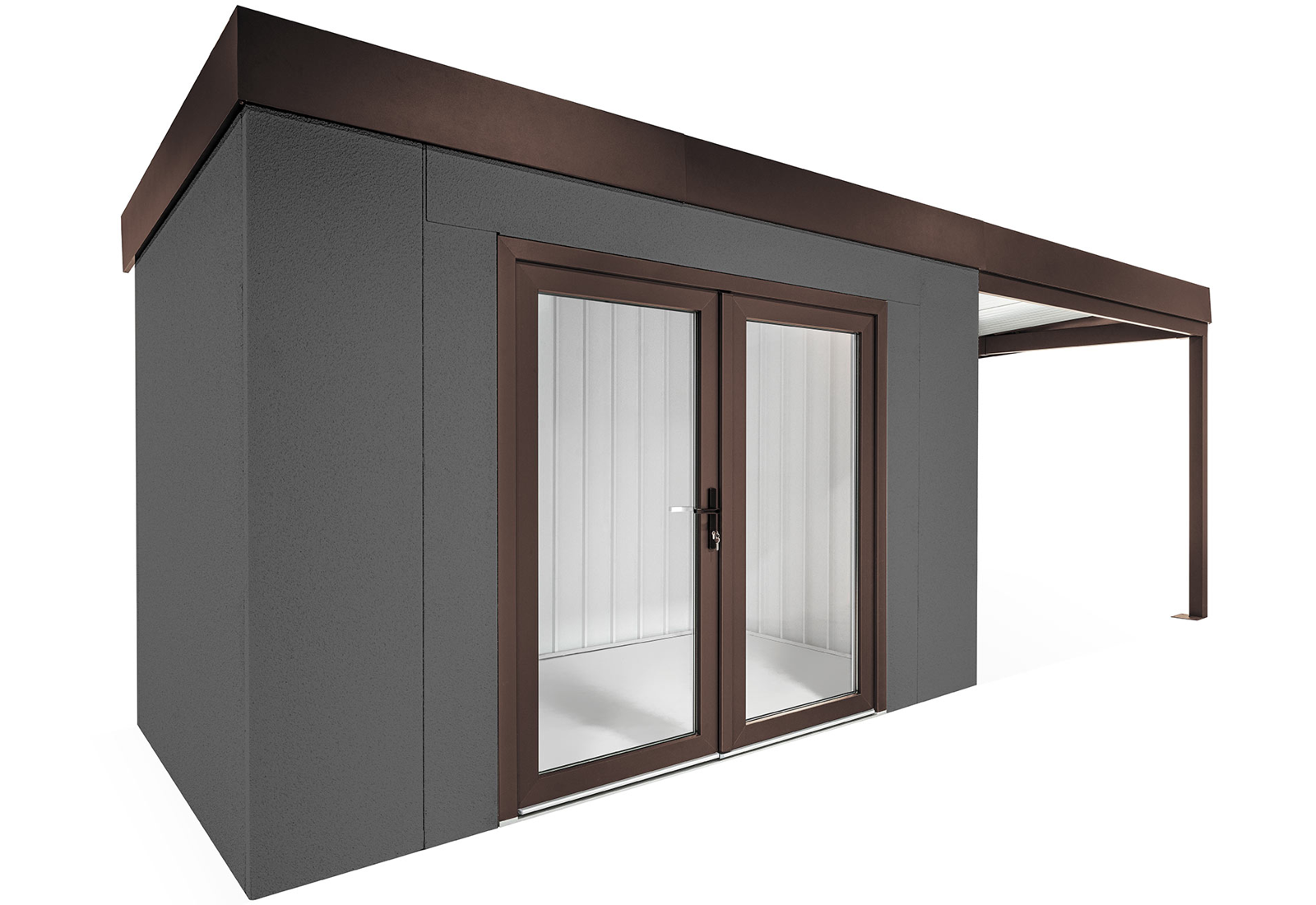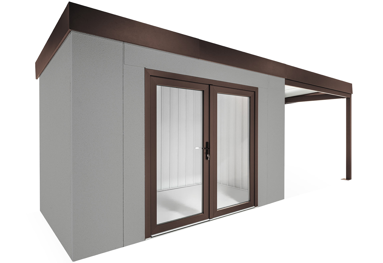 GARDEON® Zahradní domek s dvojitými panoramatickými dveřmi a přístřeškem