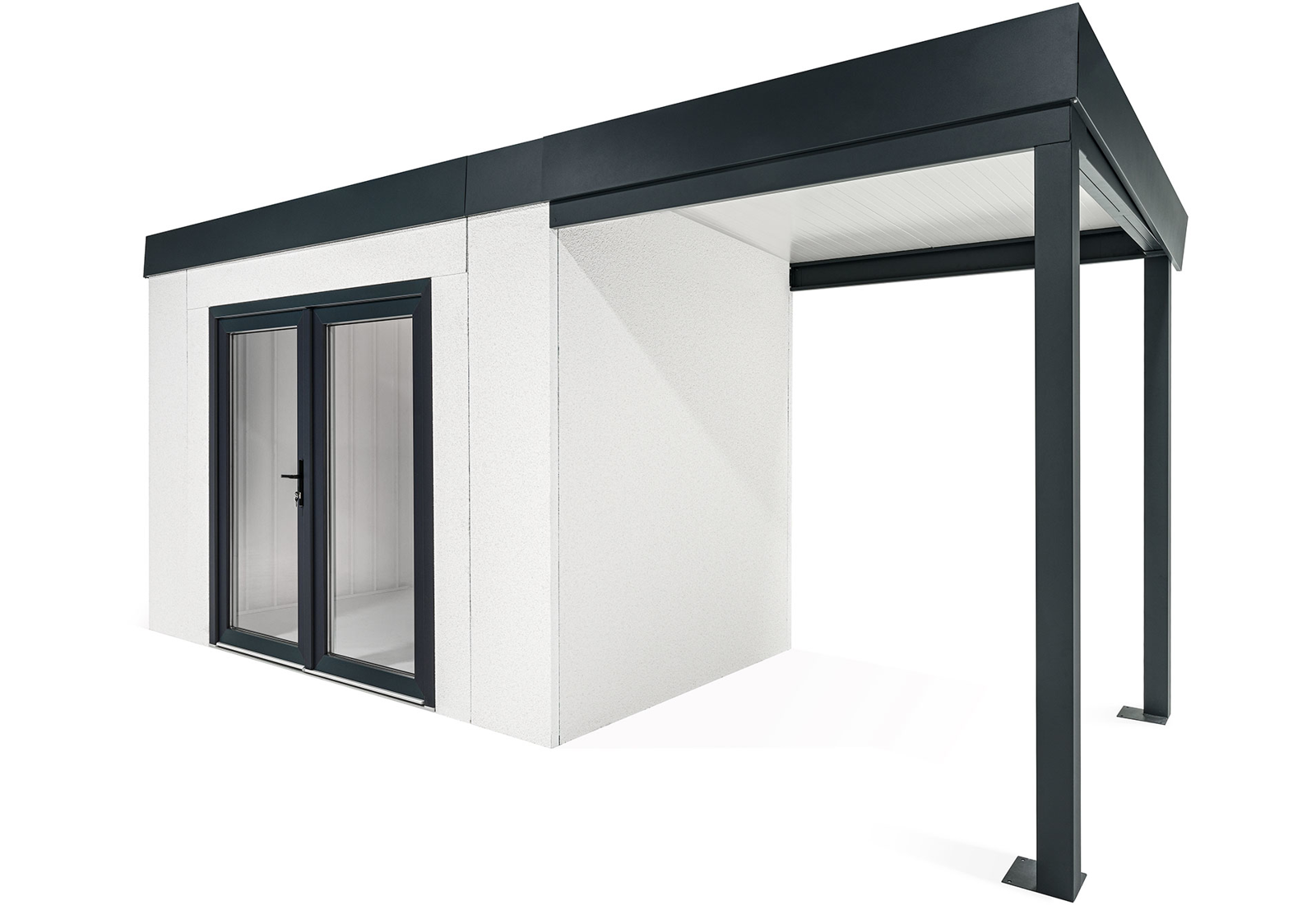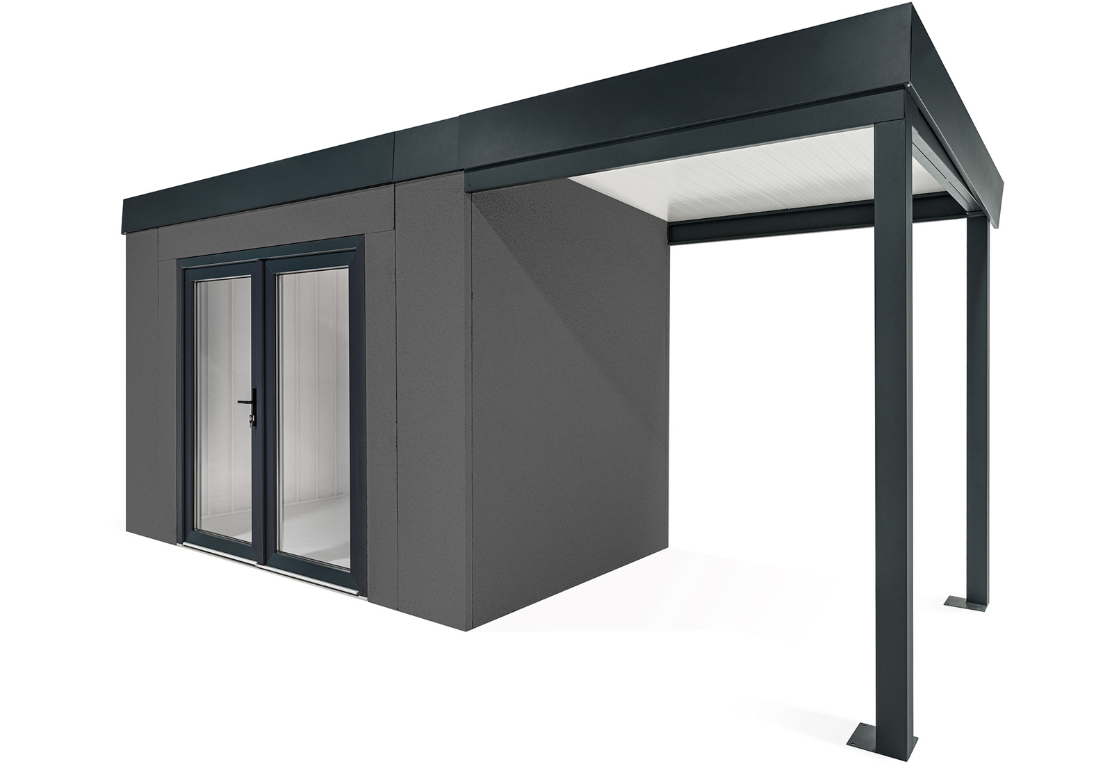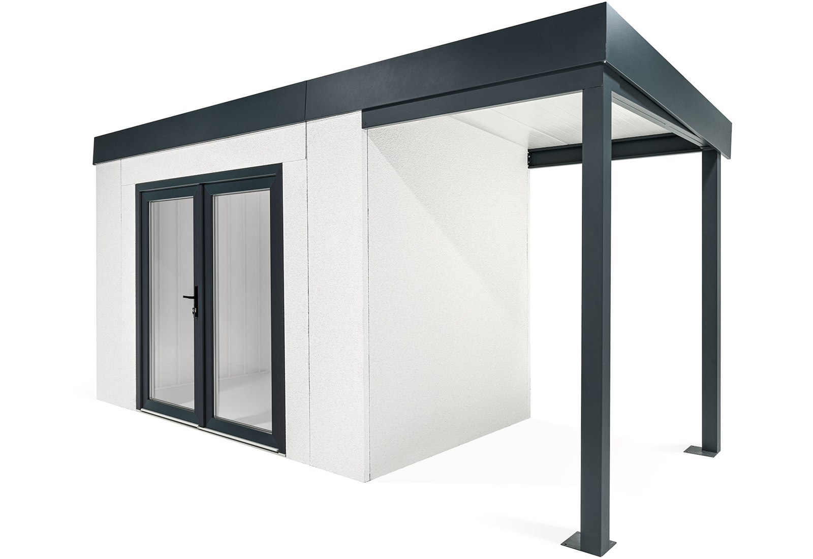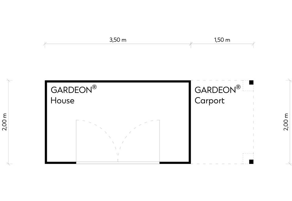 GARDEON® Zahradní domek 3,5 x 2 m s dvojitými panoramatickými dveřmi a přístřeškem na pravé straně | Gardeon