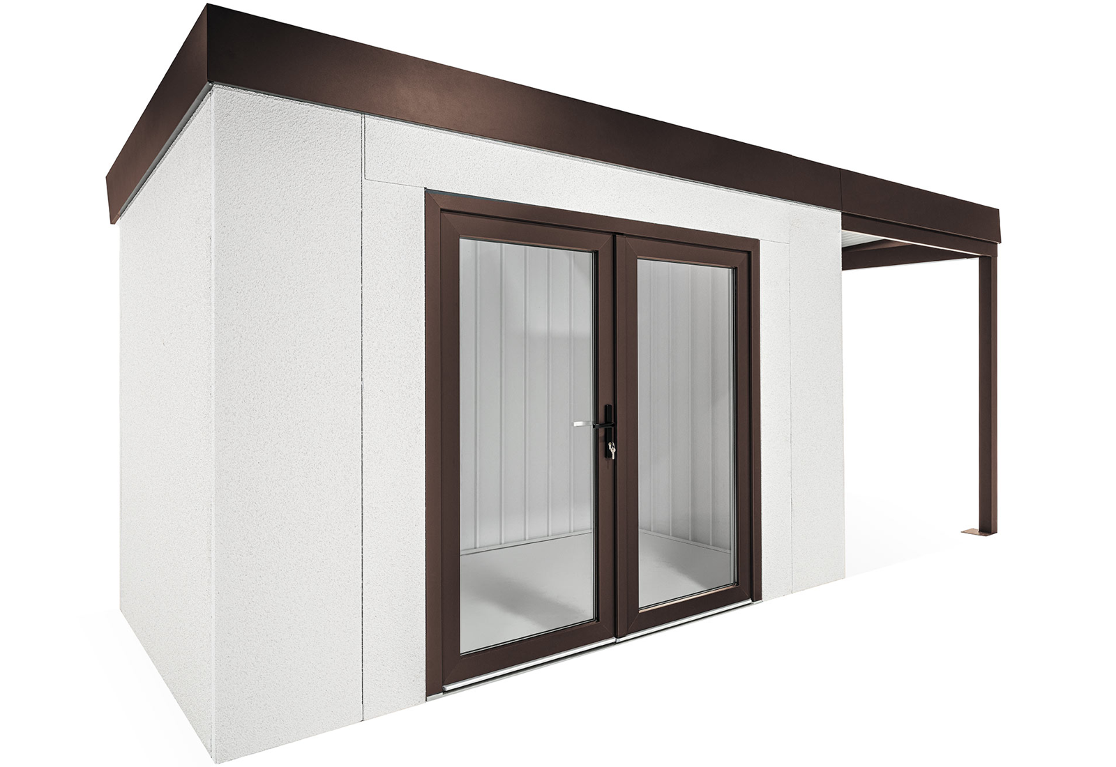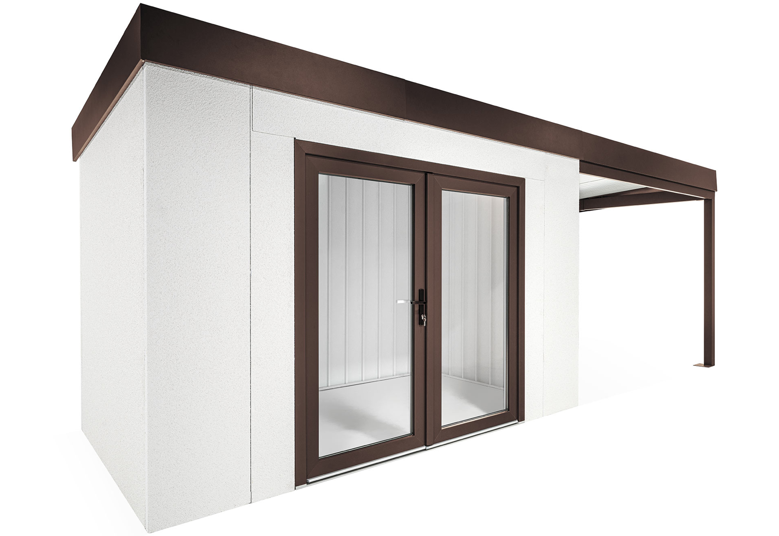Objevte inovaci ve stavebnictví – montované zahradní domky GARDEON® s hotovou designovou omítkou od švýcarské značky KABE. Celoroční fasáda je samočistící a s lehkostí odolá vodě, vysokým teplotám i všem rozmarům počasí. Díky naší unikátní technologii má ocelová stěna tloušťku pouhých 5 cm a oproti 20centimetrové klasické zděné stěně tak významně ušetříte prostor na své zahradě i uvnitř zahradního domku.