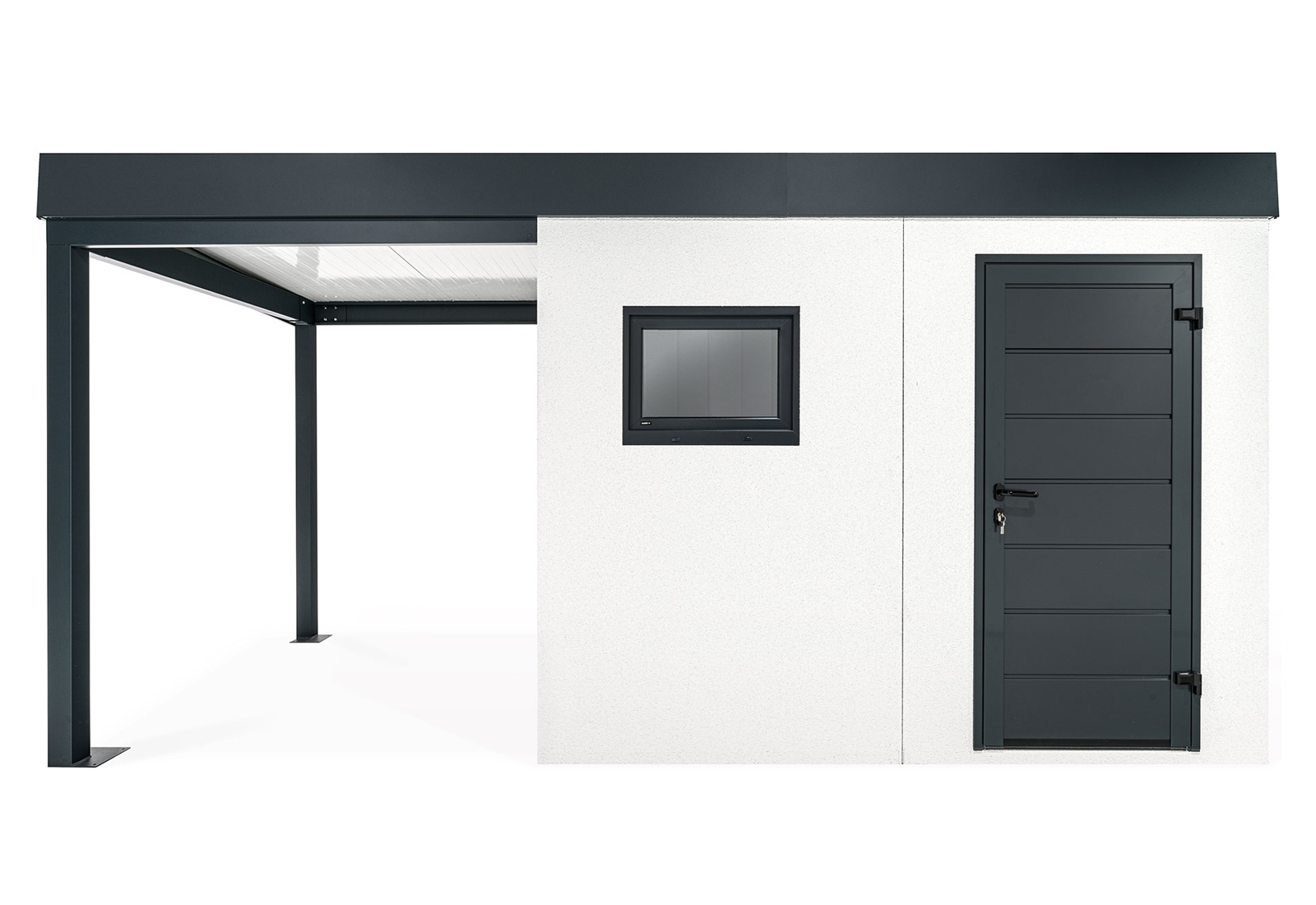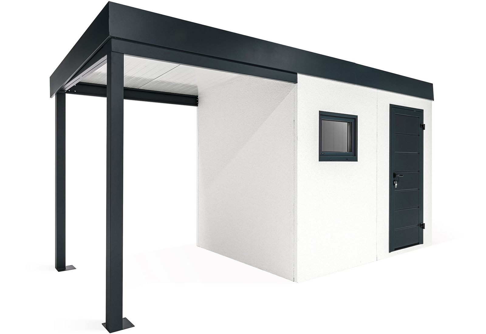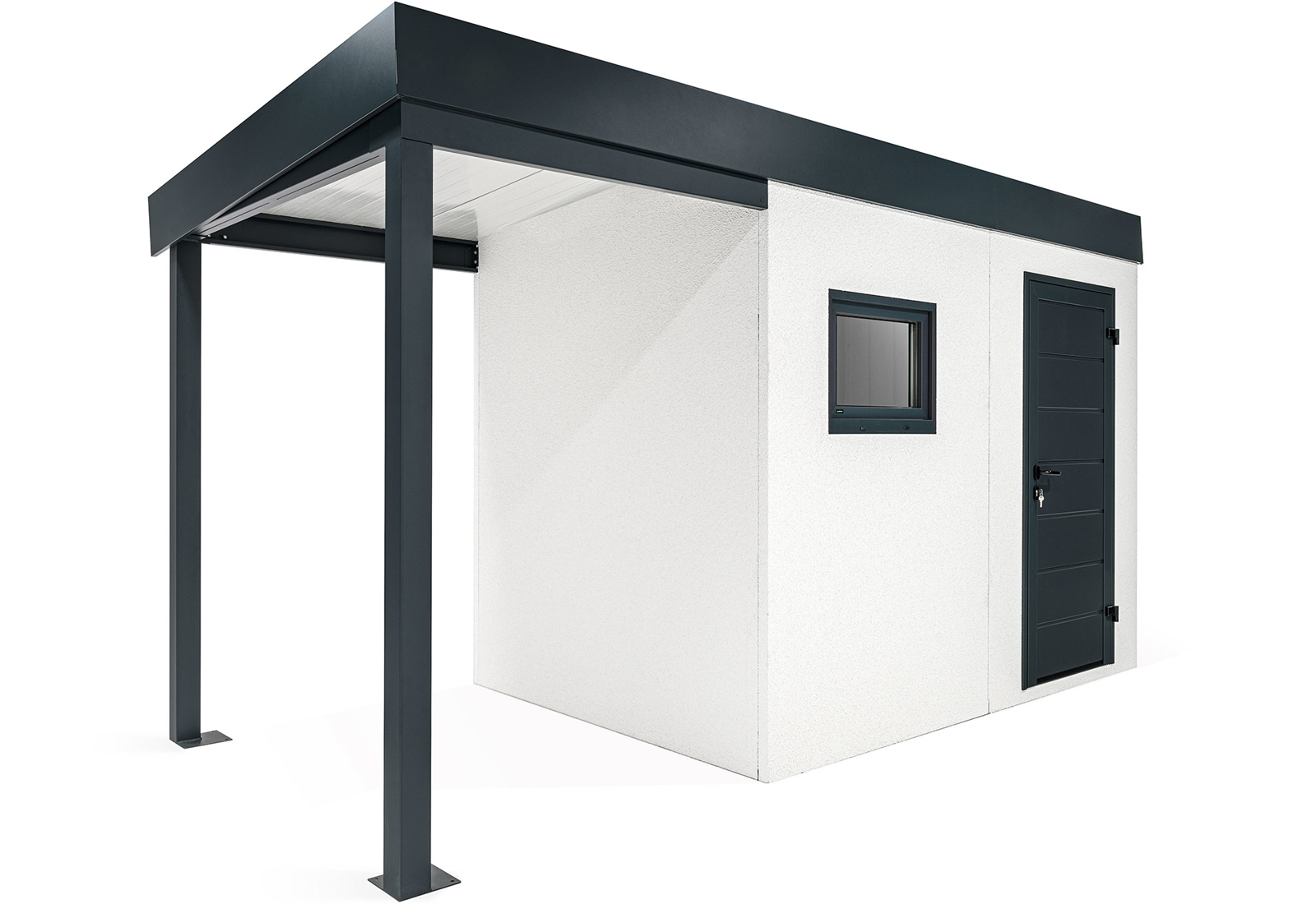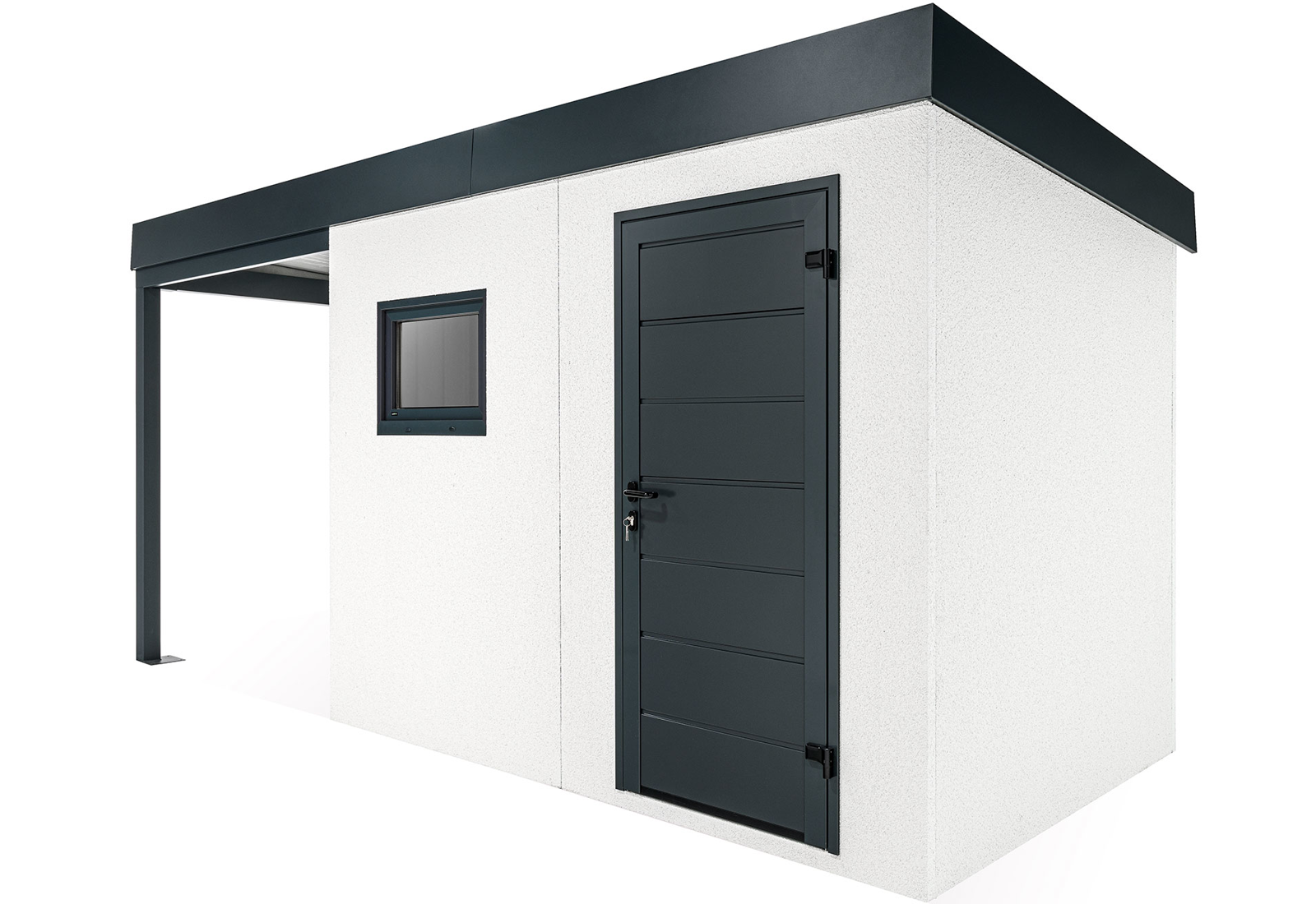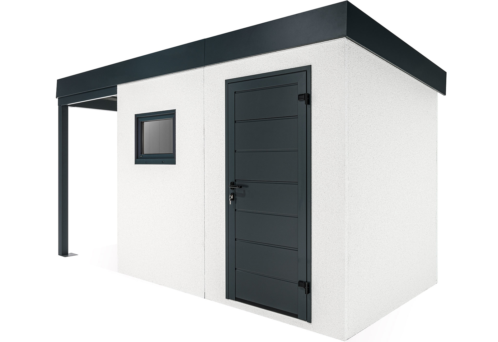 Objevte inovaci ve stavebnictví – montované zahradní domky GARDEON® s hotovou designovou omítkou od švýcarské značky KABE. Celoroční fasáda je samočistící a s lehkostí odolá vodě, vysokým teplotám i všem rozmarům počasí. Díky naší unikátní technologii má ocelová stěna tloušťku pouhých 5 cm a oproti 20centimetrové klasické zděné stěně tak významně ušetříte prostor na své zahradě i uvnitř zahradního domku.