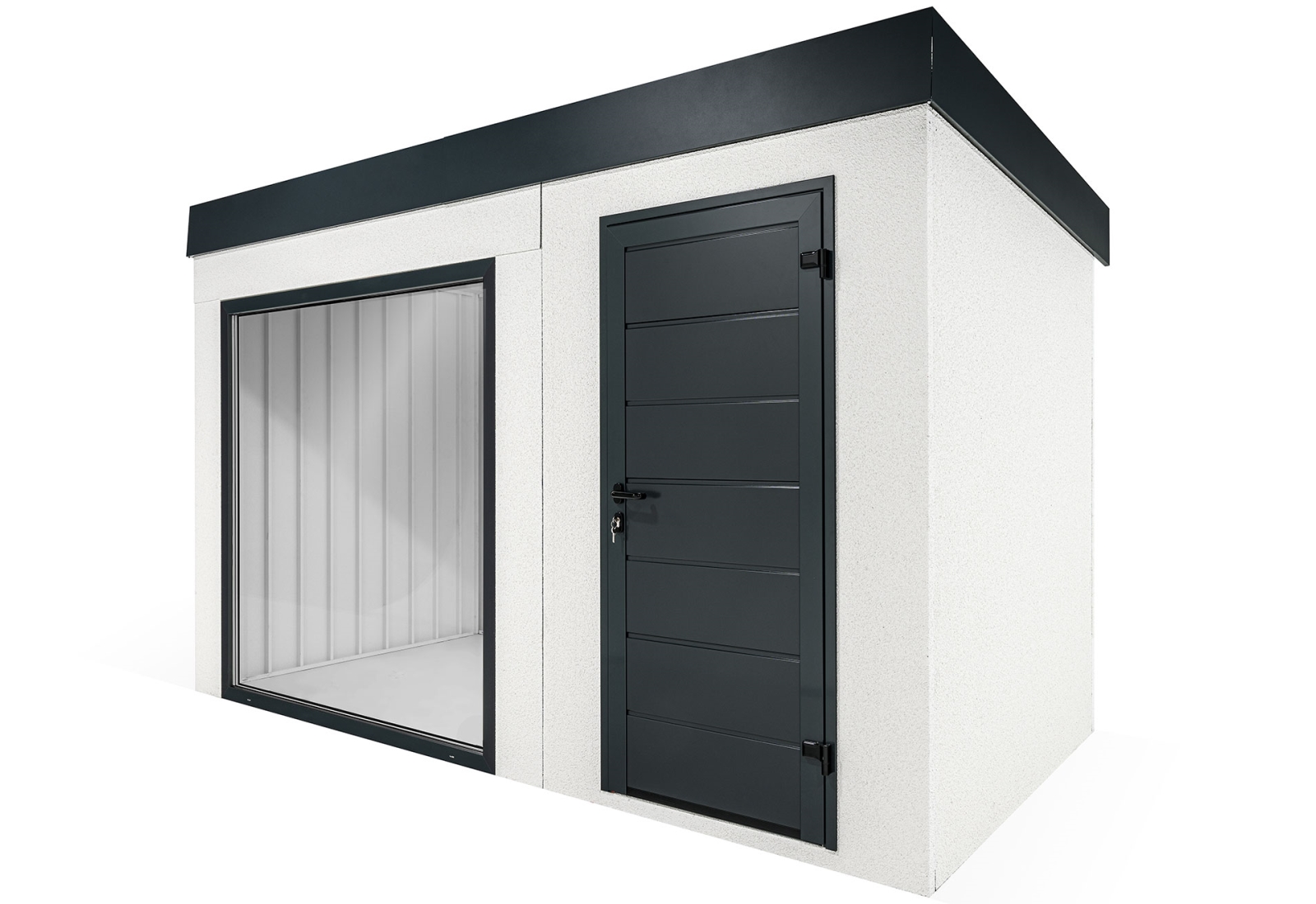 Objevte inovaci ve stavebnictví – montované zahradní domky GARDEON® s hotovou designovou omítkou od švýcarské značky KABE. Celoroční fasáda je samočistící a s lehkostí odolá vodě, vysokým teplotám i všem rozmarům počasí. Díky naší unikátní technologii má ocelová stěna tloušťku pouhých 5 cm a oproti 20centimetrové klasické zděné stěně tak významně ušetříte prostor na své zahradě i uvnitř zahradního domku.