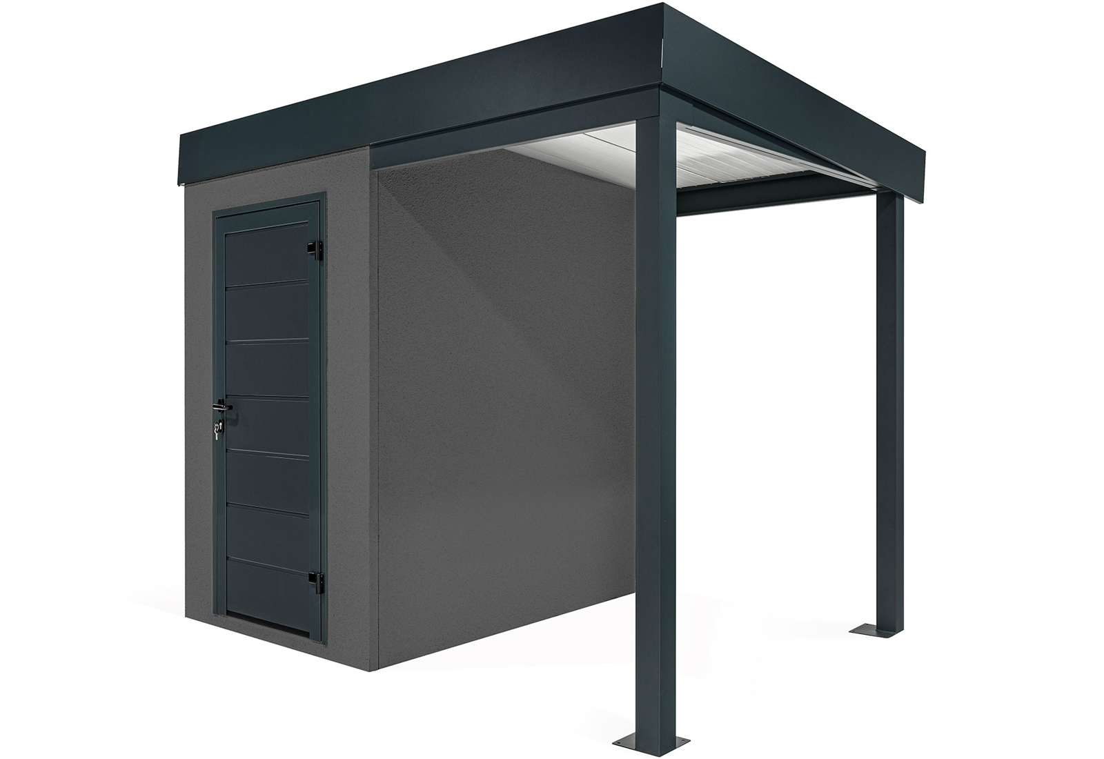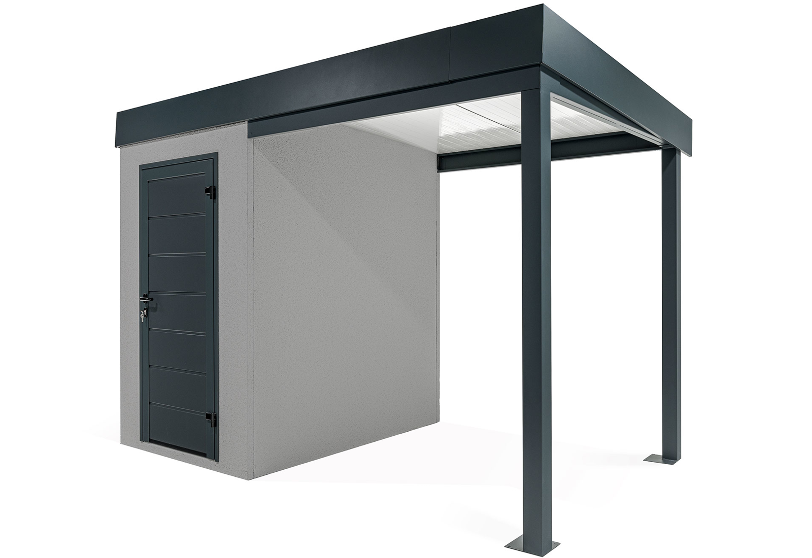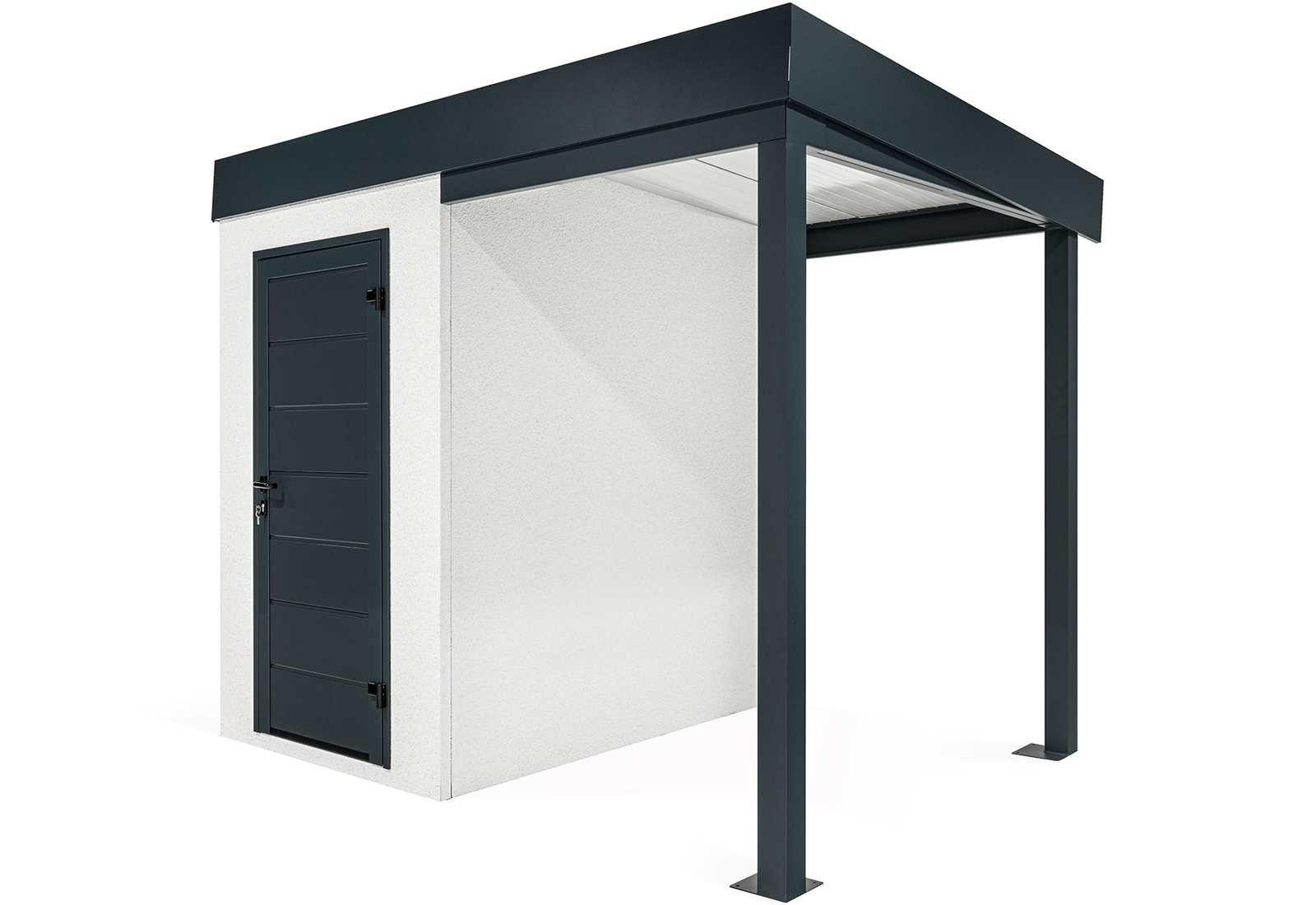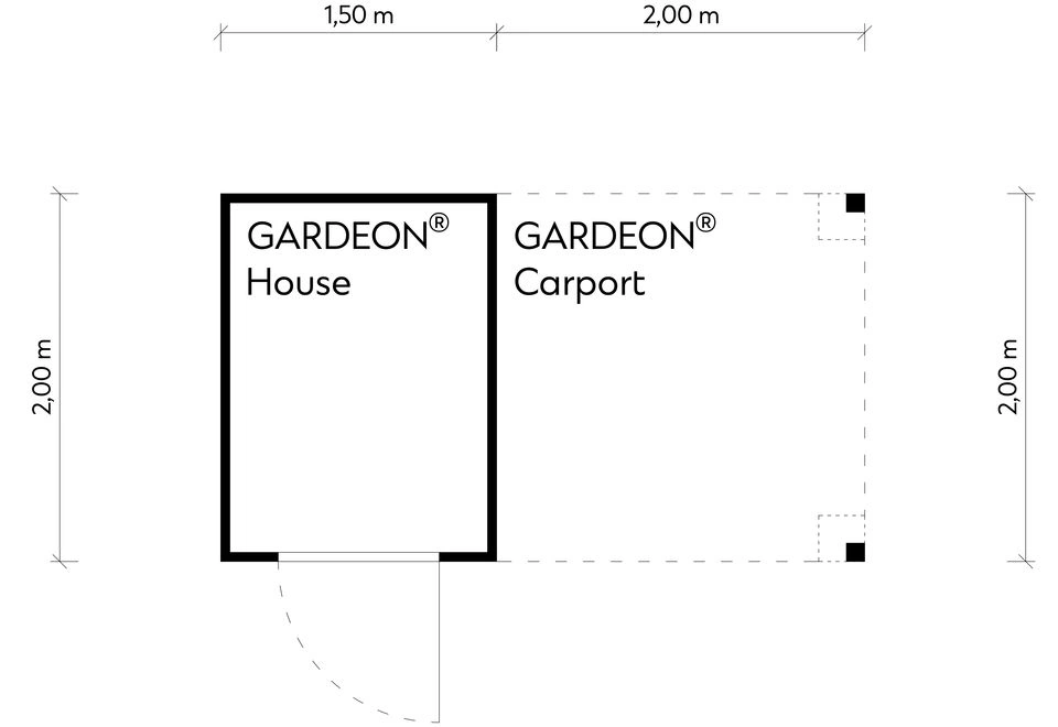 GARDEON® Mini zahradní domek 1,5 x 2 m s dveřmi Hörmann a přístřeškem na pravé straně | Gardeon
