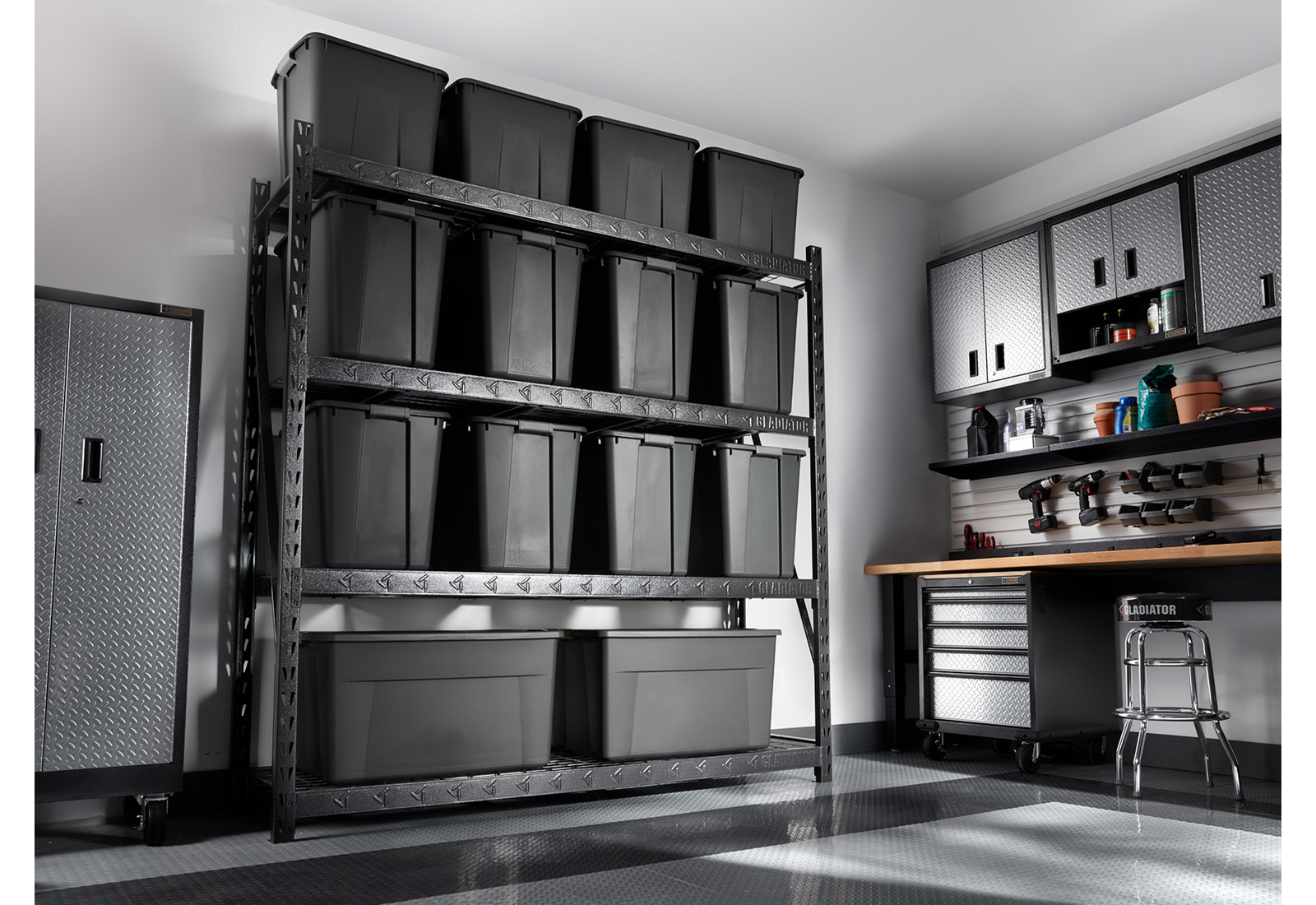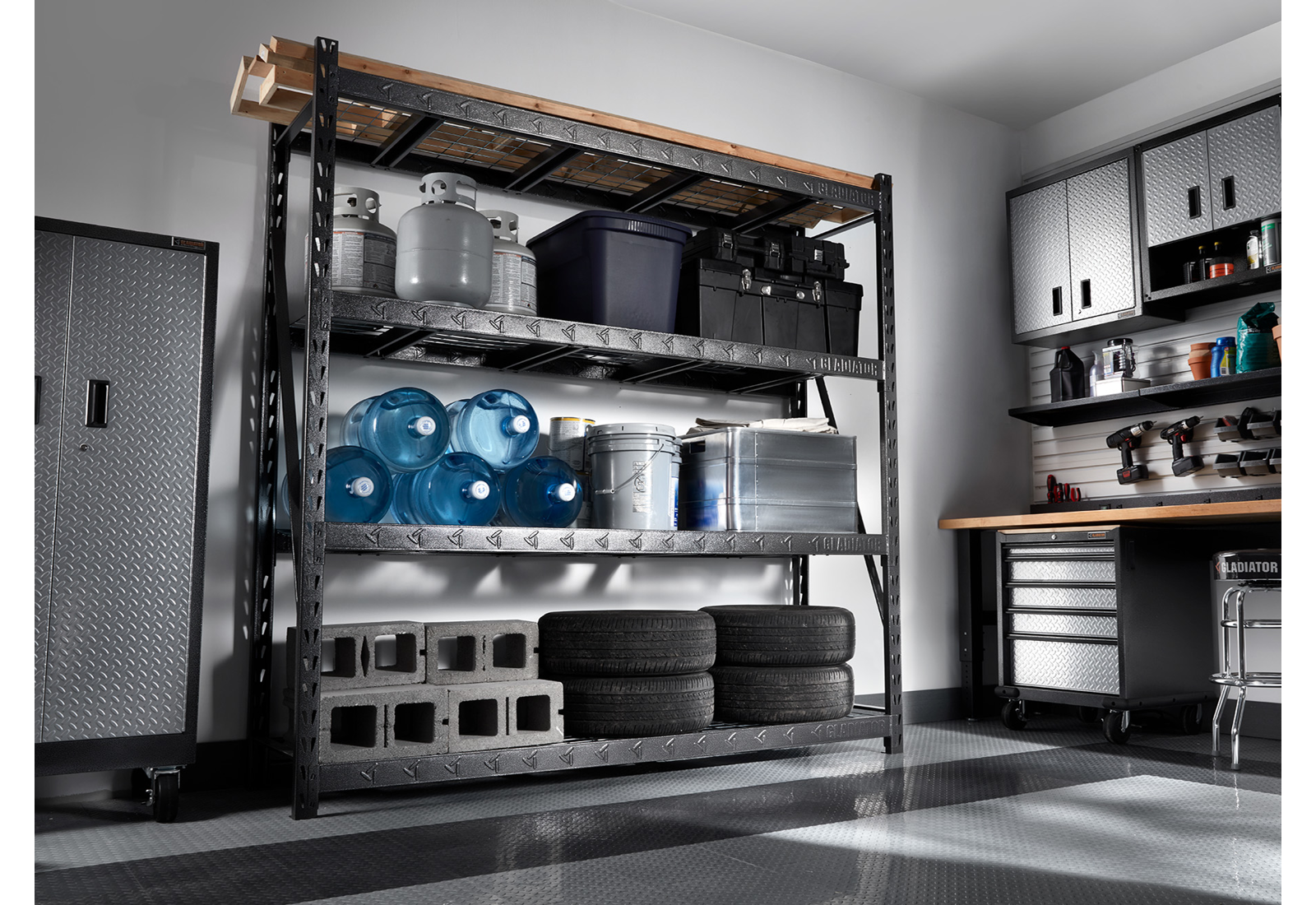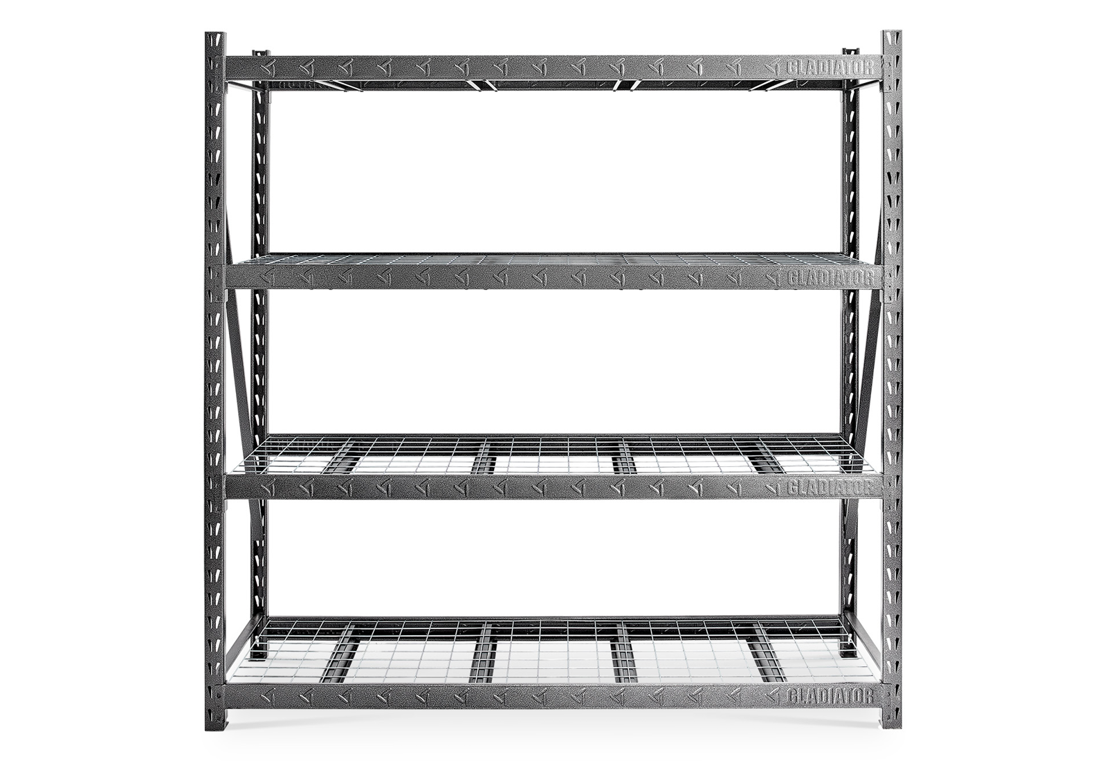 Pokud hledáte regál s vynikající pevností a praktickou velikostí, pak jste jej právě našli. Gladiator® Heavy Duty Mega Rack o rozměrech 229 × 229 cm, s úložnou plochou přes 4,7 m² a nosností až 3 600 kg je dosud největší volně stojící regál od této prémiové značky. Bez problému zvládne i to nejtěžší nářadí, díly a vybavení, které na něj naložíte. Čtyři nastavitelné police lze navíc snadno uspořádat do různých výšek, aby se vám veškeré objemné vybavení vešlo na jedno místo.