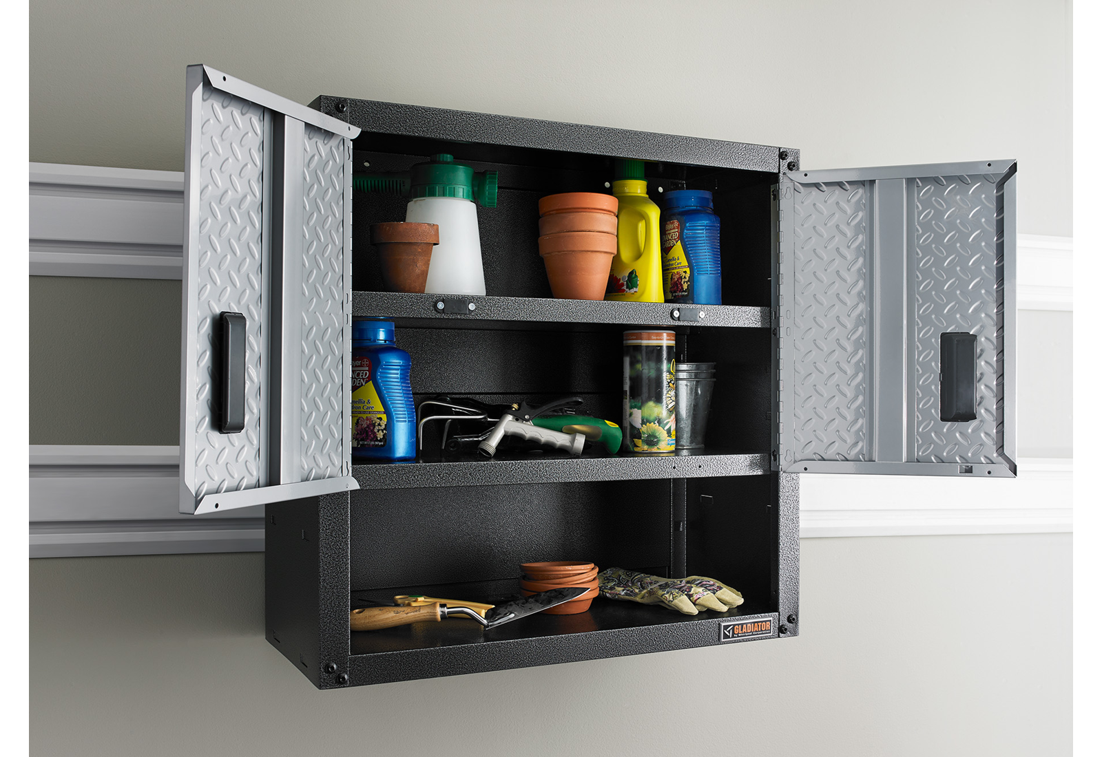Ocelová nástěnná skříňka GearBox s 3/4 dvířky má otevřenou spodní polici s přístupem k napájecímu kabelu, která majitelům zahradních domků usnadňuje připojení rádií nebo nabíječek baterií ke zdroji napájení. Montáž ocelové skříňky je rychlá a jednoduchá. Panely Gladiator® GearWall® nebo kolejnice GearTrack® umožňují tuto skříňku snadno namontovat a přemístit tam, kde ji nejvíce potřebujete. Tato nástěnná skříňka je ideální pro uložení menšího vybavení k automobilu nebo k zahradničení, aby nepřekážely, ale byly na dosah.