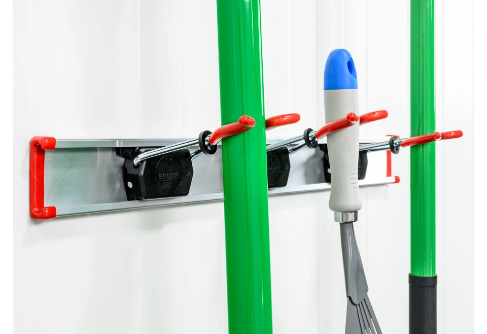 Umožňuje tak udržet v pořádku vše, co potřebujete - od hrábí a rýčů až po pily a sekery. Vše přehledně uspořádané a snadno dostupné.